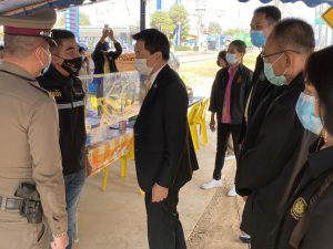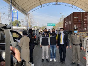 เลขานุการรัฐมนตรีว่าการกระทรวงแรงงาน กล่าวว่า รัฐบาล ภายใต้การนำของ พล.อ.ประยุทธ์ จันทร์โอชา นายกรัฐมนตรี และกระทรวงแรงงานภายใต้การกำกับดูแลของ พล.อ.ประวิตร วงษ์สุวรรณ รองนายกรัฐมนตรี ได้มีความห่วงใยพี่น้องแรงงานและประชาชนทุกกลุ่มได้มีการสั่งการและดำเนินการตามมาตรการมาอย่างต่อเนื่อง จึงได้มอบหมายให้รัฐมนตรีว่าการกระทรวงแรงงานบูรณาการกับภาคส่วนที่เกี่ยวข้องในพื้นที่ทำงานเชิงรุก เพื่อเป็นการป้องกันและควบคุมการแพร่ระบาดของโรคดังกล่าวให้มีการจำกัดอยู่ในพื้นที่ไม่ให้เกิดการแพร่ระบาดในวงกว้าง ซึ่งจะส่งผลกระทบต่อเศรษฐกิจของประเทศทั้งทางตรงและทางอ้อม ตลอดจนสุขภาวะของประชาชนทั่วประเทศ ในวันนี้ท่านสุชาติ ชมกลิ่น ท่านรัฐมนตรีว่าการกระทรวงแรงงาน มีความห่วงใยเจ้าหน้าที่ผู้ปฏิบัติงาน บุคลากรทางการแพทย์ที่ปฏิบัติหน้าที่ รวมถึงแรงงานทุกคน จึงได้มอบหมายให้ผมลงพื้นที่ชลบุรีเพื่อตรวจเยี่ยมให้กำลังใจเจ้าหน้าที่ผู้ปฏิบัติงานที่ด่านคัดกรองโควิด – 19 ที่เสียสละเวลาในการปฏิบัติงานดูแลความปลอดภัยของพี่น้องประชาชน พร้อมมอบสิ่งของอำนวยความสะดวกและอุปกรณ์สนับสนุนกิจกรรมป้องกันโควิด – 19 ซึ่งท่านรัฐมนตรีว่าการกระทรวงแรงงาน ได้ให้การสนับสนุนมาโดยตลอด ตั้งแต่การแพร่ระบาดของเชื้อโควิด – 19 ครั้งที่ผ่านมา โดยตรวจเยี่ยมในครั้งนี้ พบว่า ทุกหน่วยงานมีการบูรณาการการทำงานร่วมกันเป็นอย่างดี