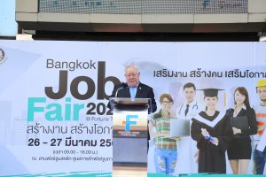 นายสุชาติ ชมกลิ่น รัฐมนตรีว่าการกระทรวงแรงงาน มอบหมายให้ เลขานุการรัฐมนตรีว่าการกระทรวงแรงงาน เปิดงาน Bangkok Job Fair 2021 พบกับสถานประกอบการชั้นนำ 40 แห่งมาร่วมออกบูธรับสมัครงาน มีตำแหน่งงานว่าง 5,000 กว่าอัตรา วันที่ 26-27 มีนาคมนี้ ณ ฟอร์จูนสตรีท ศูนย์การค้าฟอร์จูนทาวน์