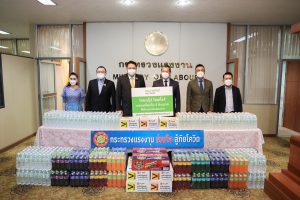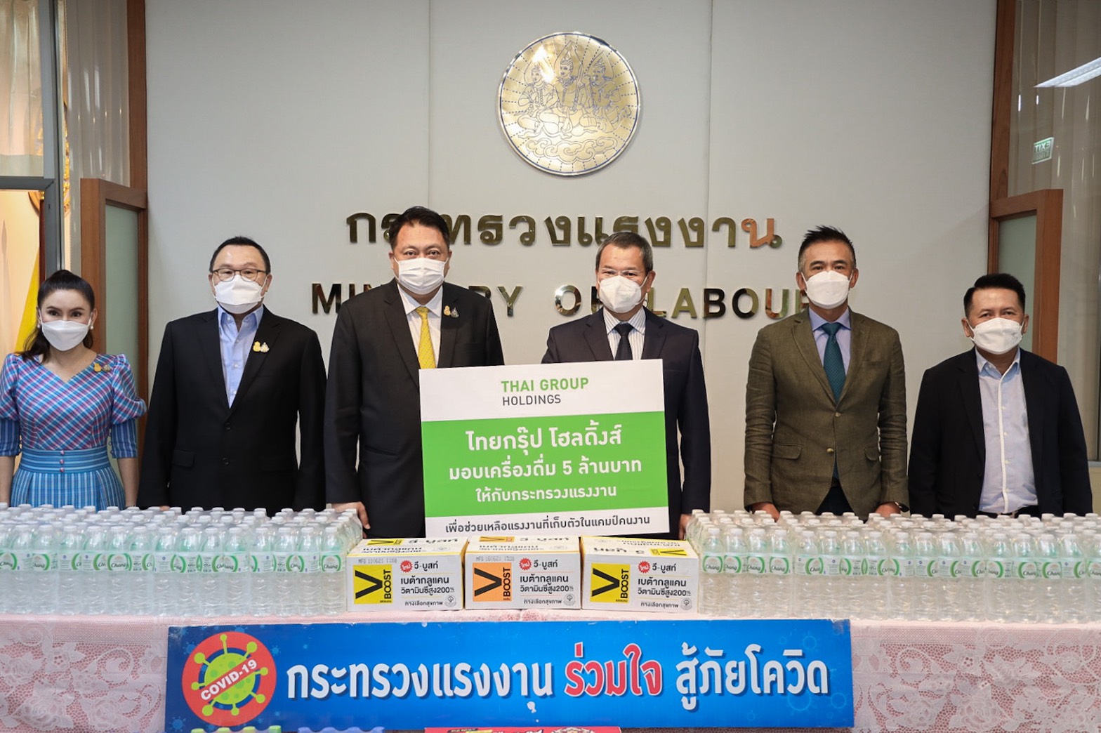 เมื่อวันที่ 2 กรกฎาคม 2564 นายสุชาติ ชมกลิ่น รัฐมนตรีว่าการกระทรวงแรงงาน รับมอบผลิตภัณฑ์เครื่องดื่มจากไทยกรุ๊ป โฮลดิ้งส์ มูลค่า 5,000,000 บาท จากนายโชติพัฒน์ พีชานนท์ ประธานกรรมการบริหาร ไทยกรุ๊ป โฮลดิ้งส์ นายมนตรี วงศ์ท่าเรือ กรรมการผู้จัดการ บริษัท อาคเนย์ประกันภัย จำกัด (มหาชน) และนางสาวสิริพร สุวิวัฒน์ธนกุล ผู้ช่วยกรรมการผู้จัดการสายงานสื่อสารองค์กร ไทยกรุ๊ป โฮลดิ้งส์ โดยมี นายสุรชัย ชัยตระกูลทอง ผู้ช่วยรัฐมนตรีประจำกระทรวงแรงงาน นางธิวัลรัตน์ อังกินันทน์ ที่ปรึกษารัฐมนตรีว่าการกระทรวงแรงงาน นายสุเทพ ชิตยวงษ์ เลขานุการรัฐมนตรีว่าการกระทรวงแรงงาน พล.ต.ต.นันทชาติ ศุภมงคล ประจำสำนักเลขาธิการนายกรัฐมนตรี ปฏิบัติหน้าที่กระทรวงแรงงาน นางเธียรรัตน์ นะวะมะวัฒน์ โฆษกกระทรวงแรงงาน (ฝ่ายการเมือง) นายสุทธิ สุโกศล ปลัดกระทรวงแรงงาน พร้อมด้วยผู้บริหารระดับสูงกระทรวงแรงงาน เข้าร่วมในครั้งนี้ด้วย ณ ห้องจัตุมงคล ชั้น 6 อาคารกระทรวงแรงงาน