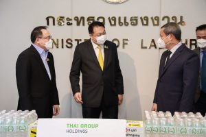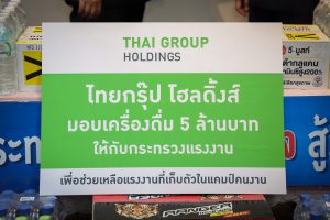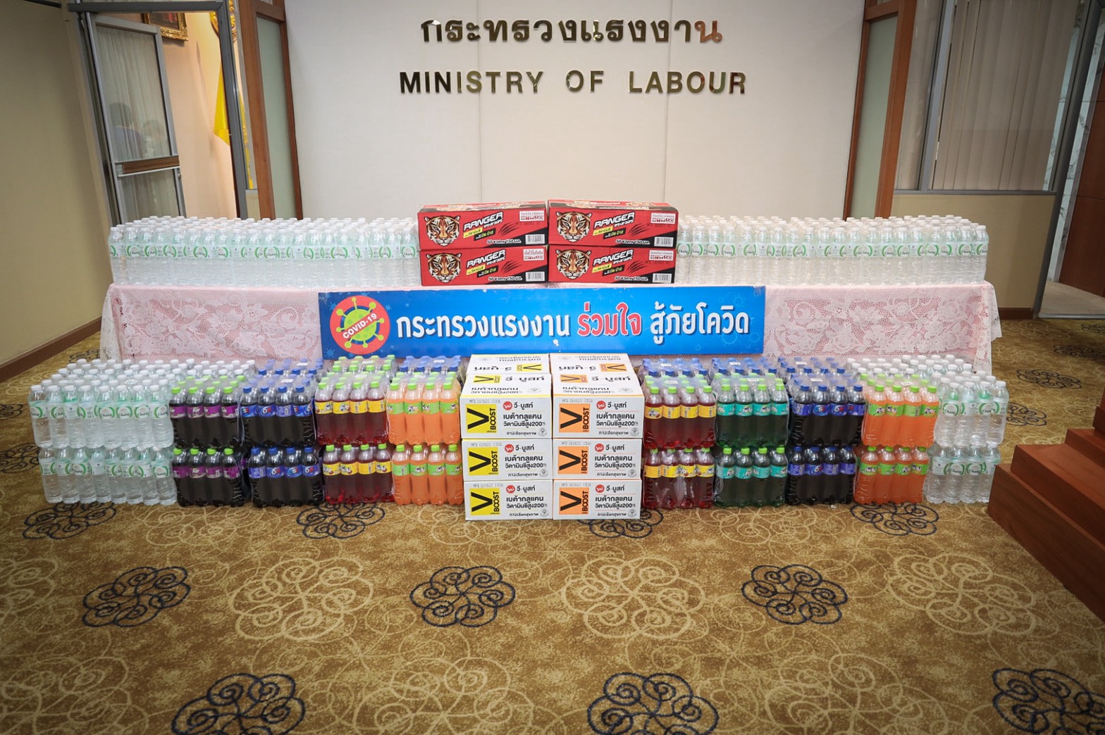 “ในวันนี้กระทรวงแรงงาน ขอขอบคุณภาคเอกชนอย่าง ไทยกรุ๊ป โฮลดิ้งส์ ที่ร่วมแรงร่วมใจกับภาครัฐ สนับสนุนผลิตภัณฑ์เครื่องดื่มมูลค่า 5,000,000 บาท เพื่อให้กระทรวงแรงงานนำไปส่งมอบให้แก่นายจ้าง เพื่อนำไปช่วยเหลือพี่น้องผู้ใช้แรงงานตามมาตรการปิดแคมป์คนงานในแคมป์ต่าง ๆ ต่อไป” นายสุชาติ กล่าวในท้ายสุด