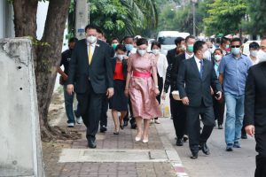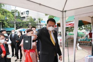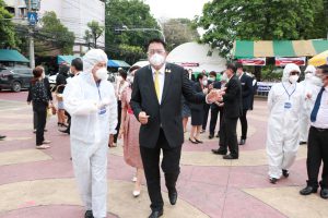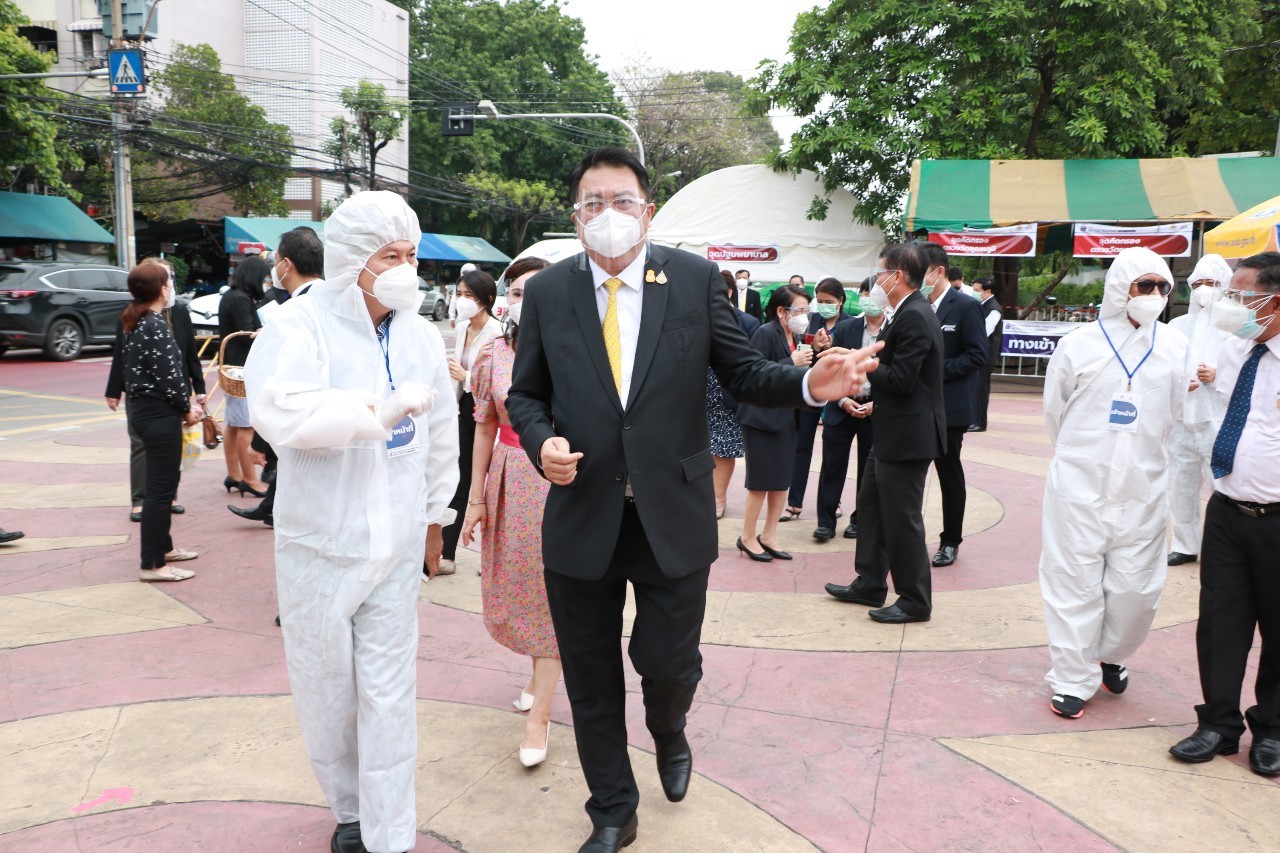 นายสุชาติ ชมกลิ่น รัฐมนตรีว่าการกระทรวงแรงงาน นำทีมตรวจเยี่ยมให้กำลังใจเจ้าหน้าที่ตรวจโควิด-19 เชิงรุก เพื่อผู้ประกันตน ที่ศูนย์เยาวชนกรุงเทพมหานคร (ไทย – ญี่ปุ่น) ดินแดง ซึ่งเปิดเป็นวันสุดท้าย ก่อนปิดศูนย์ชั่วคราวและเปิดให้บริการใหม่ในวันที่ 5 -11 พ.ค.นี้