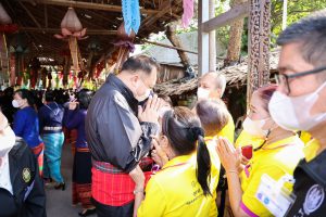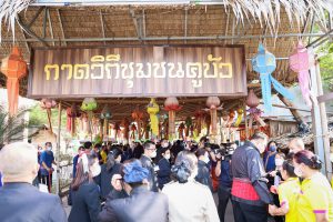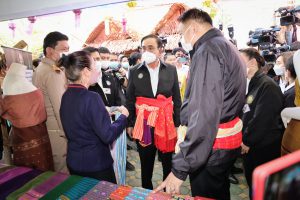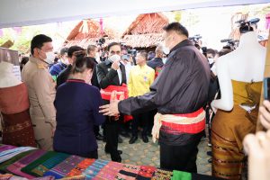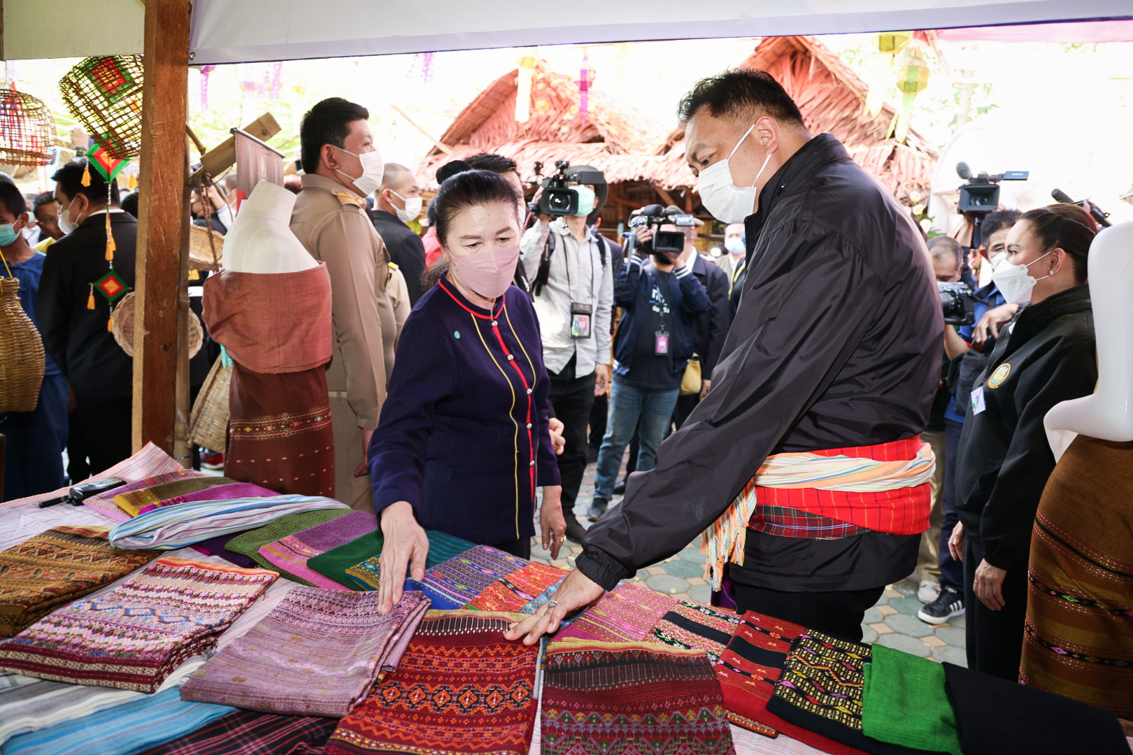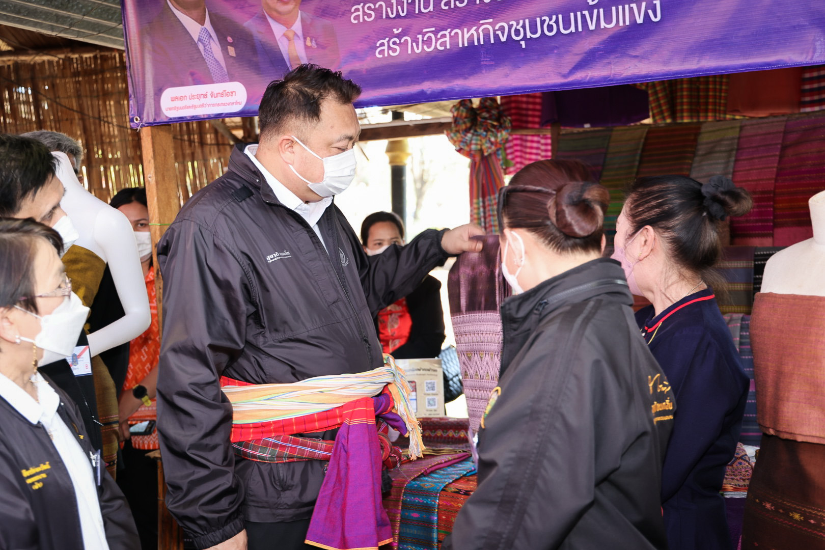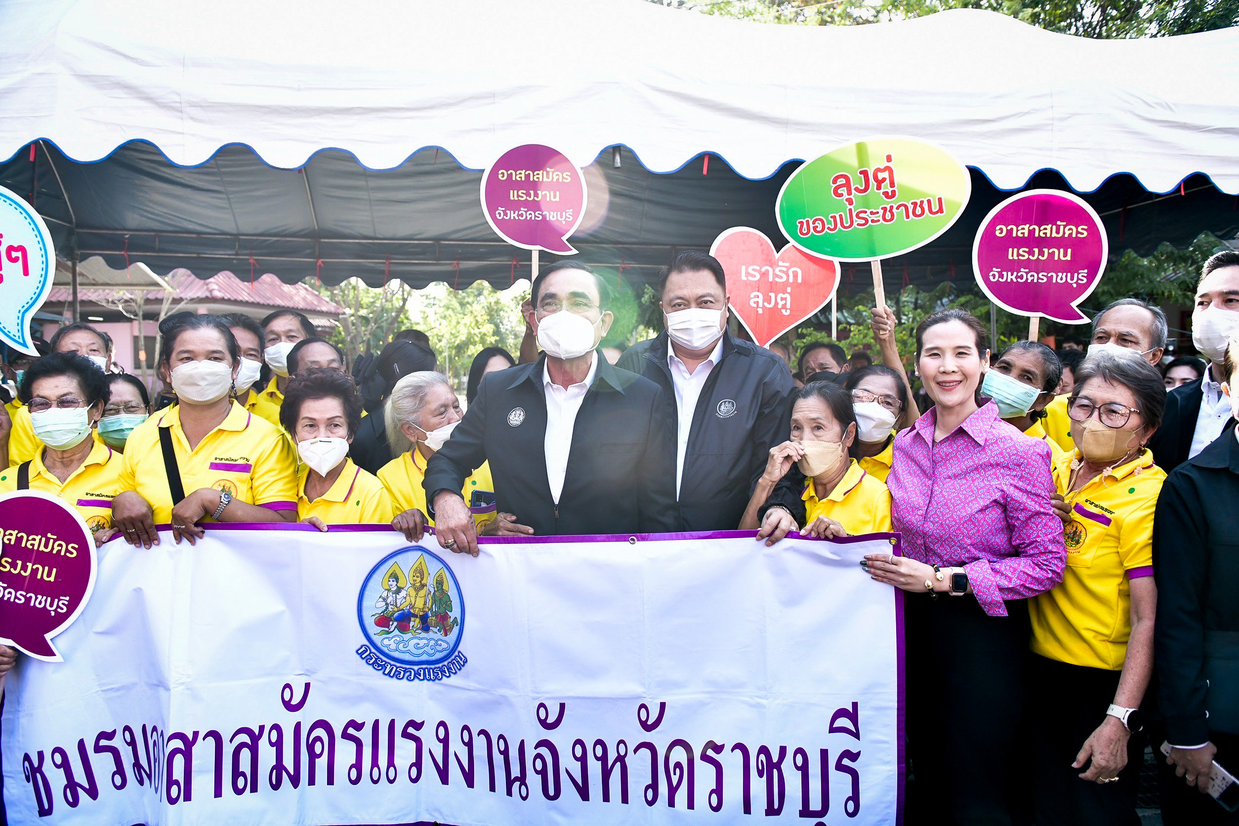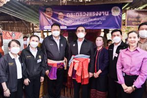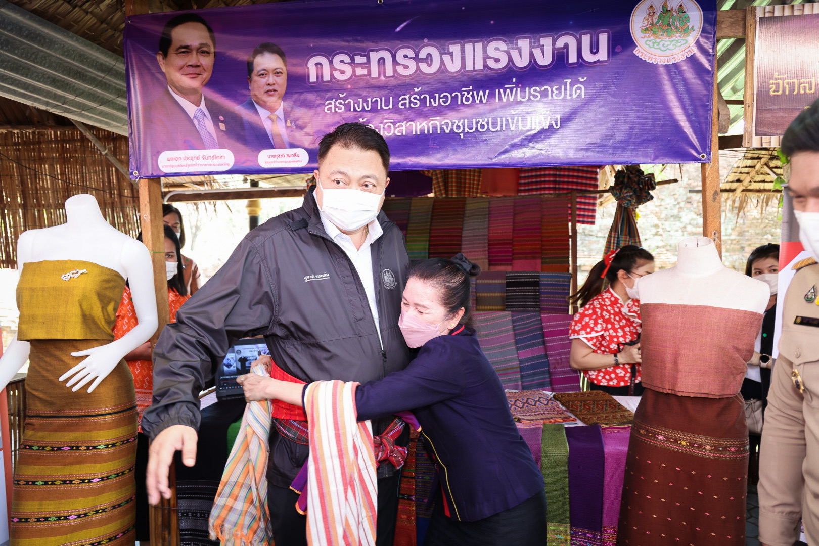 โอกาสเดียวกันนี้ รมว.แรงงาน ยังได้นำนายกรัฐมนตรี และคณะ เยี่ยมชมผลิตภัณฑ์และให้กำลังใจกลุ่มอนุรักษ์ผ้าทอคูบัว ซึ่งกลุ่มนี้เป็นวิสาหกิจชุมชมที่กระทรวงแรงงาน โดยสำนักงานจัดหางานจังหวัดราชบุรี ได้เข้าไปสนับสนุน ส่งเสริม เพิ่มช่องทางการจัดจำหน่ายสินค้าผ่านตลาดออนไลน์ในแพลตฟอร์มต่าง ๆ ทางเว็บไซต์ www.มหกรรมอาชีพราชบุรี.com ให้กับประชาชนทั่วไป และร้านค้าผ้าจกคูบัวราชบุรี เพื่อให้มีช่องทางประชาสัมพันธ์และจัดจำหน่ายสินค้า เพิ่มรายได้ให้กับชุมชน อีกทั้งยังเป็นการอนุรักษ์ผ้าจกคูบัว ซึ่งเป็นภูมิปัญญา มรดกทางวัฒนธรรม และของดีของจังหวัดราชบุรีที่ได้สืบทอดมาจากบรรพบุรุษ สามารถสร้างงาน สร้างอาชีพ สร้างรายได้ให้แก่ชาวราชบุรีได้อีกทางหนึ่งด้วย นอกจากนี้ รมว.แรงงาน ยังได้พบปะพูดคุยให้กำลังใจกับอาสาสมัครแรงงานระดับตำบล และเครือข่ายอาสาสมัครแรงงาน จ.ราชบุรี ที่มาร่วมต้อนรับ ซึ่งอาสาสมัครแรงงานเหล่านี้เป็นผู้เชื่อมประสานภารกิจของกระทรวงแรงงานไปสู่พื้นที่ เป็นผู้ที่มีความเสียสละอุทิศตนเพื่อส่วนรวม ทำงานใกล้ชิดกับพี่น้องประชาชนในชุมชน ในการนำภารกิจประสานการให้บริการด้านแรงงาน เพื่อให้ประชาชนมีงานทำ มีทักษะฝีมือ มีอาชีพ มีรายได้ ได้รับการคุ้มครองและมีหลักประกันทางสังคมที่ยั่งยืนอีกด้วย