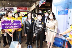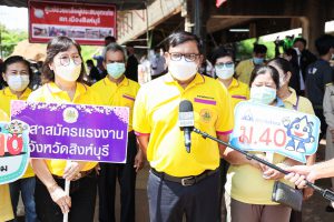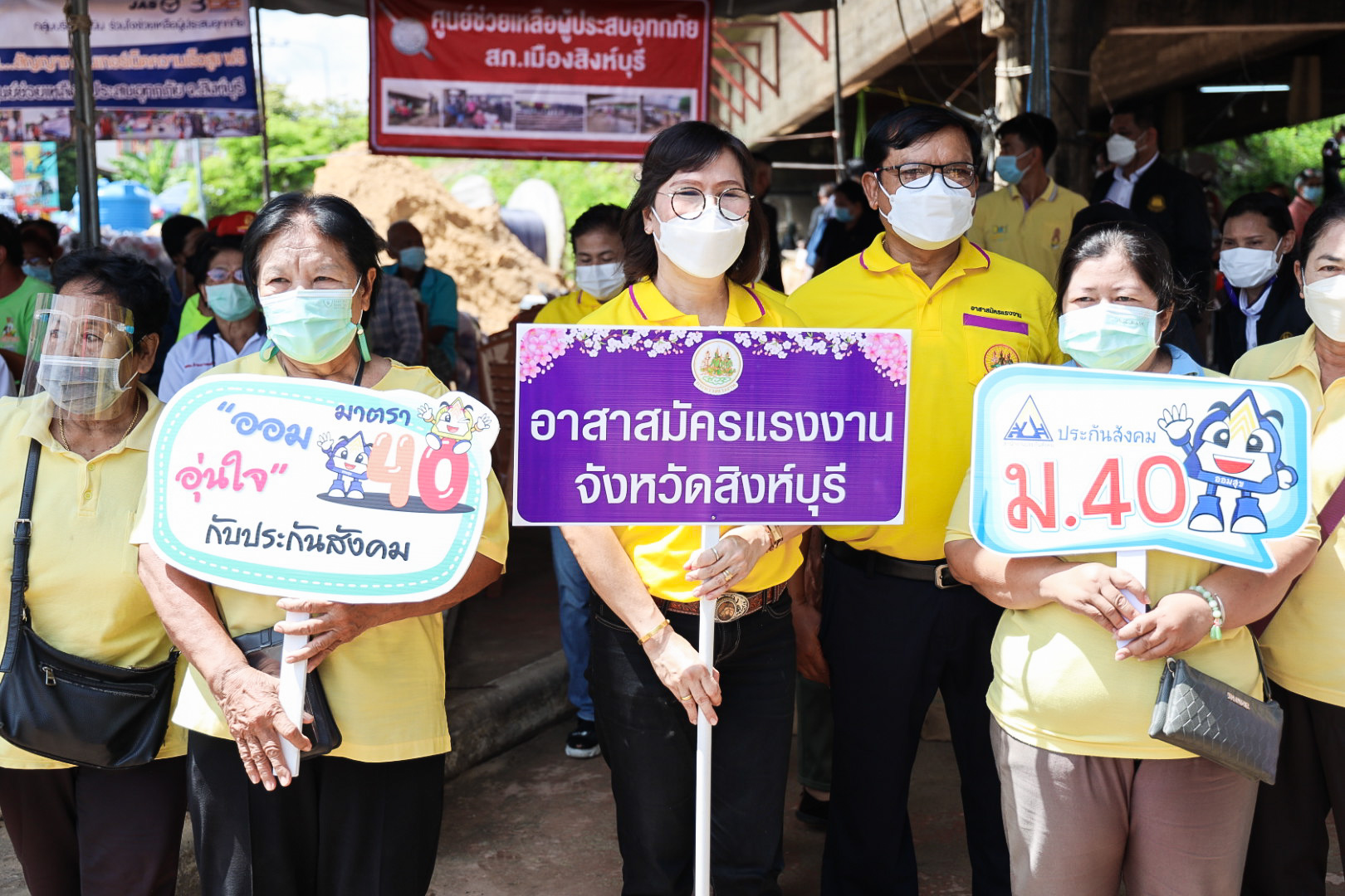 เมื่อวันที่ 20 ตุลาคม 2564 นายสุชาติ ชมกลิ่น รัฐมนตรีว่าการกระทรวงแรงงาน ร่วมคณะ พล.อ.ประยุทธ์ จันทร์โอชา นายกรัฐมนตรีและรัฐมนตรีว่าการกระทรวงกลาโหม ลงพื้นที่ตรวจราชการจังหวัดสิงห์บุรี จุดแรกที่ชุมชนบางแคใน ใต้สะพานบางระจัน ตำบลบางกะบือ อำเภอเมืองสิงห์บุรี จังหวัดสิงห์บุรี เพื่อตรวจติดตามสถานการณ์อุทกภัย โดย นายชัยชาญ สิทธิวิรัชธรรม ผู้ว่าราชการจังหวัดสิงห์บุรี รายงานสถานการณ์และตรวจเยี่ยมให้กำลังใจพร้อมมอบถุงยังชีพให้ประชาชนผู้ประสบอุทกภัยชุมชนบางแคใน โดยมี นางเธียรรัตน์ นะวะมะวัฒน์ โฆษกกระทรวงแรงงาน (ฝ่ายการเมือง) นายไพโรจน์ โชติกเสถียร อธิบดีกรมการจัดหางาน พร้อมด้วยผู้บริหารระดับสูงกระทรวงแรงงาน เข้าร่วมในครั้งนี้ด้วย โอกาสนี้ มีอาสาสมัครแรงงาน (อสร.) ของจังหวัดสิงห์บุรี จำนวน 10 คน พร้อมทั้งผู้ประกันตนมาตรา 40 เข้าร่วมต้อนรับ ซึ่งนายกรัฐมนตรี ได้ให้กำลังใจแก่อาสาสมัครแรงงานจังหวัดสิงห์บุรีที่มาร่วมต้อนรับและมาช่วยเหลือผู้ประสบภัย ซึ่งอาสาสมัครแรงงานของจังหวัดสิงห์บุรี มีจำนวน 43 คน มีภารกิจในการประสานการให้บริการด้านแรงงานในพื้นที่ เพื่อให้ประชาชนมีงานทำ มีทักษะฝีมือ มีอาชีพมีรายได้ ได้รับคุ้มครองและมีหลักประกันทางสังคมที่ยั่งยืนอีกด้วย ปัจจุบันมีอาสาสมัครแรงงานทั่วประเทศรวมทั้งสิ้น 8,110 คน