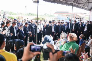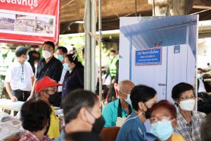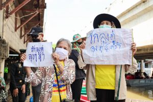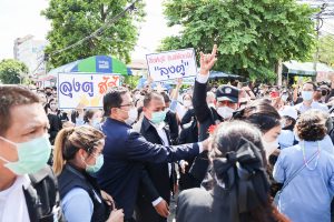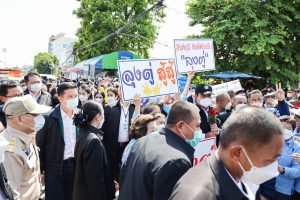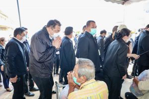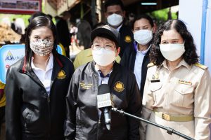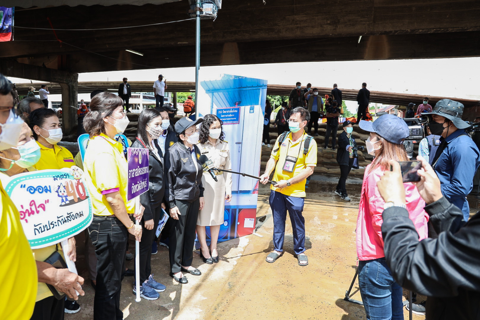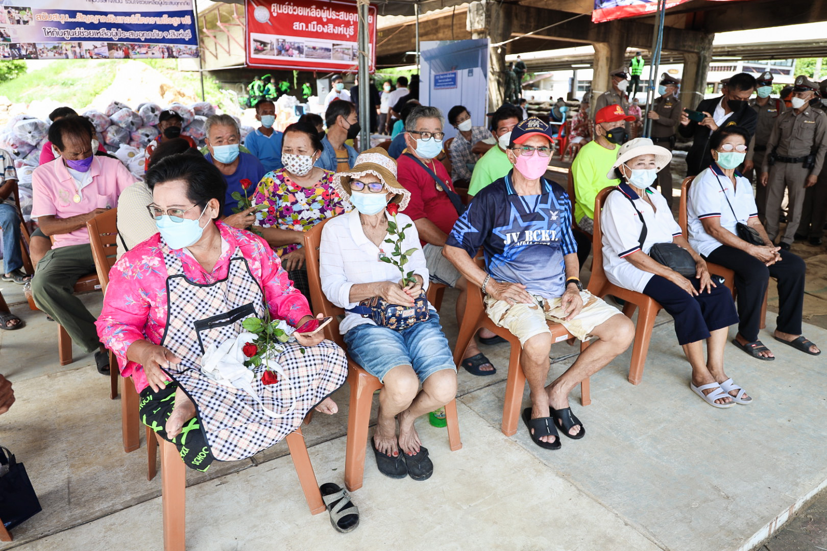 ด้านนายสมศักดิ์ พ่วงเอี่ยม ประธานอาสาสมัครแรงงานจังหวัดสิงห์บุรี ปัจจุบันเป็น อสร.ตำบลโพชนไก่ อำเภอบางระจัน กล่าวว่า ขอบคุณท่านนายกรัฐมนตรีและรัฐมนตรีว่าการกระทรวงแรงงาน ที่ลงพื้นที่มาพบปะให้กำลังใจอาสาสมัครแรงงานและนำถุงยังชีพ สุขาลอยน้ำมามอบให้เพื่อช่วยชาวบ้านที่ได้รับความเดือดร้อนในวันนี้