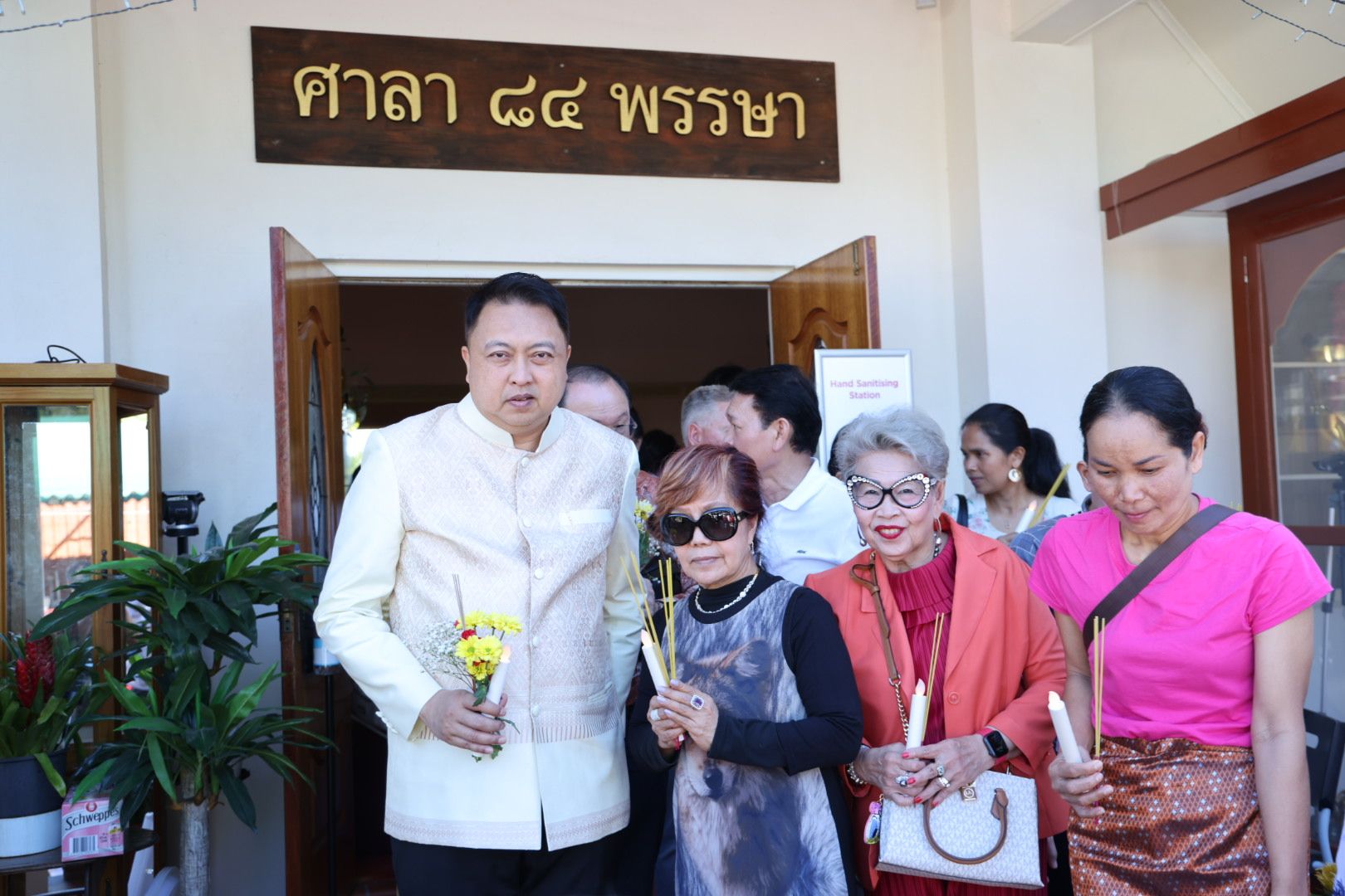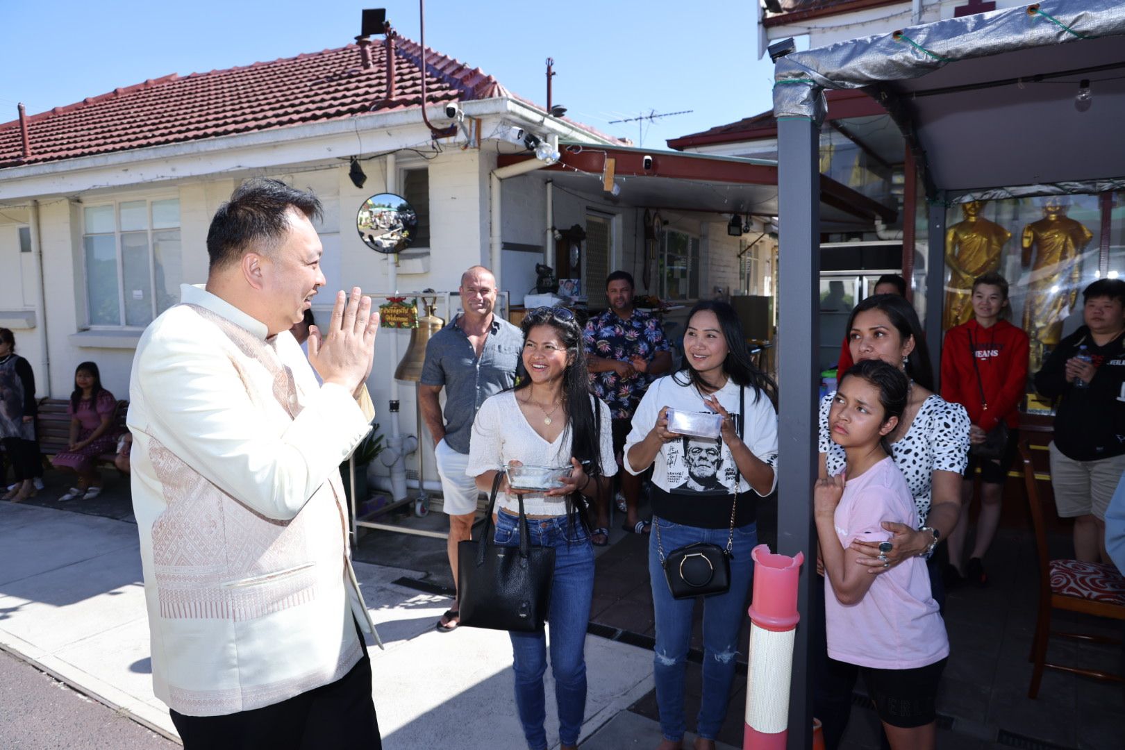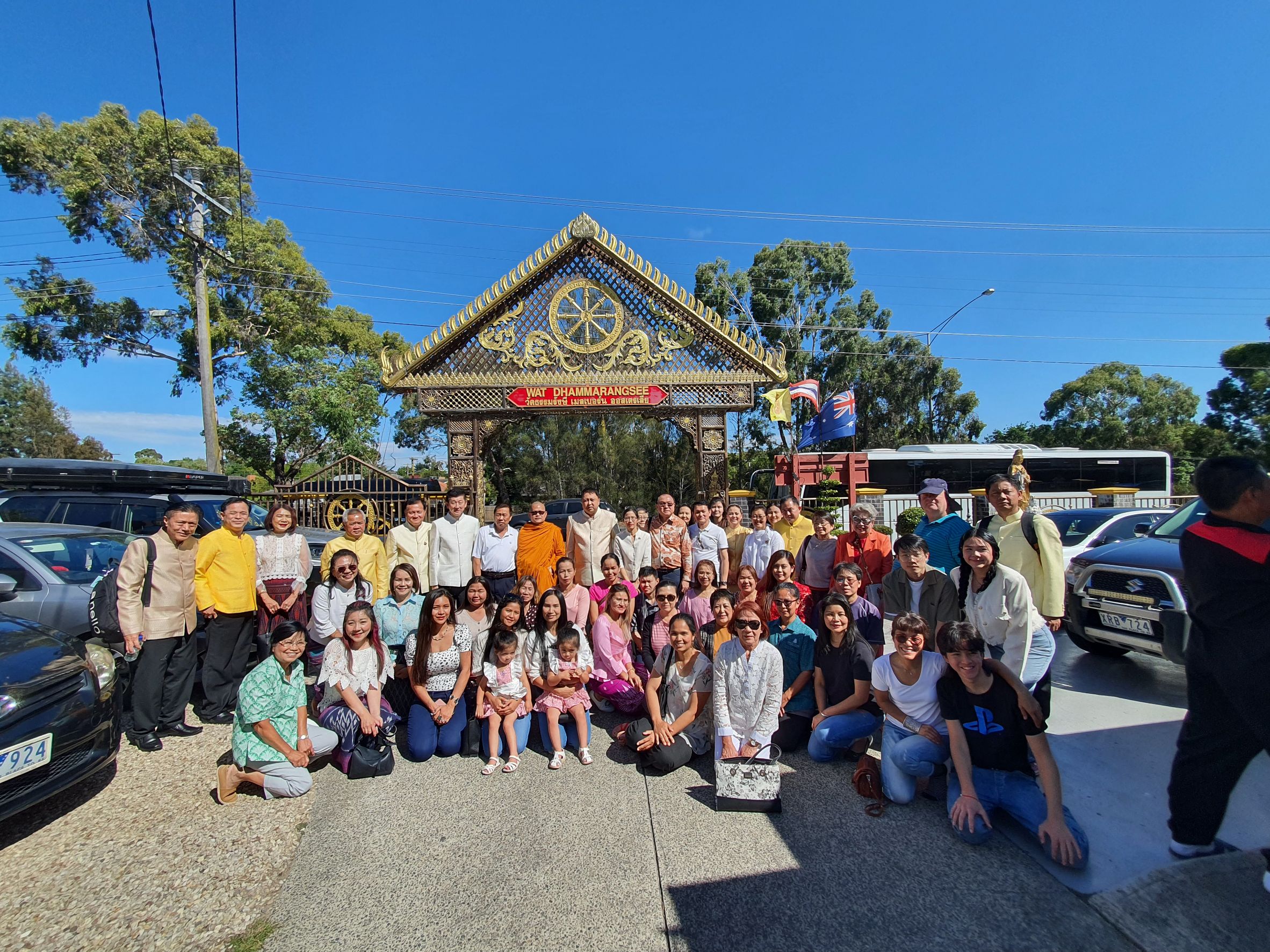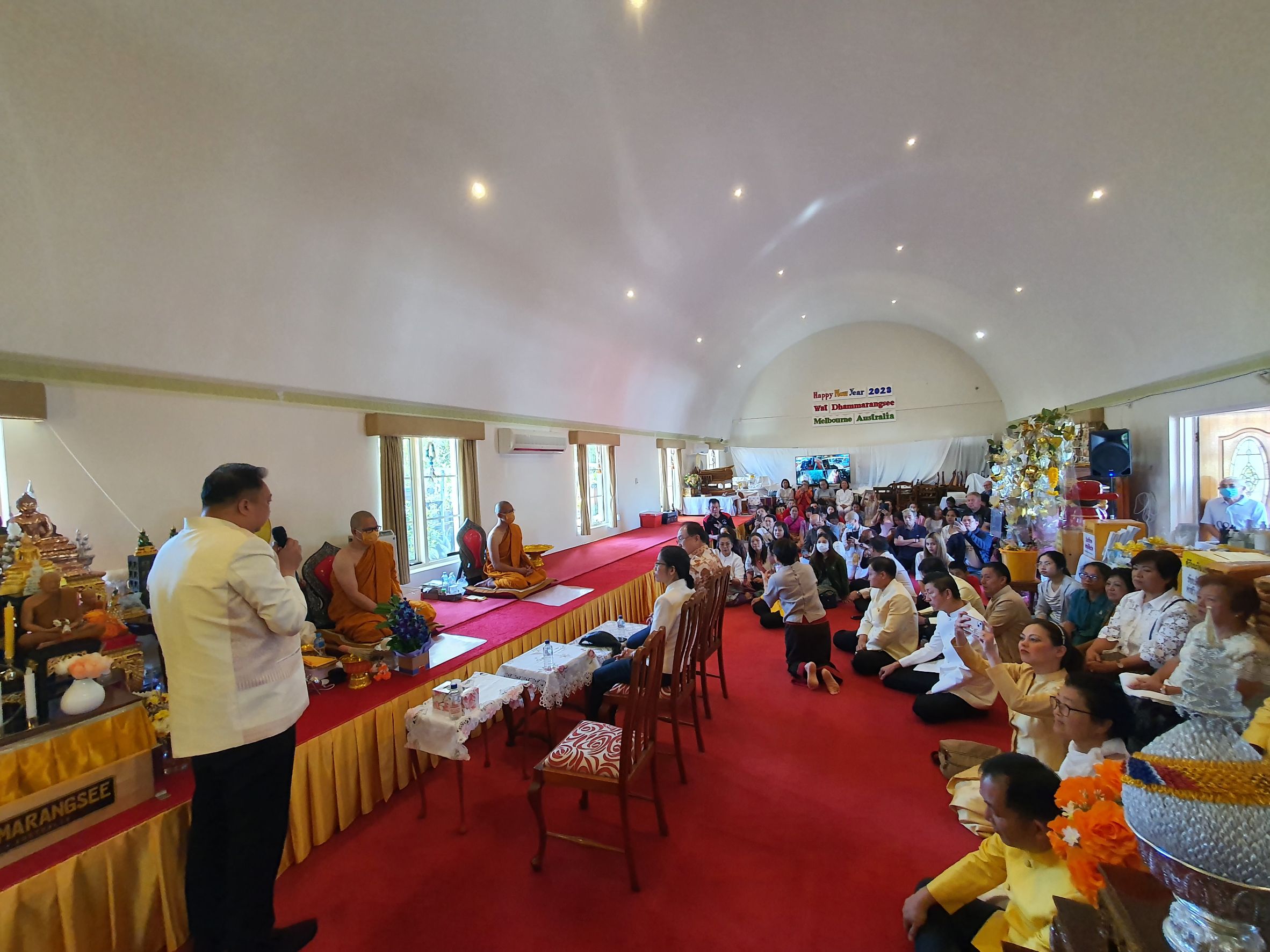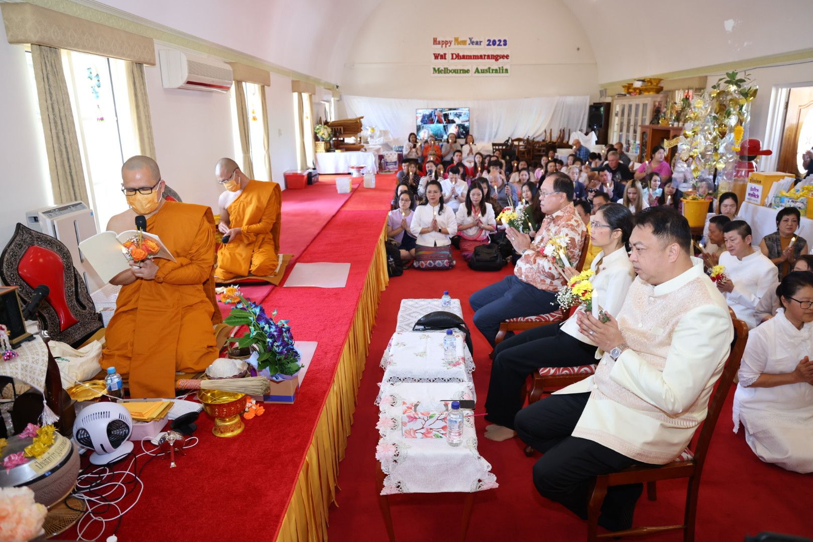 On March 5, 2023, the Labour Minister, Mr. Suchart Chomklin, joined a making-merit ceremony with Thai workers and the Thai community in Melbourne on Makha Bucha Day. Phrakru Choti Thammawitet (Thani Chutikamo), the Abbot of Wat Thammarangsi, Monastic President, Assistant to the Labour Minister, Mr. Surachai Chaitrakulthong, the Permanent Secretary of Labour, Mr. Boonchob Suttamanaswong, Ambassador of Thailand in Canberra, Ms. Ajaree Srirattanaban, the Ministry of Labour’s executives and over 70 Thai people in Melbourne joined the merit-making ceremony at Wat Thammarangsi in Melbourne, Australia.