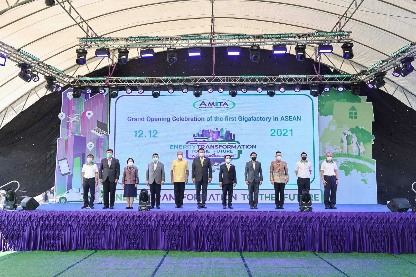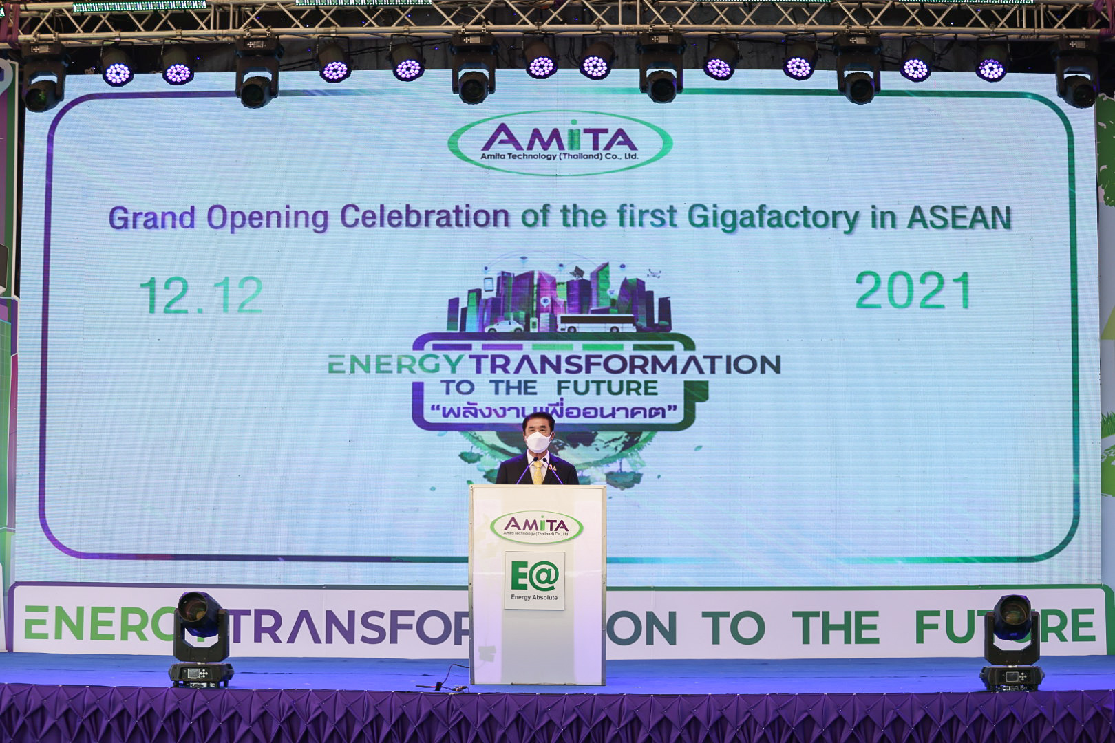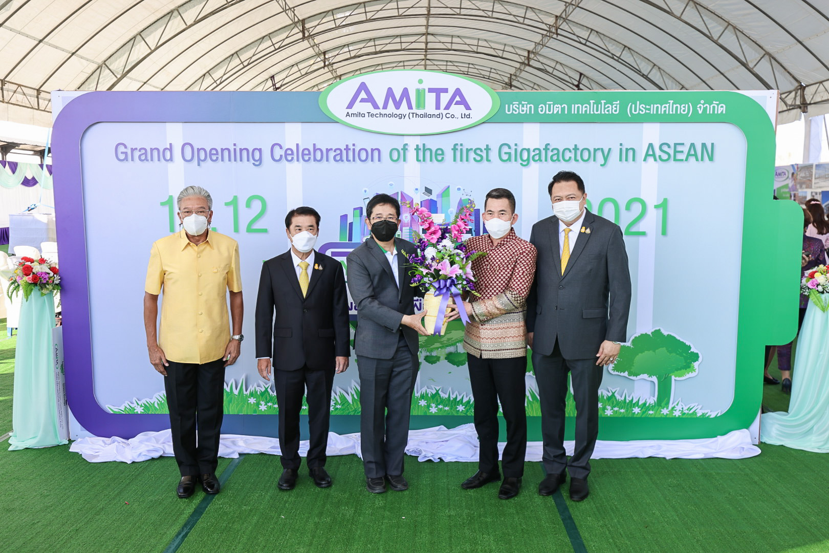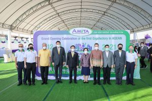 เมื่อวันที่ 12 ธันวาคม 2564 นายสุชาติ ชมกลิ่น รัฐมนตรีว่าการกระทรวงแรงงาน ร่วมเป็นเกียรติในพิธีเปิดงาน Grand opening celebration of the first Gigafactory in ASEAN Energy Transformation to The Future : พลังงานเพื่ออนาคต และร่วมพิธีลงนามในบันทึกข้อตกลงความร่วมมือการสนับสนุนทุนการศึกษาแก่นักเรียนในพื้นที่ อำเภอบางปะกง จังหวัดฉะเชิงเทรา โดยมี นายสุริยะ จึงรุ่งเรืองกิจ รัฐมนตรีว่าการกระทรวงอุตสาหกรรม เป็นประธาน รองศาสตราจารย์ ดร.คุณหญิง สุมณฑา พรหมบุญ อธิการบดีสถาบันเทคโนโลยีจิตรลดา นางเธียรรัตน์ นะวะมะวัฒน์ โฆษกกระทรวงแรงงาน (ฝ่ายการเมือง) พร้อมด้วยผู้บริหารระดับสูงกระทรวงแรงงานและหน่วยงานที่เกี่ยวข้อง เข้าร่วมด้วย นายสมโภชน์ อาหุนัย ประธานเจ้าหน้าที่บริหาร บริษัท พลังงานบริสุทธ์ จำกัด มหาชน ร่วมต้อนรับ นายชาญยุทธ์ ฉายาวัฒนะ รองประธานเจ้าหน้าที่บริหาร บริษัท อมิตา เทคโนโลยี (ประเทศไทย) จำกัด กล่าวรายงานที่มาและวัตถุประสงค์การจัดงาน ณ ลานอเนกประสงค์ บริษัท อมิตา เทคโนโลยี (ประเทศไทย) จำกัดนิคมอุตสาหกรรมฉะเชิงเทรา บลูเทค ซิตี้ อำเภอบางปะกง จังหวัดฉะเชิงเทรา
