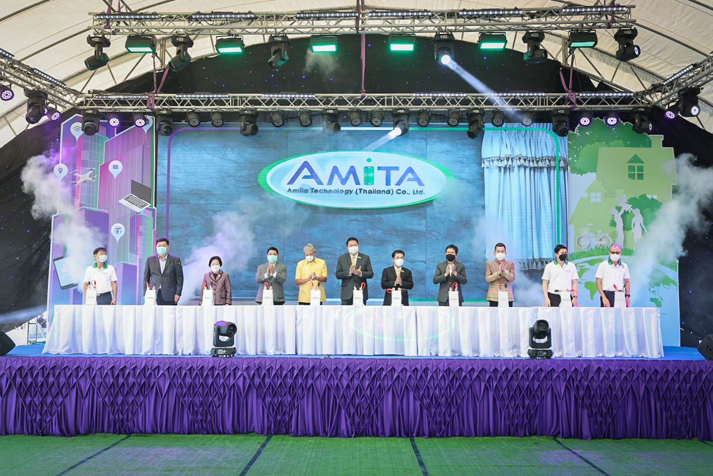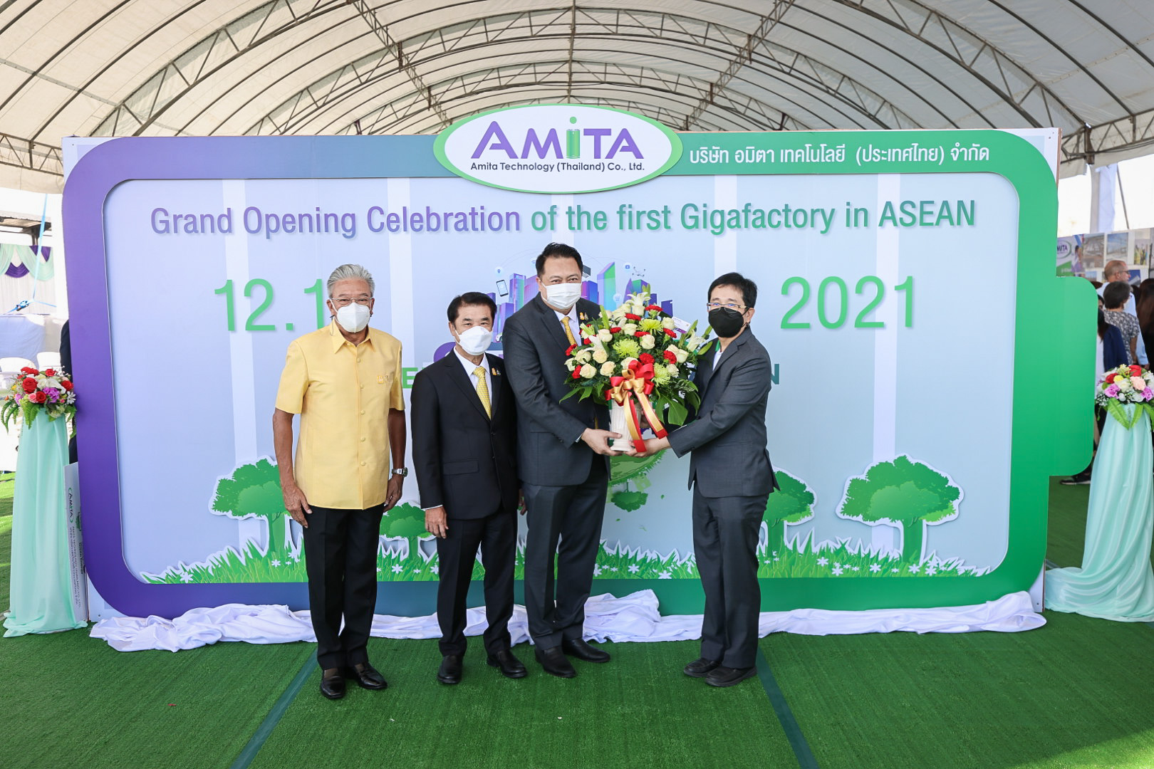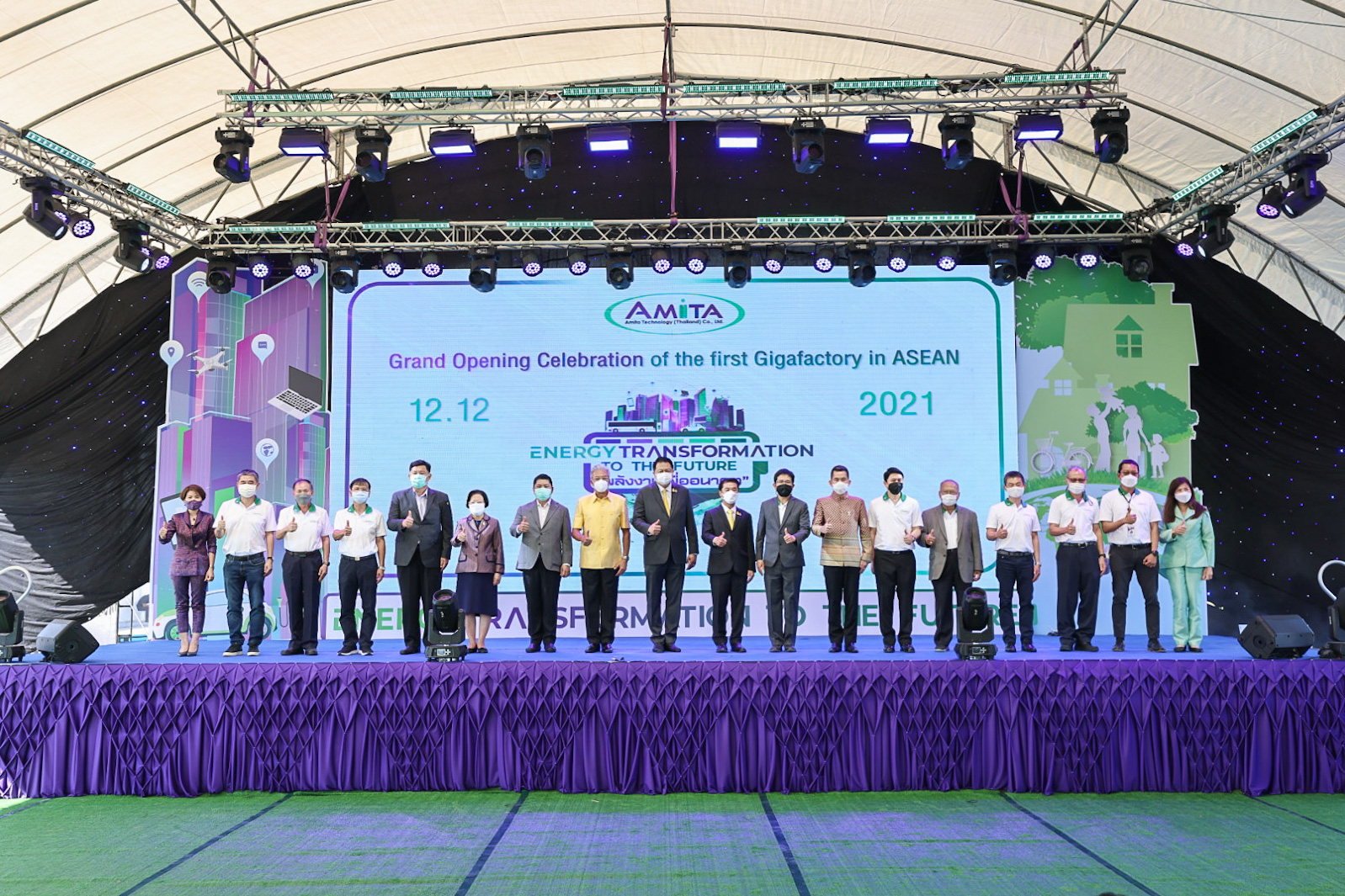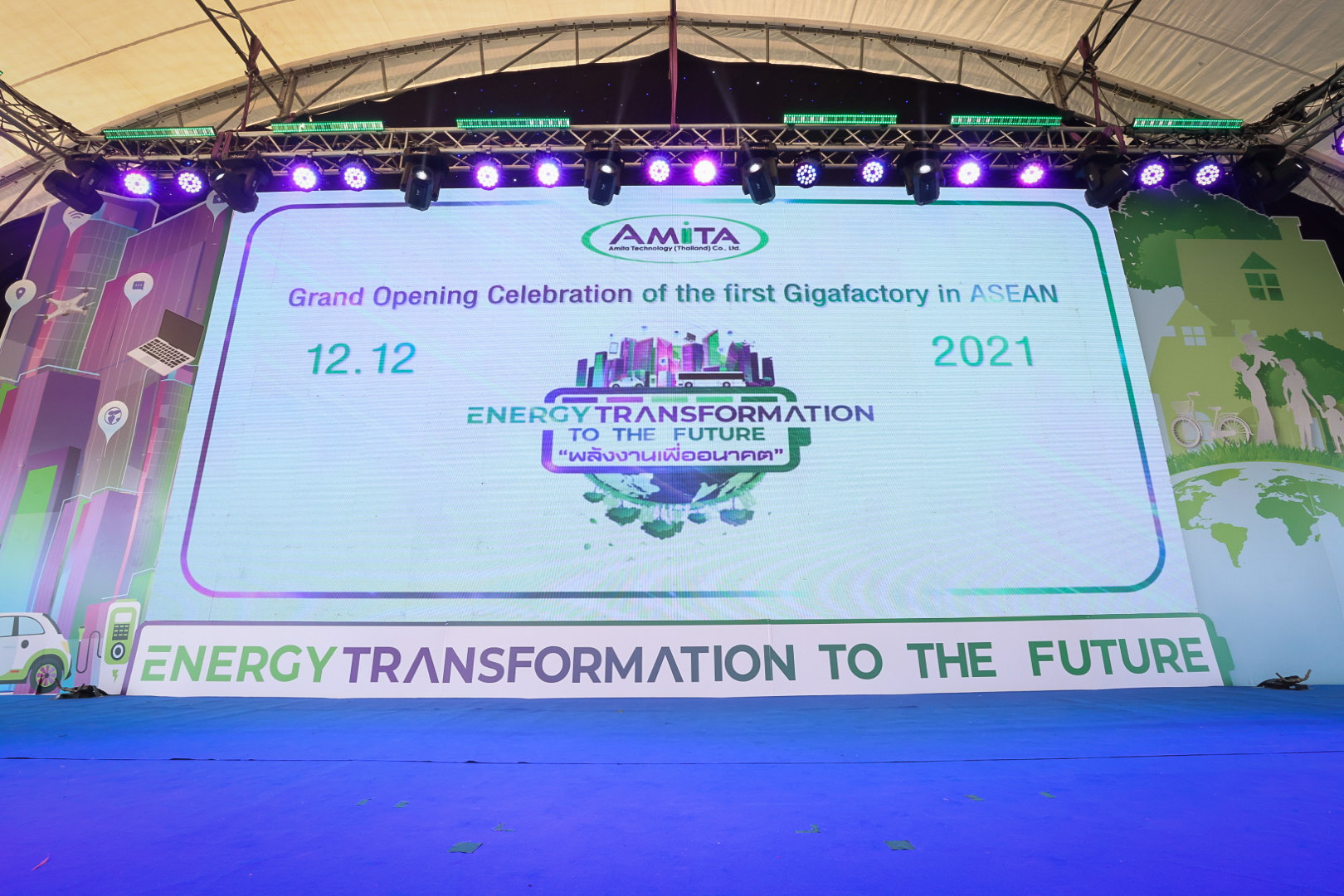 เมื่อวันที่ 12 ธันวาคม 2564 นายสุชาติ ชมกลิ่น รัฐมนตรีว่าการกระทรวงแรงงาน ร่วมเป็นเกียรติในพิธีเปิดงาน Grand opening celebration of the first Gigafactory in ASEAN Energy Transformation to The Future : พลังงานเพื่ออนาคต และร่วมพิธีลงนามในบันทึกข้อตกลงความร่วมมือการสนับสนุนทุนการศึกษาแก่นักเรียนในพื้นที่ อำเภอบางปะกง จังหวัดฉะเชิงเทรา โดยมี นายสุริยะ จึงรุ่งเรืองกิจ รัฐมนตรีว่าการกระทรวงอุตสาหกรรม เป็นประธาน รองศาสตราจารย์ ดร.คุณหญิง สุมณฑา พรหมบุญ อธิการบดีสถาบันเทคโนโลยีจิตรลดา นางเธียรรัตน์ นะวะมะวัฒน์ โฆษกกระทรวงแรงงาน (ฝ่ายการเมือง) พร้อมด้วยผู้บริหารระดับสูงกระทรวงแรงงานและหน่วยงานที่เกี่ยวข้อง เข้าร่วมด้วย นายสมโภชน์ อาหุนัย ประธานเจ้าหน้าที่บริหาร บริษัท พลังงานบริสุทธ์ จำกัด มหาชน ร่วมต้อนรับ นายชาญยุทธ์ ฉายาวัฒนะ รองประธานเจ้าหน้าที่บริหาร บริษัท อมิตา เทคโนโลยี (ประเทศไทย) จำกัด กล่าวรายงานที่มาและวัตถุประสงค์การจัดงาน ณ ลานอเนกประสงค์ บริษัท อมิตา เทคโนโลยี (ประเทศไทย) จำกัดนิคมอุตสาหกรรมฉะเชิงเทรา บลูเทค ซิตี้ อำเภอบางปะกง จังหวัดฉะเชิงเทรา