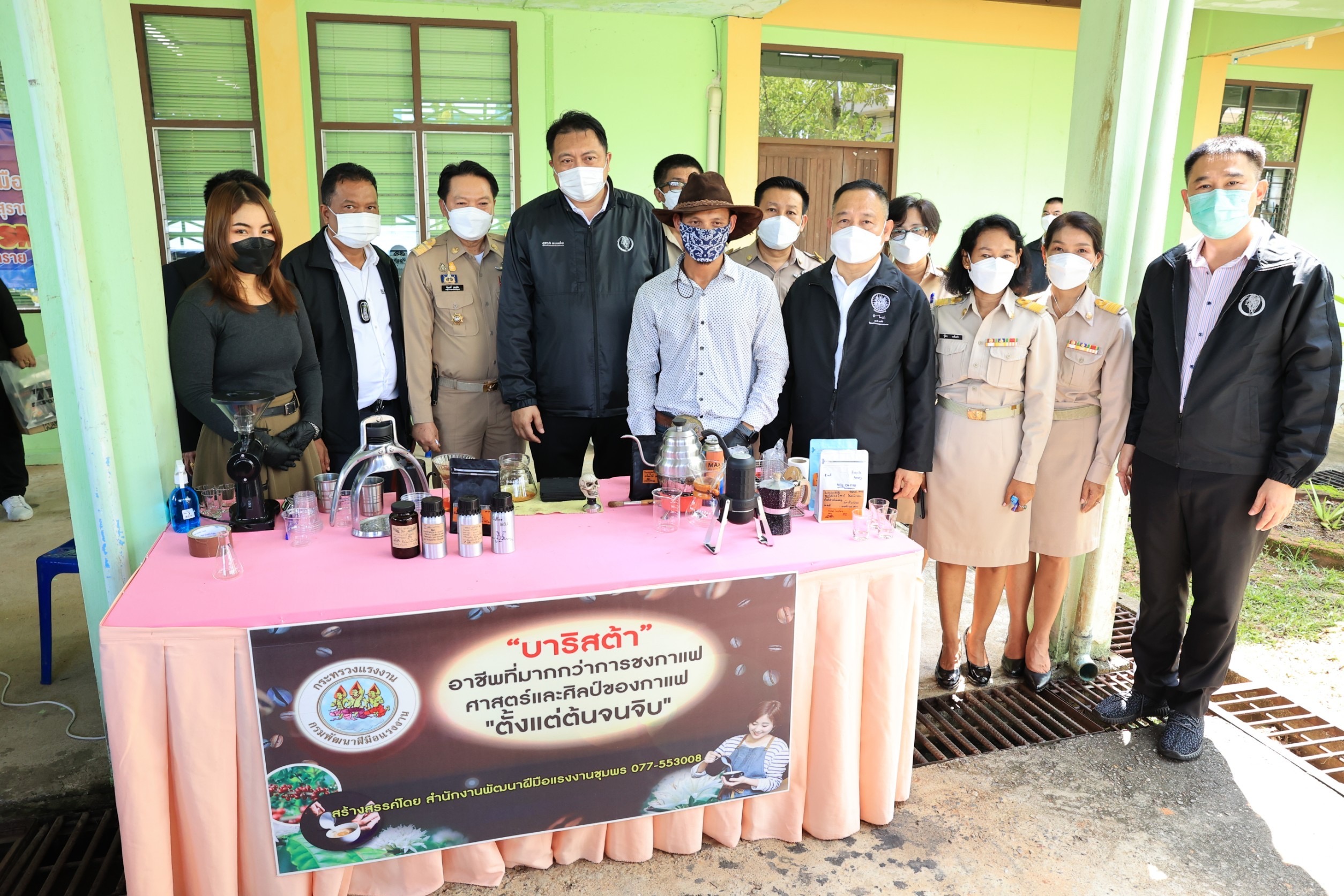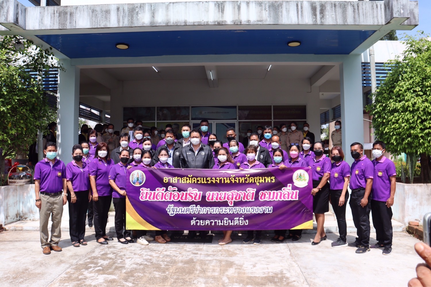 เมื่อวันที่ 1 พฤศจิกายน 2564 นายสุชาติ ชมกลิ่น รัฐมนตรีว่าการกระทรวงแรงงาน ลงพื้นที่จังหวัดชุมพร เพื่อเยี่ยมชมกิจกรรมศูนย์บริการพัฒนาฝีมือแรงงาน พร้อมทั้งพบปะอาสาสมัครแรงงานจังหวัดชุมพร และประชุมมอบนโยบายหัวหน้าส่วนราชการหน่วยงานในสังกัดกระทรวงแรงงานจังหวัดชุมพร ณ อาคารศูนย์บริการพัฒนาฝีมือแรงงาน สำนักงานพัฒนาฝีมือแรงงานชุมพร ตำบลท่ายาง อำเภอเมือง จังหวัดชุมพร โดยมี นางธิวัลรัตน์ อังกินันทน์ ที่ปรึกษารัฐมนตรีว่าการกระทรวงแรงงาน นายสุเทพ ชิตยวงษ์ เลขานุการรัฐมนตรีว่าการกระทรวงแรงงาน พล.ต.ต.นันทชาติ ศุภมงคล ประจำสำนักเลขาธิการนายกรัฐมนตรี ปฏิบัติหน้าที่ประจำกระทรวงแรงงาน นางเธียรรัตน์ นะวะมะวัฒน์ โฆษกกระทรวงแรงงาน (ฝ่ายการเมือง) พร้อมด้วยผู้บริหารระดับสูงกระทรวงแรงงาน เข้าร่วมในครั้งนี้ด้วย โดย รมว.แรงงาน ได้เยี่ยมชมกิจกรรมความสำเร็จตามโครงการเพิ่มผลิตภาพแรงงาน Productivity การเป็นผู้ประกอบการสมัยใหม่กิจกรรมความสำเร็จจากการฝึกอบรมการประกอบอาชีพอิสระและการขายสินค้าออนไลน์ภายใต้โครงการพัฒนาฝีมือแรงงานกับการเพิ่ม GPP จังหวัดชุมพร 100,000 ล้านบาท กิจกรรมการพัฒนาฝีมือแรงงานด้านเทคโนโลยีพลังงานสะอาด ณ หน้าอาคารช่างไฟฟ้าและอิเล็คทรอนิกส์เยี่ยมชมกิจกรรมกลุ่มผลิตภาพแปรรูปประเภทเพื่อสร้างความเข้มแข็ง Young Smart Farmer เยี่ยมชมกิจกรรมร้านกาแฟดริป (Drip) โรบัสต้าชุมพร และกิจกรรม DSD จิตอาสาเพื่อสังคมมอบสุขาลอยน้ำจำนวน 1 หลัง และน้ำดื่ม จำนวน 1,200 ขวด ตามโครงการจิตอาสาเพื่อสังคมด้วยรักและห่วงใยจากใจกระทรวงแรงงานและภาคเอกชน แก่ นายสัมฤทธิ์ กองเงิน รองผู้ว่าราชการจังหวัดชุมพร เพื่อนำไปช่วยเหลือผู้ประสบอุทกภัยจังหวัดชุมพร