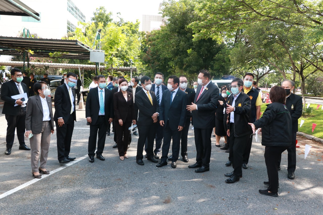 นายสุชาติ ชมกลิ่น รัฐมนตรีว่าการกระทรวงแรงงาน นำคณะลงพื้นที่ตรวจเยี่ยมให้กำลังใจและมอบสิ่งของแก่ลูกจ้างที่ตรวจโควิด-19 เชิงรุกเพื่อผู้ประกันตนในสถานประกอบการ ณ นิคมอุตสาหกรรมอมตะชิตี้ พร้อมมอบหน้ากากอนามัย ชุด PPE และสิ่งของให้กับองค์การบริหารส่วนตำบลหนองรี อ.เมือง จ.ชลบุรี