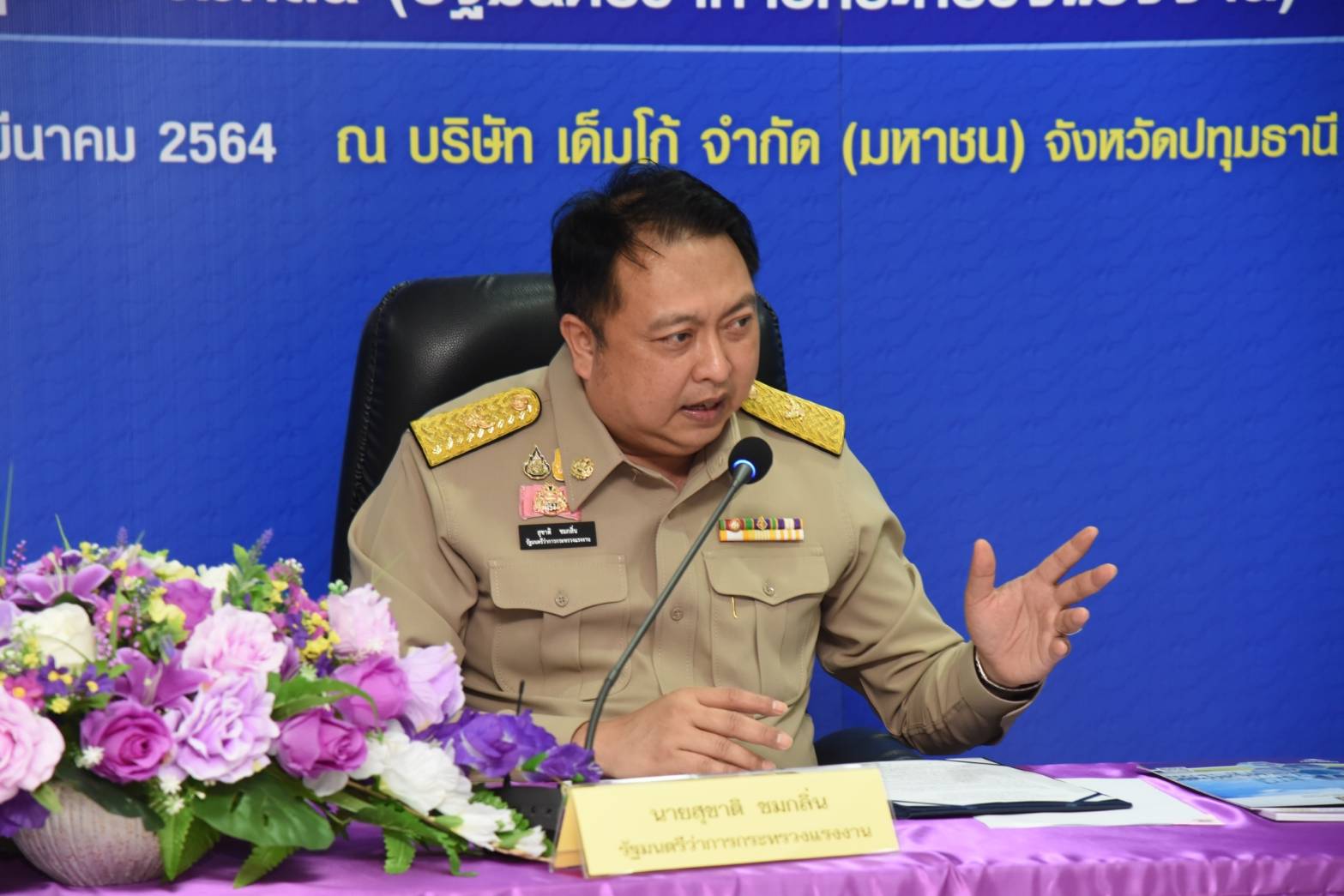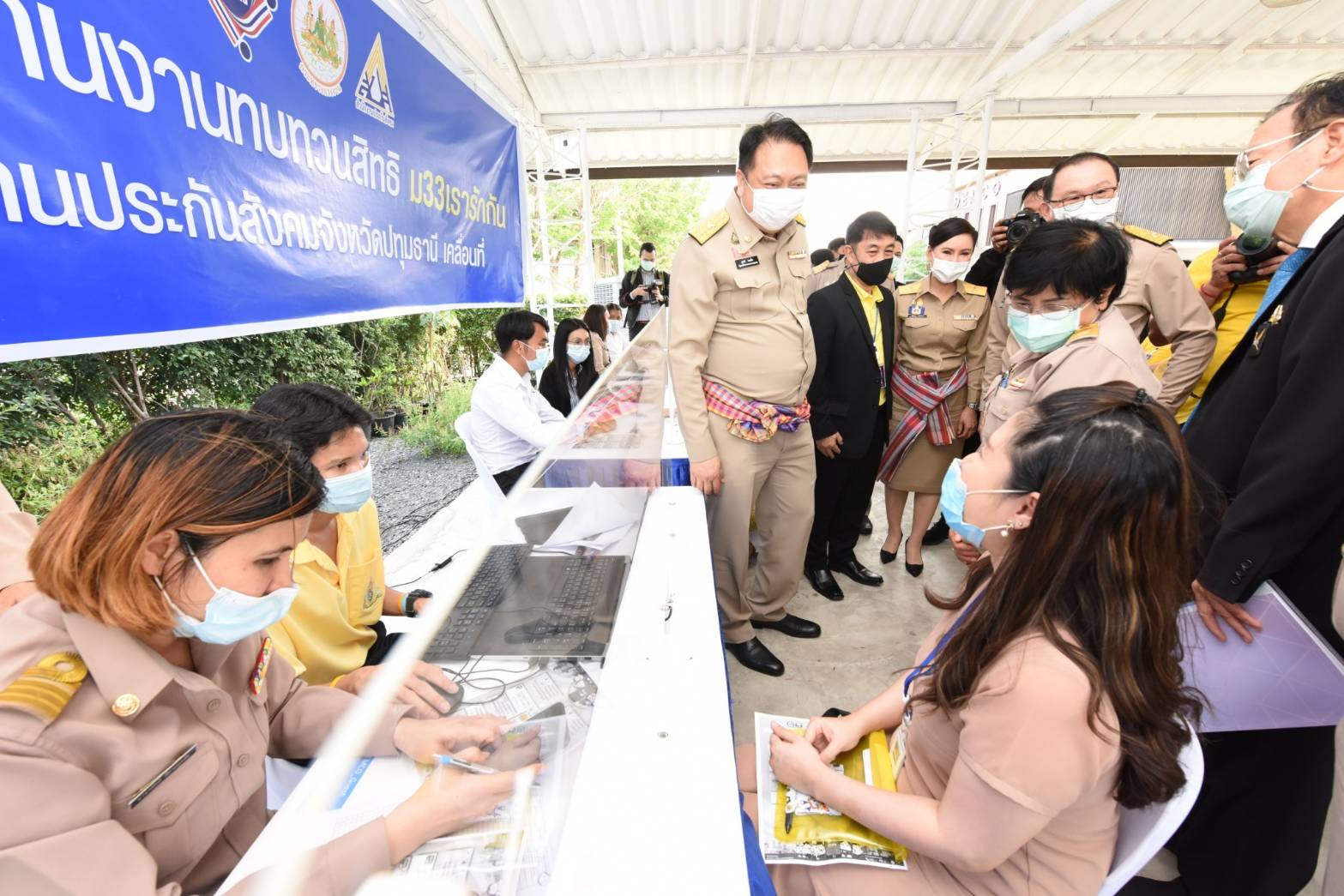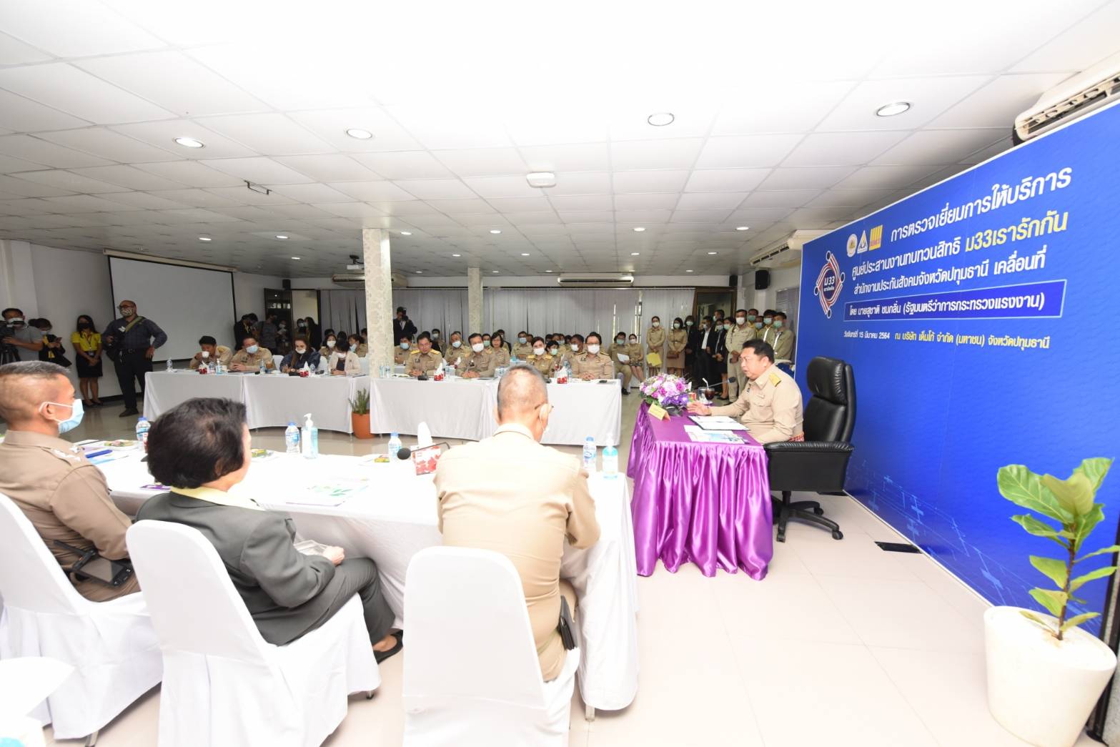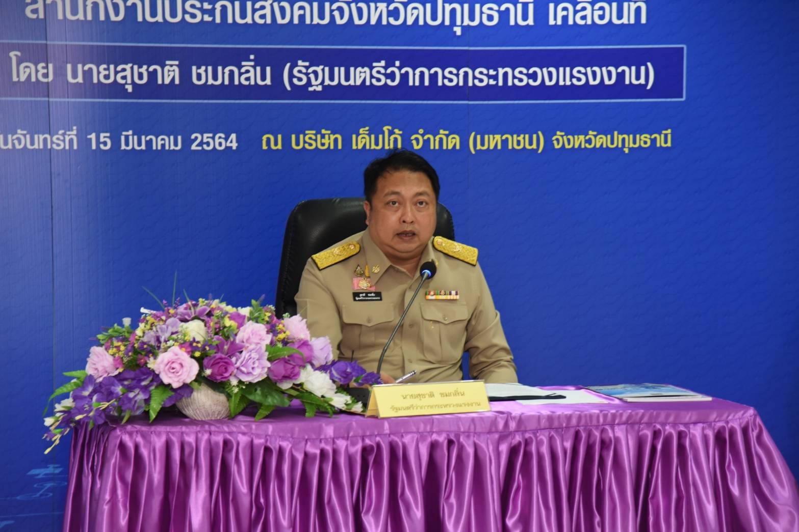 นายสุชาติ ชมกลิ่น รัฐมนตรีว่าการกระทรวงแรงงาน นำทีมลงพื้นที่จังหวัดปทุมธานี ตรวจเยี่ยมการให้บริการศูนย์ประสานงานทบทวนสิทธิโครงการ ม33เรารักกัน ณ สำนักงานประกันสังคมจังหวัดปทุมธานี และศูนย์ประสานงานฯ เคลื่อนที่ ณ บริษัท เด็มโก้ จำกัด (มหาชน) จังหวัดปทุมธานี