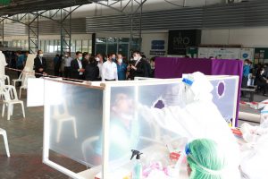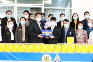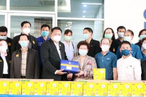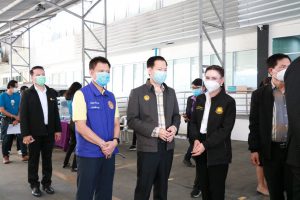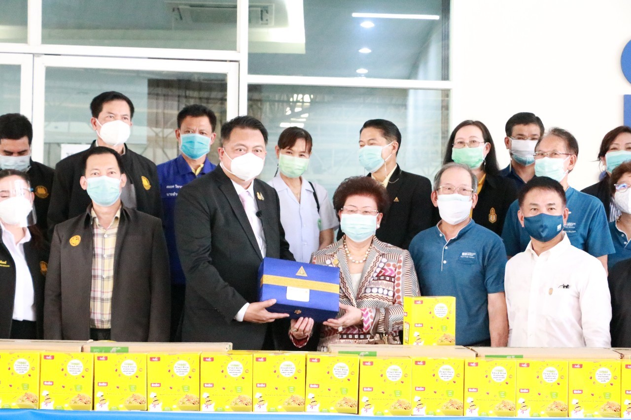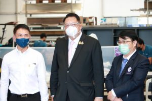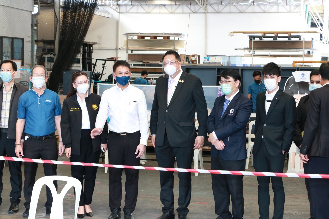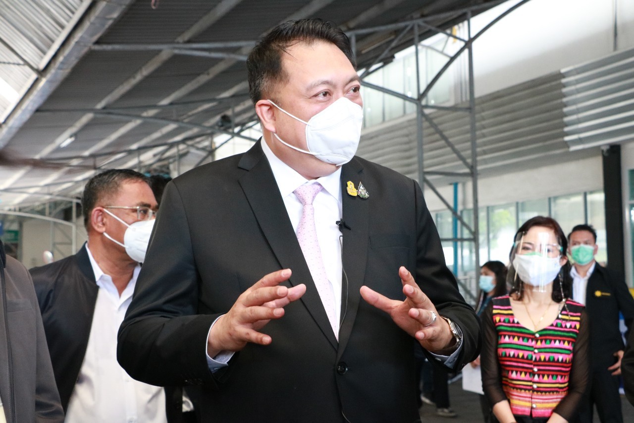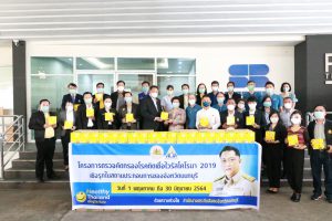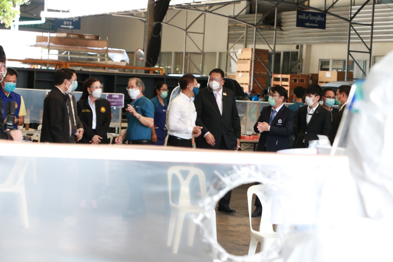 นายสุชาติ ชมกลิ่น รัฐมนตรีว่าการกระทรวงแรงงาน นำคณะลงพื้นที่นนทบุรีตรวจเยี่ยมให้กำลังใจและมอบสิ่งของแก่ลูกจ้างที่ตรวจโควิด-19 เชิงรุกเพื่อผู้ประกันตนในสถานประกอบการ ณ บริษัทแห่งหนึ่ง