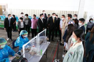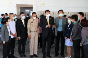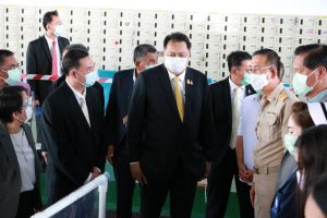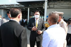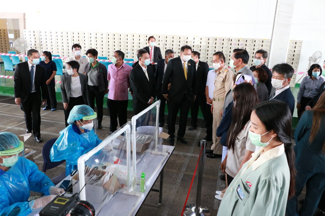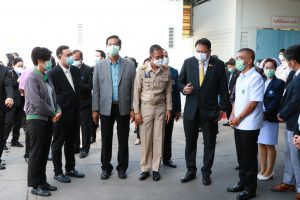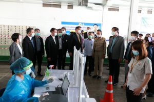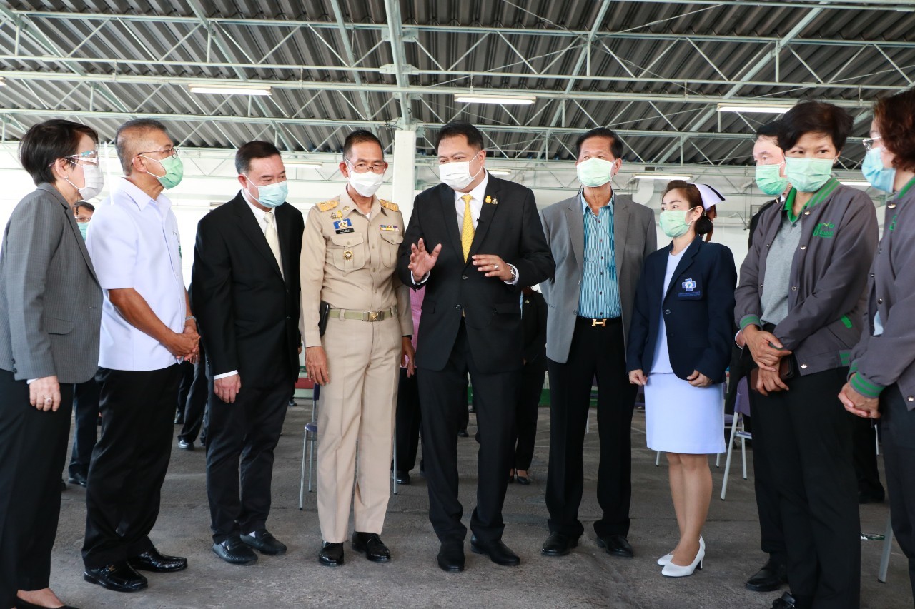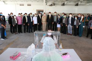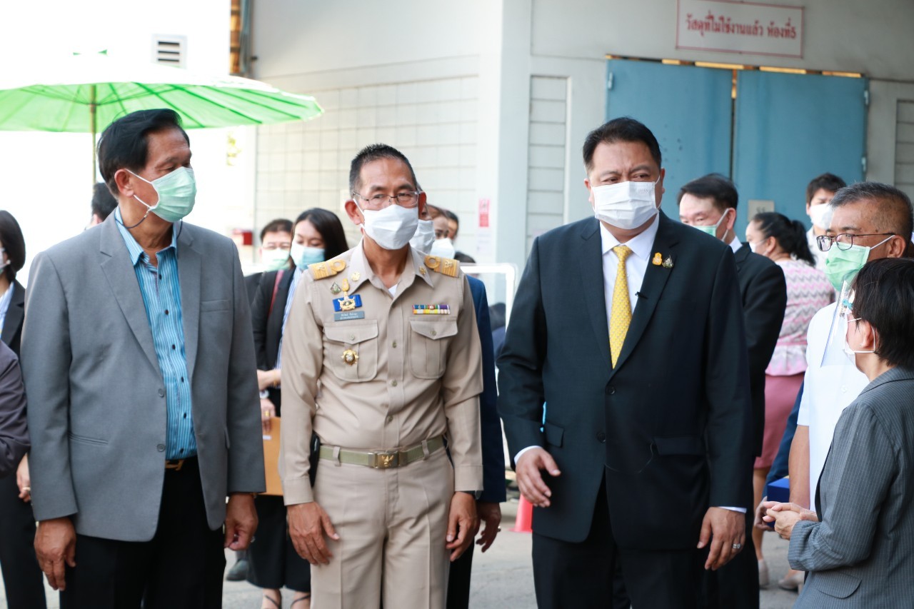 นายสุชาติ ชมกลิ่น รัฐมนตรีว่าการกระทรวงแรงงาน นำคณะลงพื้นที่ตรวจเยี่ยมให้กำลังใจและมอบสิ่งของแก่ลูกจ้างที่ตรวจโควิด-19 เชิงรุกเพื่อผู้ประกันตนในสถานประกอบการ ณ บริษัทแห่งหนึ่ง อ.เมือง จ.ปทุมธานี