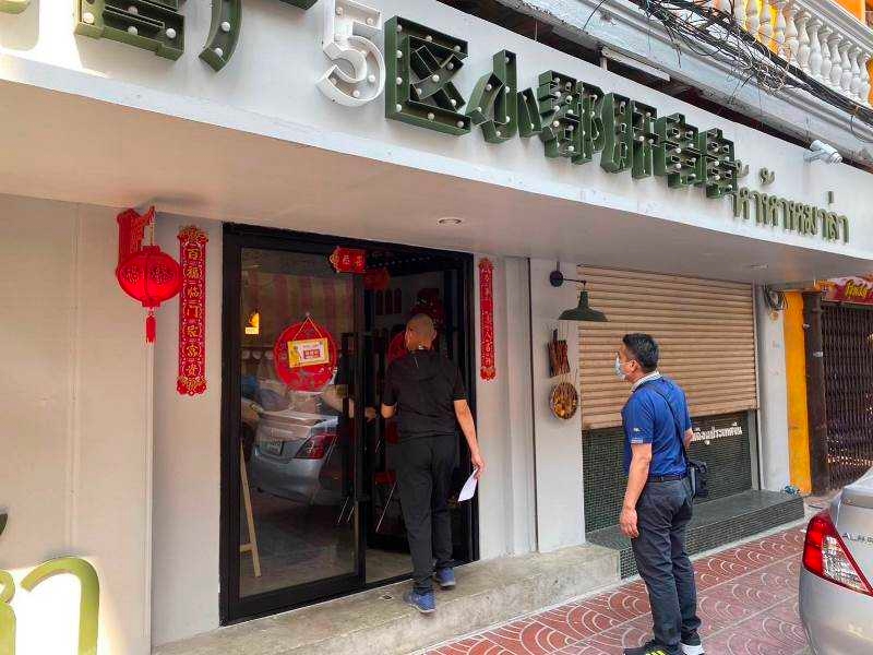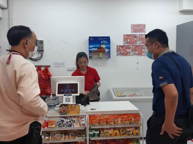 The Department of Employment’s Director-General, Mr. Phairoj Chotikasatien, said that from inspecting six business establishments, there were 19 Thai nationals hired and ten foreigners. Of these, 7 had valid documents to stay in the Kingdom and work. Three foreigners were found guilty, comprising 2 Cambodian nationals and 1 Laotian, who were sent to the Plubplachai Police Station 2 and prosecuted for being a foreign workers without a work permit. A complaint was also filed against one employer for hiring foreigners without work permits. For the two shops that were presented in the news as being owned by Chinese people, it was found that the front of the store was marked with a sign closed for renovation and closed for operation. It also found that one of the shops checked had Thai people as cashiers, but the QR code to receive money had an account name similar to a Chinese name, which the staff could not provide clear information about the shop.