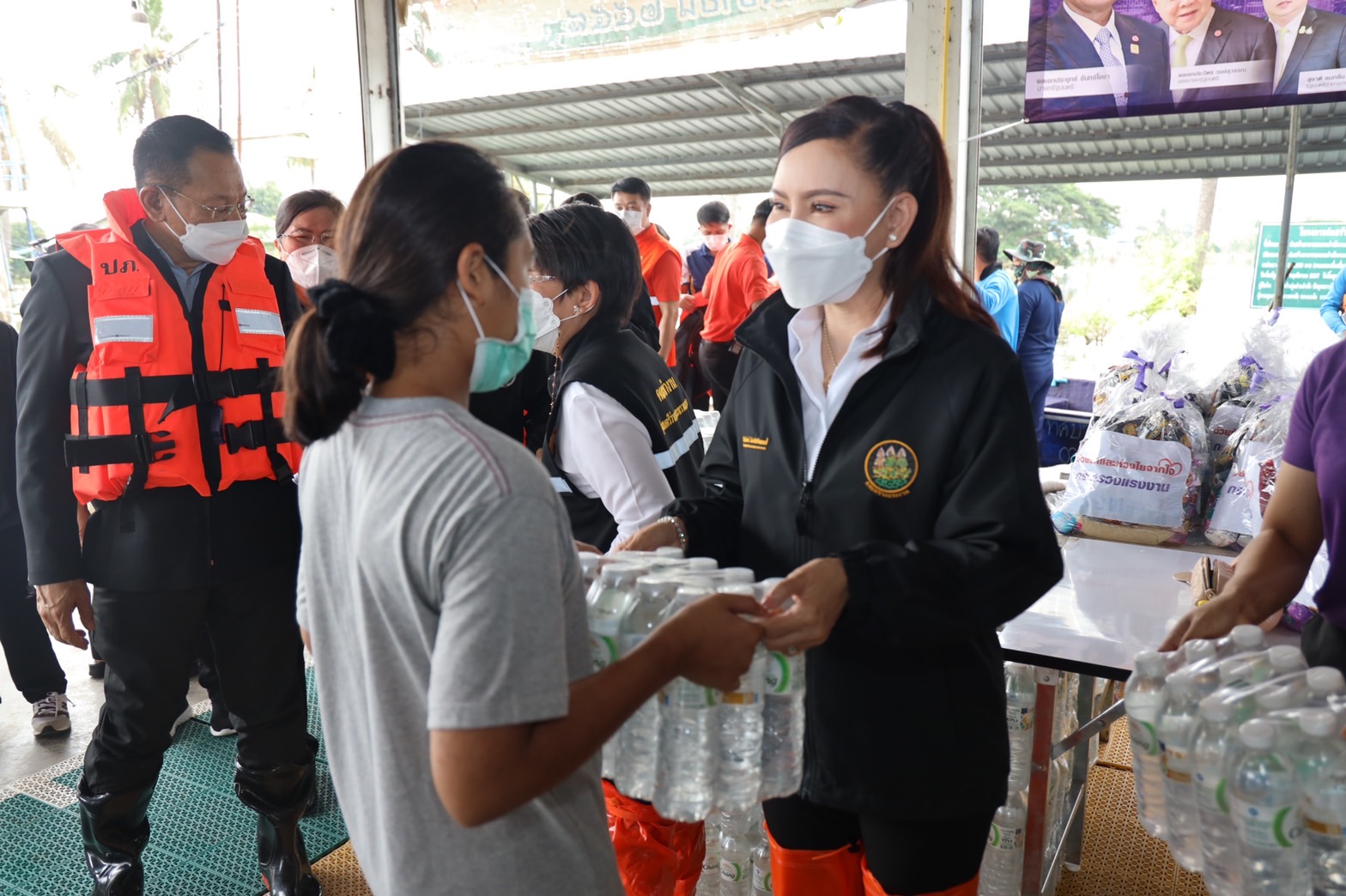 เมื่อวันที่ 28 ตุลาคม 2564 นายสุชาติ ชมกลิ่น รัฐมนตรีว่าการกระทรวงแรงงาน มอบหมายให้นางธิวัลรัตน์ อังกินันทน์ ที่ปรึกษารัฐมนตรีว่าการกระทรวงแรงงาน พร้อมด้วย นางเธียรรัตน์ นะวะมะวัฒน์ โฆษกกระทรวงแรงงาน (ฝ่ายการเมือง) ลงพื้นที่มอบถุงยังชีพและน้ำดื่มให้แก่ประชาชนที่ได้รับผลกระทบจากอุทกภัย จุดแรกที่ศาลาประชาคม หมู่ที่ 4 ตำบลลำพญา อำเภอบางเลน จังหวัดนครปฐม จำนวน 200 ชุด และน้ำดื่ม จำนวน 3,000 ขวด จุดที่สองที่วัดไทยาวาส ตำบลไทยาวาส อำเภอนครชัยศรี จังหวัดนครปฐม มอบถุงยังชีพจำนวน 230 ชุด และน้ำดื่ม จำนวน 3,000 ขวด โดยมี นายอภินันท์ เผือกผ่อง รองผู้ว่าราชการจังหวัดนครปฐม รายงานสถานการณ์น้ำและนำคณะลงเรือท้องแบนเพื่อนำถุงยังชีพและน้ำดื่มไปมอบให้แก่ผู้ประสบอุทกภัยตามบ้านเรือนผู้ประสบอุทกภัย พร้อมด้วยผู้นำชุมชน องค์กรปกครองส่วนท้องถิ่นและหัวหน้าส่วนราชการหน่วยงานในสังกัดกระทรวงแรงงานจังหวัดนครปฐม เข้าร่วมในครั้งนี้ด้วย โอกาสนี้ ได้ให้กำลังใจแก่อาสาสมัครแรงงานจังหวัดนครปฐมที่มาร่วมต้อนรับและมาช่วยเหลือผู้ประสบภัย ซึ่งอาสาสมัครแรงงาน มีภารกิจในการประสานการให้บริการด้านแรงงานในพื้นที่ เพื่อให้ประชาชนมีงานทำ มีทักษะฝีมือ มีอาชีพมีรายได้ ได้รับคุ้มครองและมีหลักประกันทางสังคมที่ยั่งยืนอีกด้วย โดยนางธิวัลรัตน์ กล่าวว่า พล.อ.ประยุทธ์ จันทร์โอชา นายกรัฐมนตรีและรัฐมนตรีว่าการกระทรวงกลาโหม ซึ่งกระทรวงแรงงานภายใต้การกำกับดูแลของ พล.อ.ประวิตร วงษ์สุวรรณ รองนายกรัฐมนตรี ได้มีความห่วงใยผู้ประสบอุทกภัย จึงสั่งการให้ทุกหน่วยงานลงพื้นที่ช่วยเหลือผู้ประสบอุทกภัยตามภารกิจ และในวันนี้ท่านสุชาติ ชมกลิ่น รัฐมนตรีว่าการกระทรวงแรงงาน มอบหมายให้ดิฉันและท่านโฆษกลงพื้นที่จังหวัดนครปฐม มอบถุงยังชีพและน้ำดื่มเพื่อบรรเทาความเดือดร้อนแก่ชาวบ้านที่ประสบอุทกภัย