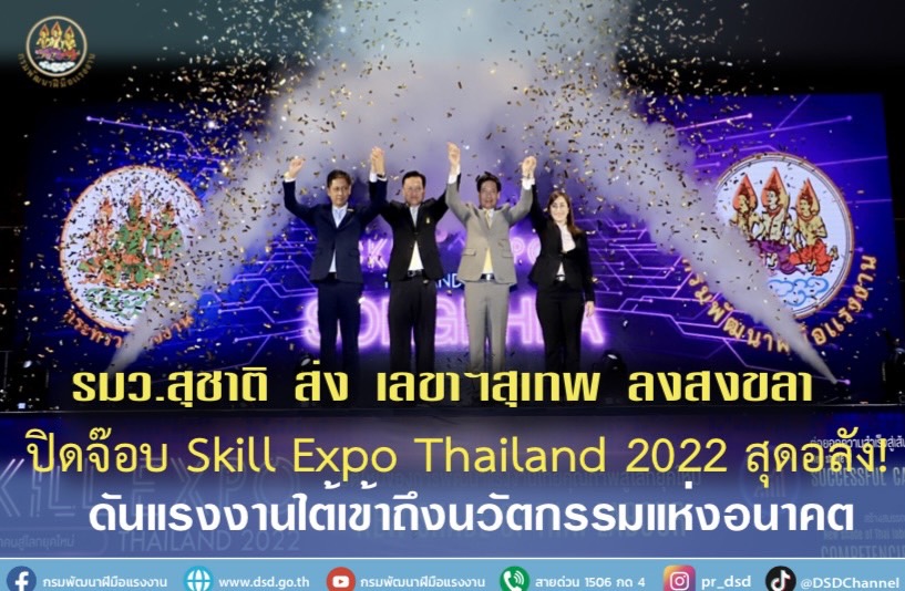 นายสุชาติ ชมกลิ่น รัฐมนตรีว่าการกระทรวงแรงงาน มอบหมายให้นายสุเทพ ชิตยวงษ์ เลขานุการรัฐมนตรีว่าการกระทรวงแรงงาน เป็นประธานในพิธีเปิดงานมหกรรม Skill Expo Thailand 2022 พัฒนาคนสู่โลกยุคใหม่ ครั้งที่ 5 ภายใต้แนวคิด “สร้าง เสริม เติม ต่อ” ณ ศูนย์ประชุมนานาชาติฉลองสิริราชสมบัติครบ 60 ปี อำเภอหาดใหญ่ จังหวัดสงขลา