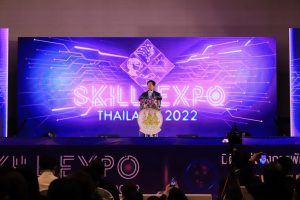 นางสาวบุปผา เรืองสุด รองปลัดกระทรวงแรงงาน รักษาราชการแทนอธิบดีกรมพัฒนาฝีมือแรงงาน กล่าวต่อไปว่า โครงการมหกรรม Skill Expo Thailand 2022 พัฒนาคนสู่โลกยุคใหม่ ครั้งที่ 2 จัดขึ้นภายใต้แนวคิด “สร้าง เสริม เติม ต่อ” คือ สร้างสมรรถนะ เสริมภูมิคุ้มกัน เติมเต็มองค์ความรู้ และต่อยอดความสำเร็จสู่เส้นทางอาชีพ ซึ่งกิจกรรมภายในงานประกอบด้วย การสาธิตการแข่งขันฝีมือแรงงาน จำนวน 10 สาขา ได้แก่ สาขาการสร้างโมเดลสำหรับเกมสามมิติ สาขาการสร้างแบบจำลองข้อมูลอาคาร สาขาการเขียนแบบเครื่องกลด้วยคอมพิวเตอร์ สาขาการรักษาความปลอดภัยบนโลกไซเบอร์ สาขาเทคโนโลยีระบบอัตโนมัติในงานอุตสาหกรรม สาขาการออกแบบหุ่นยนต์ตามภารกิจ สาขาเมคคาทรอนิกส์ สาขาเทคโนโลยีหุ่นยนต์เคลื่อนที่ สาขาการตรวจสอบเครือข่ายใยแก้วนำแสง สาขาการเชื่อมด้วยระบบเสมือนจริง การสาธิตการฝึกอบรมระบบอัตโนมัติและหุ่นยนต์ จำนวน 6 สาขา ได้แก่ สาขาเมคคาทรอนิกส์ สาขาแขนกลหุ่นยนต์ สาขาการเขียนโปรแกรม PLC สาขาเขียนแบบเครื่องกลด้วยคอมพิวเตอร์ สาขาปัญญาประดิษฐ์ สาขาซ่อมบำรุงหุ่นยนต์อุตสาหกรรมการสาธิตการทดสอบมาตรฐานสาขาแห่งอนาคตในศตวรรษที่ 21 จำนวน 5 สาขา ได้แก่ สาขาช่างซ่อมบำรุงรถยนต์ไฟฟ้า ระดับ 2 สาขาผู้ควบคุมระบบงานเชื่อมมิก – แม็ก ด้วยหุ่นยนต์ ระดับ 1 สาขาช่างติดตั้งระบบบ้านอัจฉริยะ ระดับ 1 สาขาช่างติดตั้งระบบโซลาร์เซลล์ ระดับ 1 สาขาพนักงานผสมเครื่องดื่ม ระดับ 2 การจัดแสดงโลกเสมือนจริงผ่าน AR หรือ VR จำนวน 6 อาชีพ ได้แก่ ศัลยแพทย์ บาร์เทนเดอร์ ช่างไฟฟ้า ช่างซ่อมบำรุงยานยนต์ เจ้าหน้าที่ถอดประกอบชิ้นส่วนยานยนต์ ช่างปฏิบัติการในโรงงาน การถ่ายทอดเทคโนโลยี IoT สำหรับการเกษตรอัจฉริยะ การจัดแสดงนิทรรศการการพัฒนาประเทศตามแนวคิด BCG การจัดแสดงสินค้าจากผู้ประกอบการในงาน เป็นต้น