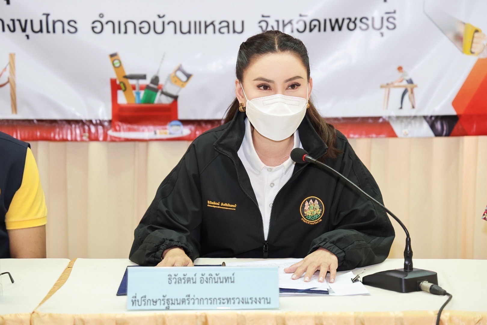 นางธิวัลรัตน์ กล่าวว่า รัฐบาลภายใต้การนำของพลเอก ประยุทธ์ จันทร์โอชา นายกรัฐมนตรีและรัฐมนตรีว่าการกระทรวงกลาโหม กระทรวงแรงงานภายใต้การกำกับดูของ พลเอก ประวิตรวงษ์สุวรรณ รองนายกรัฐมนตรี และท่านสุชาติ ชมกลิ่น รัฐมนตรีว่าการกระทรวงแรงงาน ได้ให้ความสำคัญกับการพัฒนาทักษะฝีมือแรงงาน เพื่อเสริมสร้างความมั่นคงด้านอาชีพ ให้มีงานทำมีรายได้ และยกระดับคุณภาพให้กับประชาชนในชุมชนท้องถิ่น กระทรวงแรงงาน โดยกรมพัฒนาฝีมือแรงงาน สำนักงานพัฒนาฝีมือแรงงานจึงได้บูรณาการความร่วมมือกับเหล่ากาชาดจังหวัดเพชรบุรี กองบัญชาการตำรวจตระเวนชายแดน (ค่ายนเรศวร) องค์การบริหารส่วนจังหวัดเพชรบุรี องค์การบริหารส่วนตำบลบางขุนไทร รวมทั้งผู้นำชุมชนในพื้นที่ จัดโครงการฝึกอบรมหลักสูตรช่างไม้ก่อสร้างให้แก่ประชาชนอาสาสมัครในพื้นที่ จำนวน 3 รุ่นรุ่นละ 20 คน รวมจำนวน 60 คน ระยะเวลาฝึก 30 ชั่วโมง เพื่อพัฒนาความรู้ทักษะด้านช่างไม้ก่อสร้าง สำหรับนำไปช่วยเหลือซ่อมสร้างบ้านให้แก่ผู้ยากไร้ตามเป้าหมาย