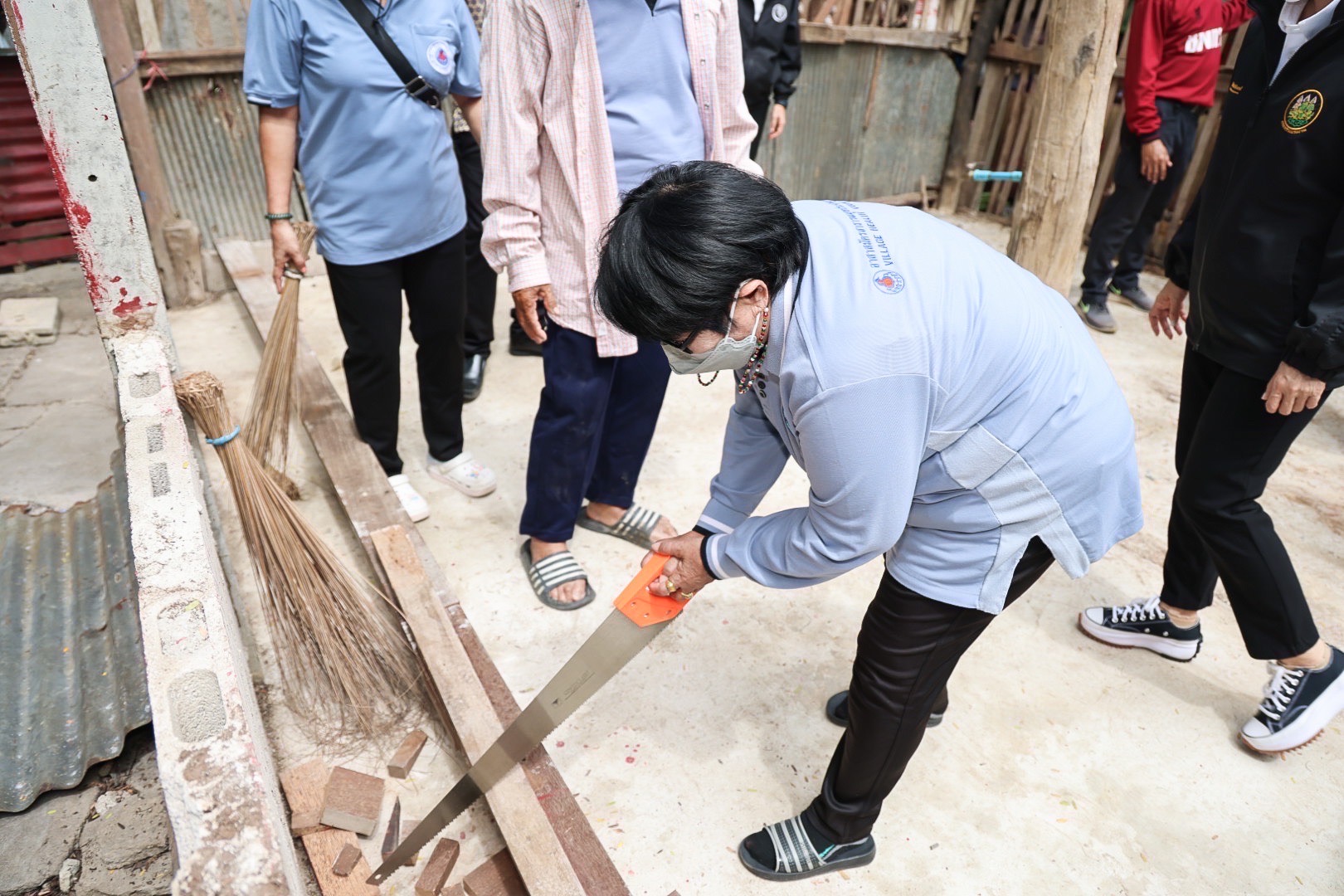 นางธิวัลรัตน์ กล่าวต่อว่า ในวันนี้ท่านรัฐมนตรีสุชาติ ชมกลิ่น ได้มอบหมายให้ดิฉันลงพื้นที่ร่วมกับหน่วยงานที่เกี่ยวข้องเข้ามาช่วยเหลือตามโครงการฝึกอบรมหลักสูตรช่างไม้ก่อสร้างให้แก่ประชาชนอาสาสมัครในพื้นที่ เพื่อสร้างบ้านที่สภาพทรุดโทรมให้แก่ชาวบ้านผู้ยากไร้ในพื้นที่หมู่ที่ 7 และหมู่ที่ 9 ตำบลบางขุนไทร อำเภอบ้านแหลมแห่งนี้ รวมจำนวนทั้งสิ้น 3 ครัวเรือน โดยได้รับการสนับสนุนงบประมาณบางส่วน ภายใต้โครงการช่วยเหลือสร้างและซ่อมบ้านให้ผู้ยากไร้ผู้ด้อยโอกาสผู้พิการและประสบภัยต่างๆ ในปี 2565 จากเหล่ากาชาดจังหวัดเพชรบุรีสำหรับโครงการดังกล่าวจะเป็นการปลูกจิตสำนึกให้คนในชุมชนได้มีความเอื้อเฟื้อเผื่อแผ่ช่วยเหลือเกื้อกูลกันซึ่งกันและกัน นำไปสู่ความรัก ความสามัคคี และความเข้มแข็งของชุมชนนอกจากนี้ ทำให้ผู้ด้อยโอกาส ผู้ยากไร้ กลุ่มเป้าหมายในชุมชนได้รับการช่วยเหลือบรรเทาความเดือดร้อน มีบ้านอยู่อาศัยที่มั่นคง ปลอดภัย มีขวัญและกำลังใจที่ดี มีช่างไม้ก่อสร้างที่เป็นจิตอาสาในพื้นที่ชุมชนอีกด้วย