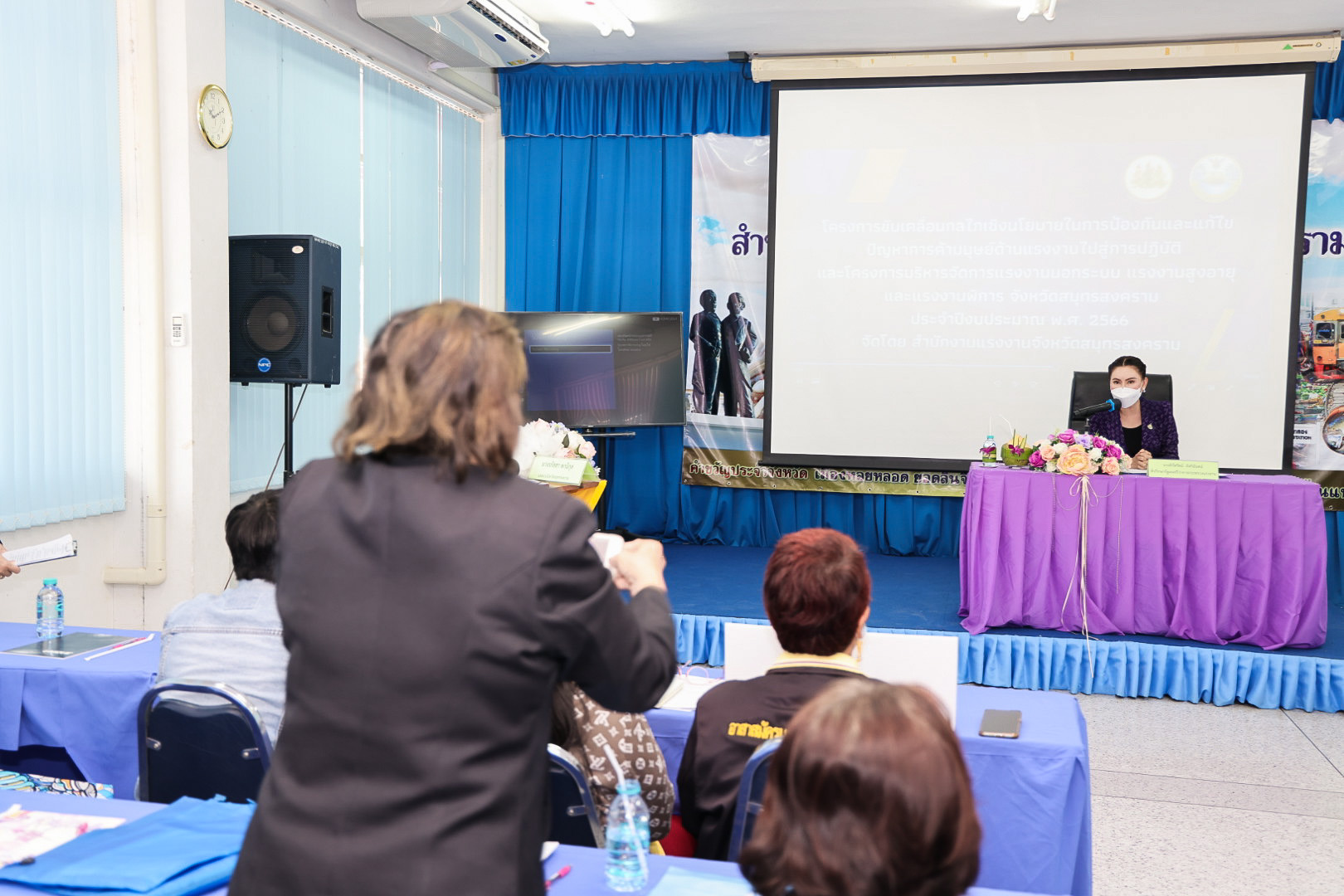 วันที่ 17 มกราคม 2566 นายสุชาติ ชมกลิ่น รัฐมนตรีว่าการกระทรวงแรงงาน มอบหมายให้ นางธิวัลรัตน์ อังกินันทน์ ที่ปรึกษารัฐมนตรีว่าการกระทรวงแรงงาน เป็นประธานในพิธีเปิดการอบรมสร้างการรับรู้การขับเคลื่อนนโยบายสำคัญของกระทรวงแรงงาน ด้านการป้องกันและแก้ไขปัญหาการค้ามนุษย์ด้านแรงงาน ภายใต้โครงการป้องกันและแก้ไขปัญหาการค้ามนุษย์ด้านแรงงาน และการส่งเสริมการยกระดับคุณภาพชีวิตแรงงานนอกระบบ ภายใต้โครงการบริหารจัดการแรงงานนอกระบบ แรงงานสูงอายุ และแรงงานพิการ จังหวัดสมุทรสงครามประจำปีงบประมาณ พ.ศ.2566 โดยมี นางรภัสสา พานิกุล แรงงานจังหวัดสมุทรสงคราม กล่าวรายงานวัตถุประสงค์การจัดงาน หัวหน้าส่วนราชการหน่วยงานในสังกัดกระทรวงแรงงานจังหวัดสมุทรสงคราม และผู้เข้าร่วมการฝึกอบรม ร่วมต้อนรับ ณ ห้องประชุม ชั้น 1 สำนักงานพัฒนาฝีมือแรงงานสมุทรสงคราม