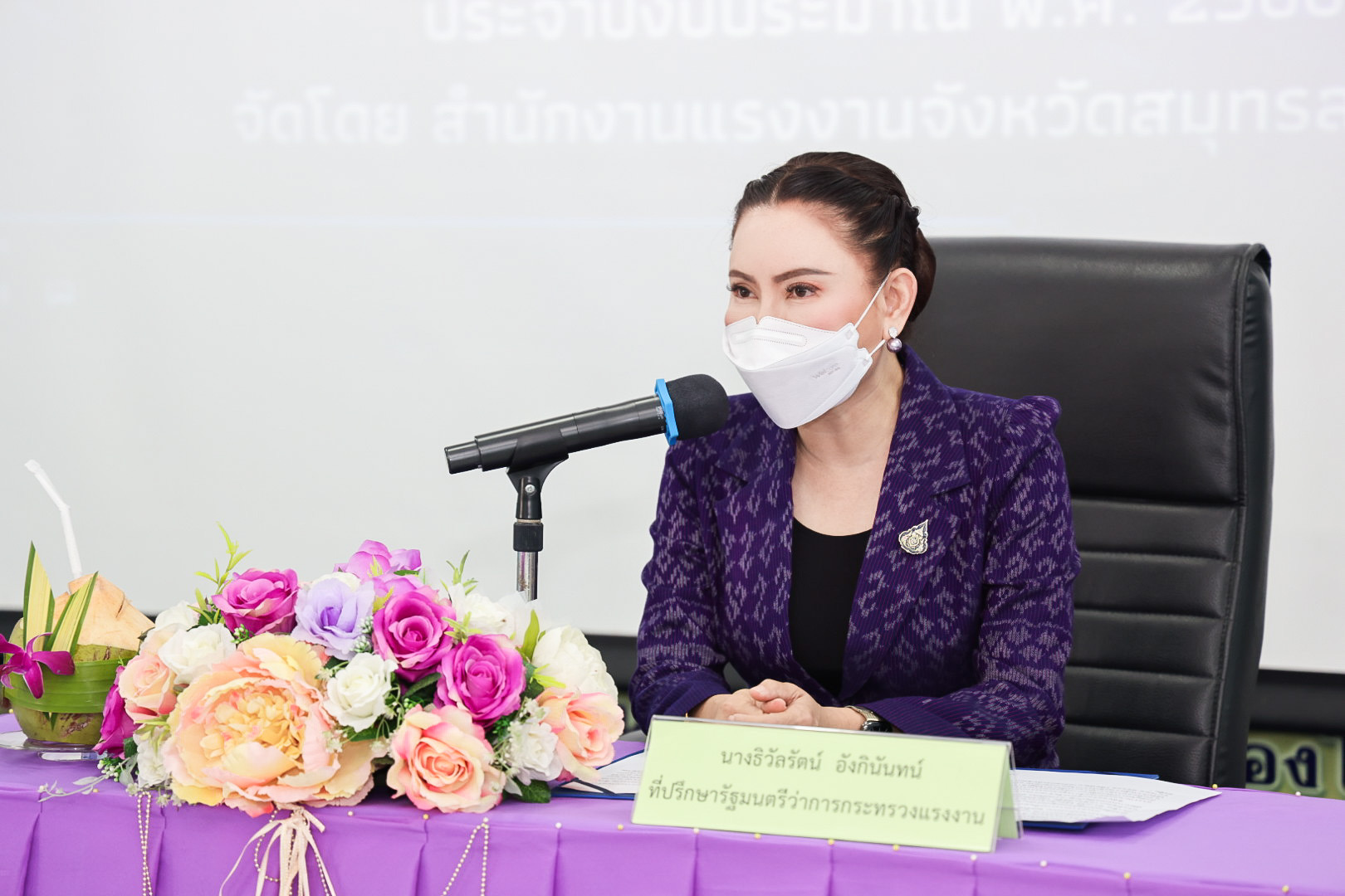 นางธิวัลรัตน์ กล่าวว่า กระทรวงแรงงานเป็นหน่วยงานหลักที่มีภารกิจในการขับเคลื่อนเศรษฐกิจและดูแลกำลังแรงงานของประเทศ ให้มีงานทำ มีอาชีพ มีรายได้ ได้รับสิทธิประโยชน์คุ้มครองตามกฎหมาย และมีคุณภาพชีวิตที่ดีขึ้น เพื่อให้สอดคล้องกับแนวทางการพัฒนาประเทศที่มุ่งไปสู่“ความมั่นคง มั่งคั่ง ยั่งยืน” สำหรับทั้งสองโครงการดังกล่าวสำนักงานแรงงานจังหวัดสมุทรสงครามได้บูรณาการจัดขึ้น เพื่อสร้างกลไกในการขับเคลื่อนการป้องกันและแก้ไขปัญหาการบังคับใช้แรงงานหรือบริการ และการค้ามนุษย์ด้านแรงงาน รวมทั้งเพื่อติดตามผลการดำเนินงานป้องกันและแก้ไขปัญหาการบังคับใช้แรงงานหรือบริการ และการค้ามนุษย์ด้านแรงงานให้บรรลุผลสำเร็จตามนโยบายรัฐบาลอย่างเป็นรูปธรรม ตลอดจนเพื่อบริหารจัดการให้แรงงานนอกระบบ แรงงานสูงอายุ และแรงงานพิการ ได้รับการส่งเสริม คุ้มครอง และพัฒนา มีโอกาสในการประกอบอาชีพ มีงานทำ มีรายได้ และมีคุณภาพชีวิตที่ดี