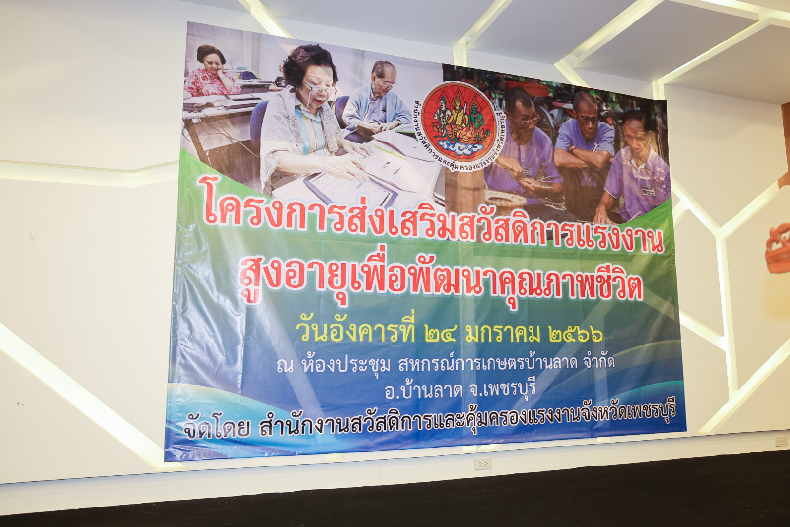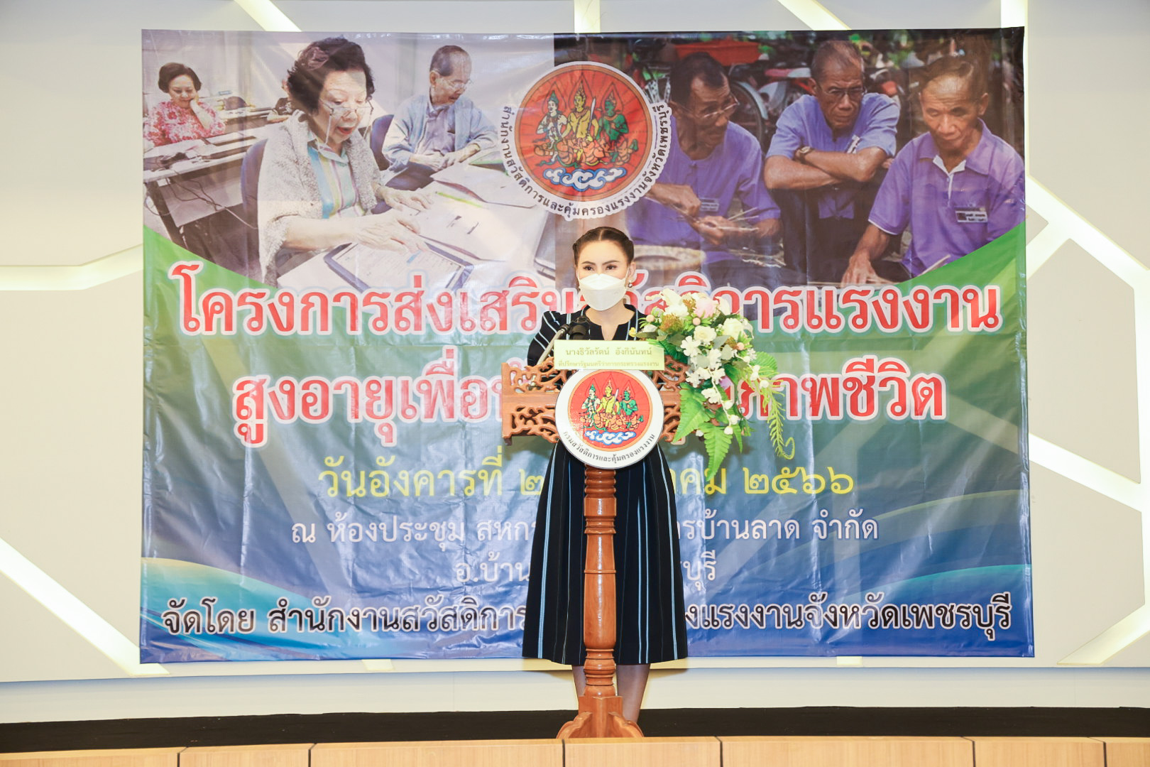 วันที่ 24 มกราคม 2566 นายสุชาติ ชมกลิ่น รัฐมนตรีว่าการกระทรวงแรงงาน มอบหมายให้ นางธิวัลรัตน์ อังกินันทน์ ที่ปรึกษารัฐมนตรีว่าการกระทรวงแรงงาน เป็นประธานในพิธีเปิดการอบรมโครงการส่งเสริมสวัสดิการแรงงานสูงอายุเพื่อพัฒนาคุณภาพชีวิต โดยมี นายกเทศมนตรีตำบลบ้านลาด หัวหน้าส่วนราชการหน่วยงานในสังกัดกระทรวงแรงงานจังหวัดเพชรบุรี และชาวบ้านในพื้นที่ ร่วมต้อนรับ ณ ห้องประชุมสหกรณ์การเกษตรบ้านลาด จำกัด ตำบลบ้านลาด อำเภอบ้านลาด จังหวัดเพชรบุรี
