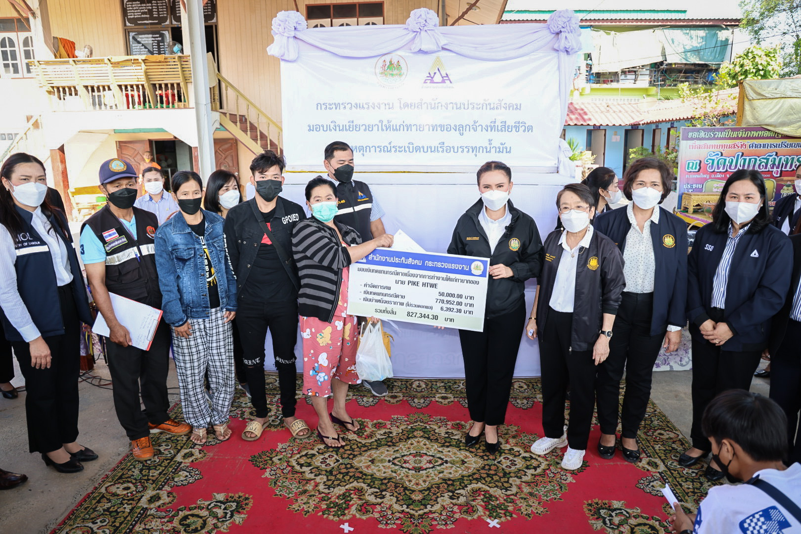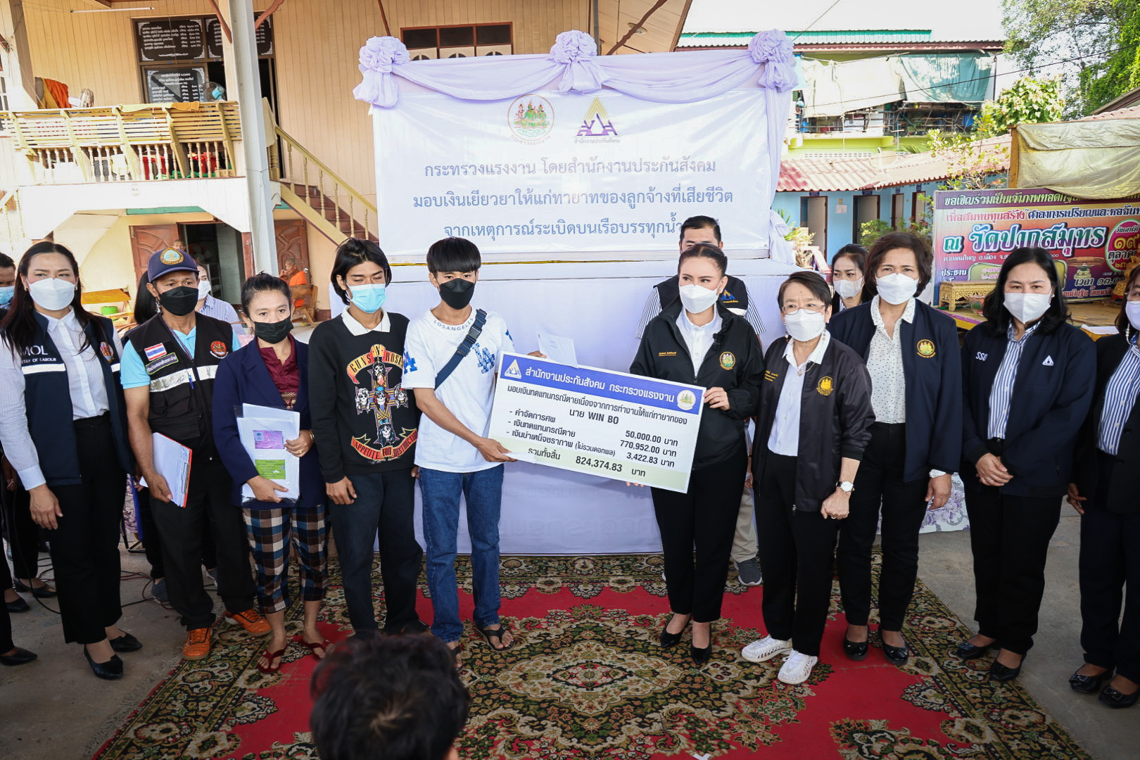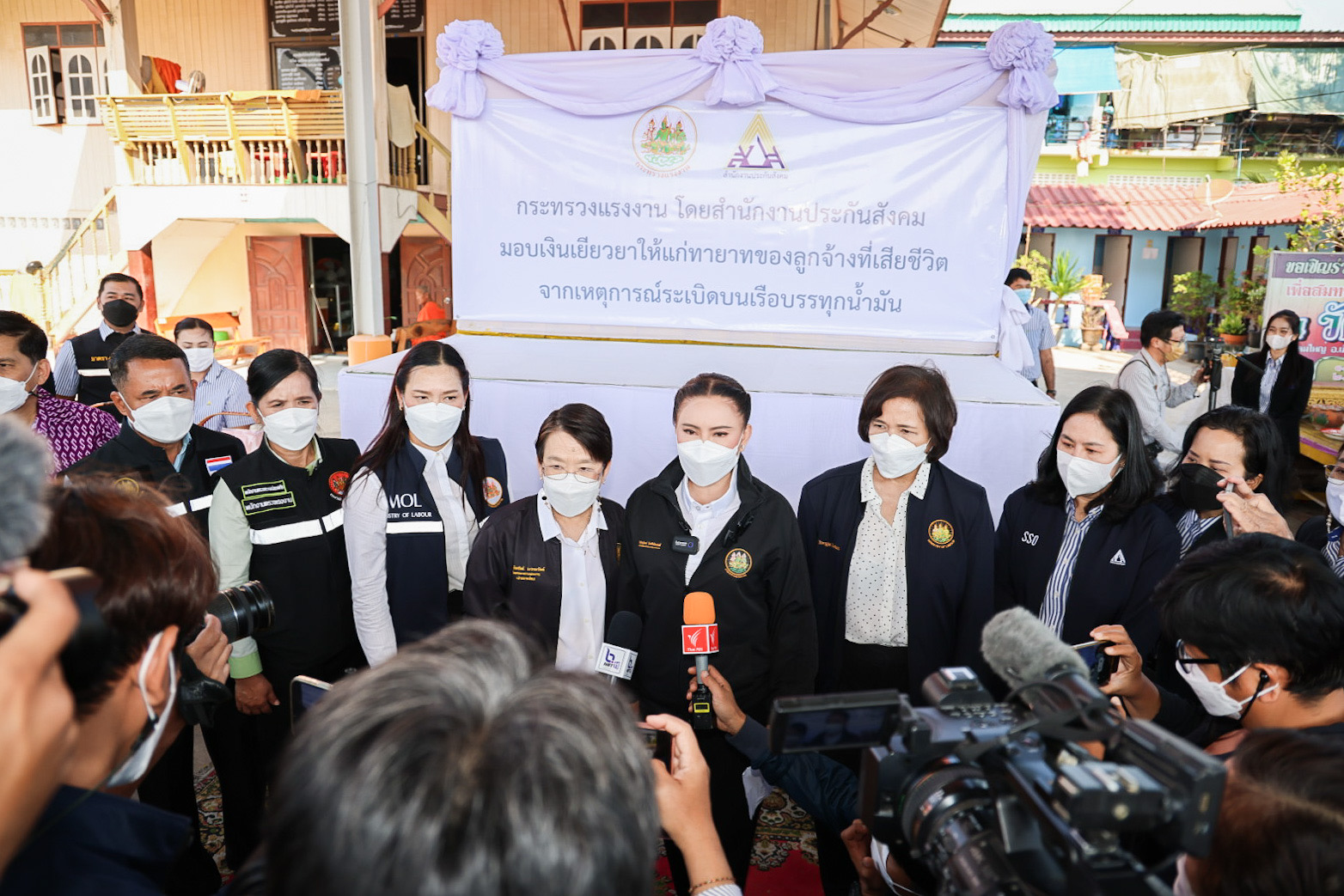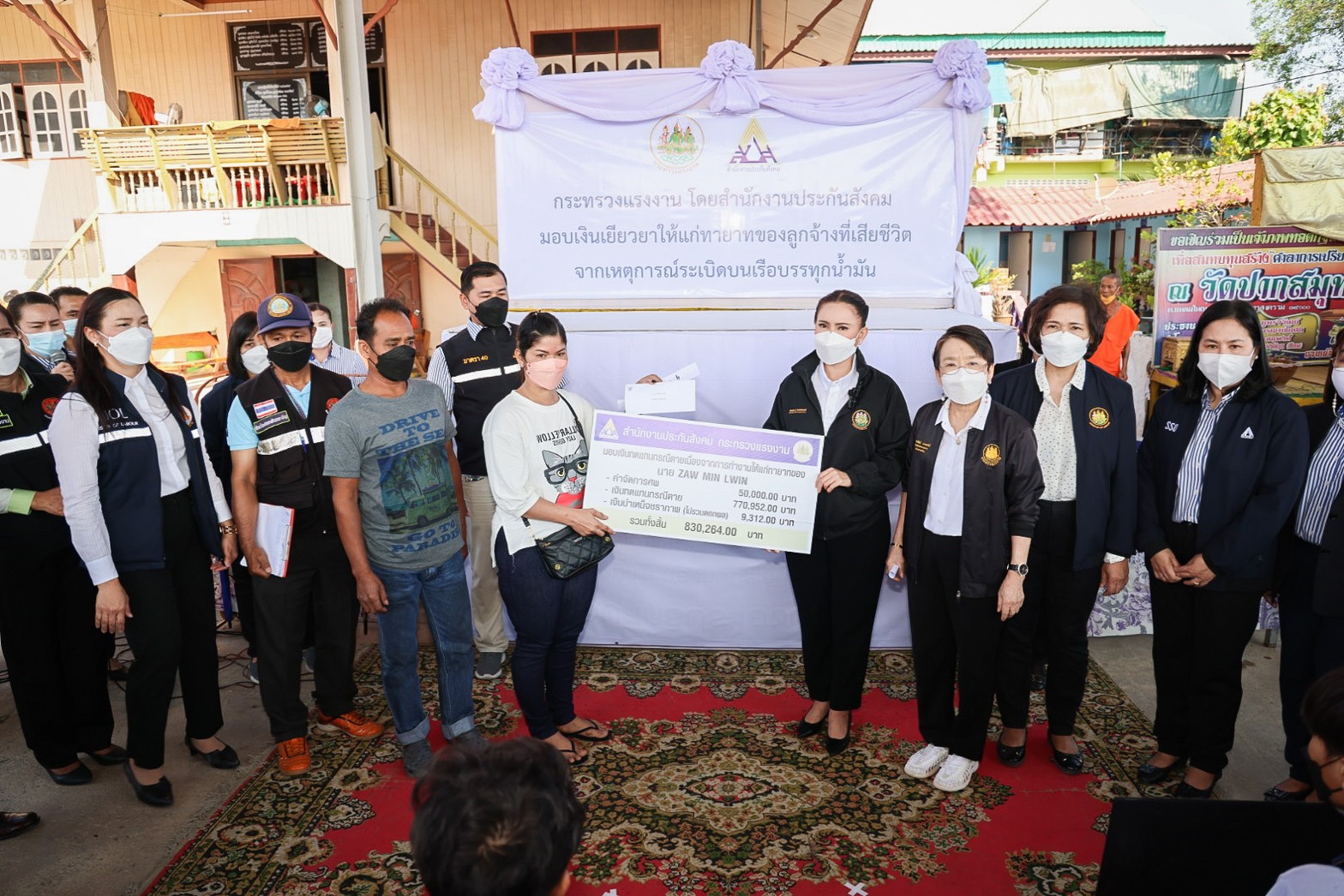 นางธิวัลรัตน์ กล่าวต่อไปว่า ท่านสุชาติ ชมกลิ่น รัฐมนตรีว่าการกระทรวงแรงงาน ฝากแสดงความเสียใจต่อครอบครัวของผู้เสียชีวิต สำหรับผู้ที่ได้รับบาดเจ็บ กระทรวงแรงงาน โดยสำนักงานประกันสังคม จะจ่ายค่ารักษาพยาบาลเท่าที่จ่ายจริง ตามความจำเป็น แต่ไม่เกินตามอัตราที่กำหนดในกฎกระทรวง กรณีลูกจ้างหยุดพักรักษาตัวตามคำสั่งแพทย์ จะได้รับค่าทดแทน 70% ของค่าจ้าง ตั้งแต่วันแรกที่หยุดงานแต่ไม่เกิน 1 ปี กรณีสูญเสียอวัยวะ จะได้รับค่าทดแทนเป็นระยะเวลาไม่เกิน 10 ปี ทั้งนี้ ลูกจ้าง จะได้รับการประเมินเมื่อสิ้นสุดการรักษา อย่างไรก็ดี รัฐบาลมีความห่วงใยแรงงานต่างด้าวทุกคนที่เข้ามาทำงานในประเทศไทยและกำชับให้กระทรวงแรงงาน ให้ความคุ้มครองตามหลักสิทธิมนุษยชน และสิทธิประโยชน์ความคุ้มครองตามกฎหมายประกันสังคมอย่างเท่าเทียมกันเช่นเดียวกับแรงงานไทยทุกด้าน ซึ่งกระทรวงแรงงาน และสำนักงานประกันสังคม พร้อมดูแลลูกจ้าง ผู้ประกันตน รวมถึงทายาทของผู้เสียชีวิตที่ประสบเหตุ ให้ได้รับสิทธิประโยชน์อย่างครบถ้วน และเข้าถึงผู้ที่ได้รับความเดือดร้อน เปรียบเสมือนคนในครอบครัวเดียวกัน และไม่ทิ้งใครไว้ข้างหลังอย่างแน่นอนเช่นกัน