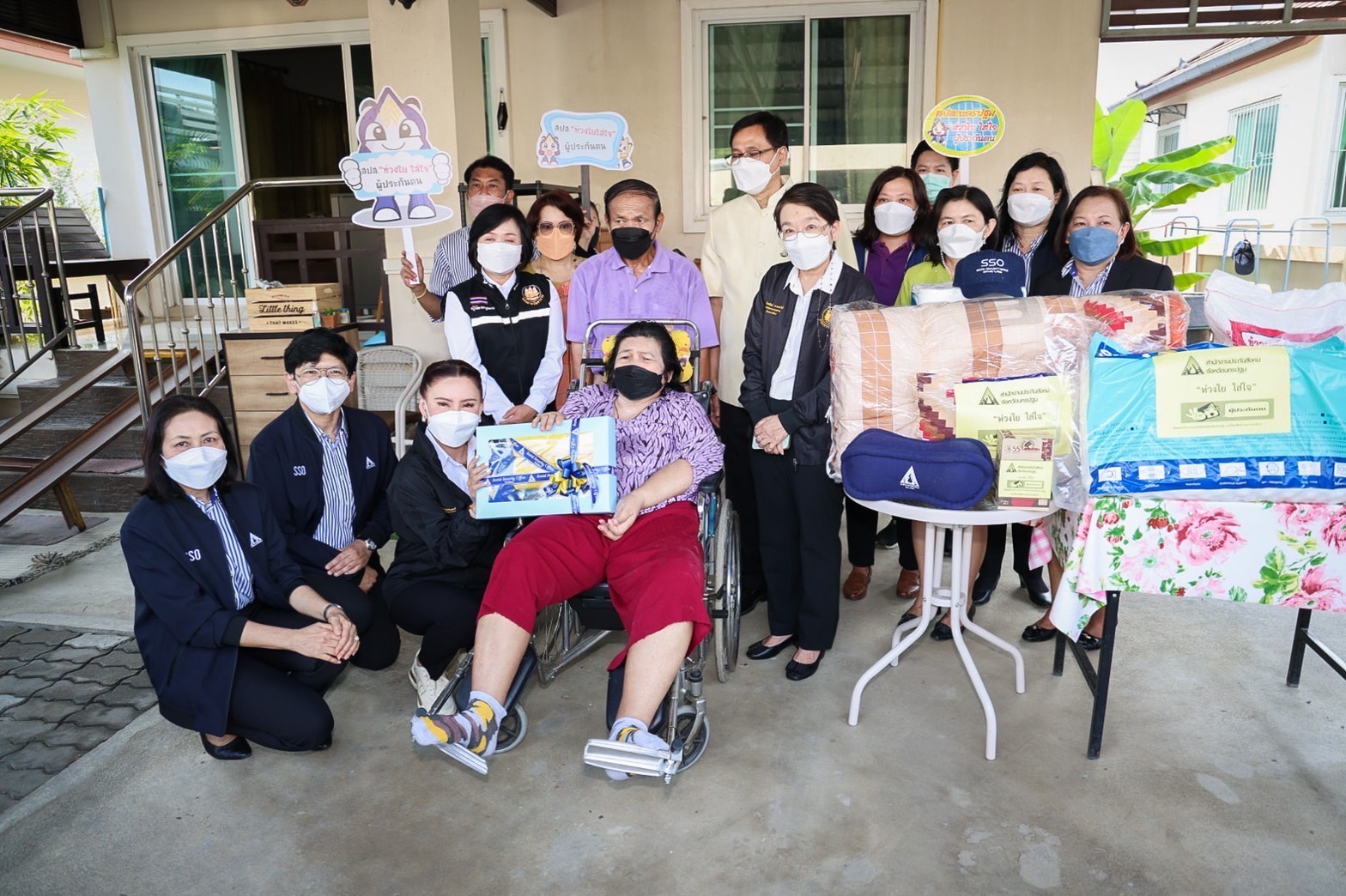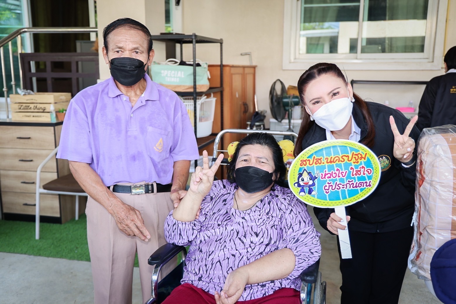 รายแรก นางสาวธนพร จุ้มอังวะ อายุ 44 ปี ซึ่งเป็นผู้ประกันตนมาตรา 33 ที่ทุพพลภาพเลือดออกในสมองซีกขวา ผ่าตัด แขน-ขาซักซ้ายอ่อนแรง เดินได้ในระยะสั้น สามารถช่วยเหลือตนเองได้บ้าง โดยสำนักงานประกันสังคม ภายใต้สังกัดกระทรวงแรงงาน ทั้งนี้ได้ผู้ประกันตนได้รับสิทธิประโยชน์ไปแล้ว จำนวน 257,976.81 บาท แบ่งเป็น เงินทดแทนการขาดรายได้กรณีทุพพลภาพ ค่ารถพยาบาลหรือค่าพาหนะรับส่งผู้ทุพพลภาพ ค่าบริการทางการแพทย์กรณีทุพพลภาพ และรับเงินบำเหน็จชราภาพพร้อมดอกผล นอกจากนี้ยังได้รับสิทธิประโยชน์ทดแทนรายเดือนตลอดชีพ ได้แก่ เงินทดแทนการขาดรายได้กรณีทุพพลภาพ จำนวน 2,400 บาทต่อเดือน พร้อมค่าพาหนะรับส่งผู้ทุพพลภาพ จำนวน 500 บาทต่อเดือน ณ บ้านของผู้ประกันตน ตำบลพระประโทน อำเภอเมือง จังหวัดนครปฐม
