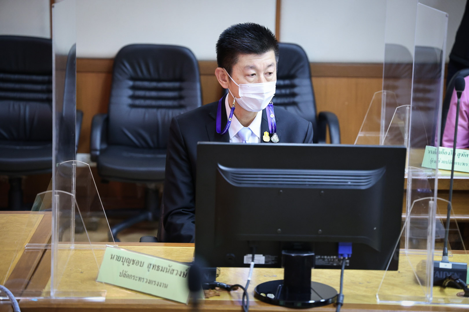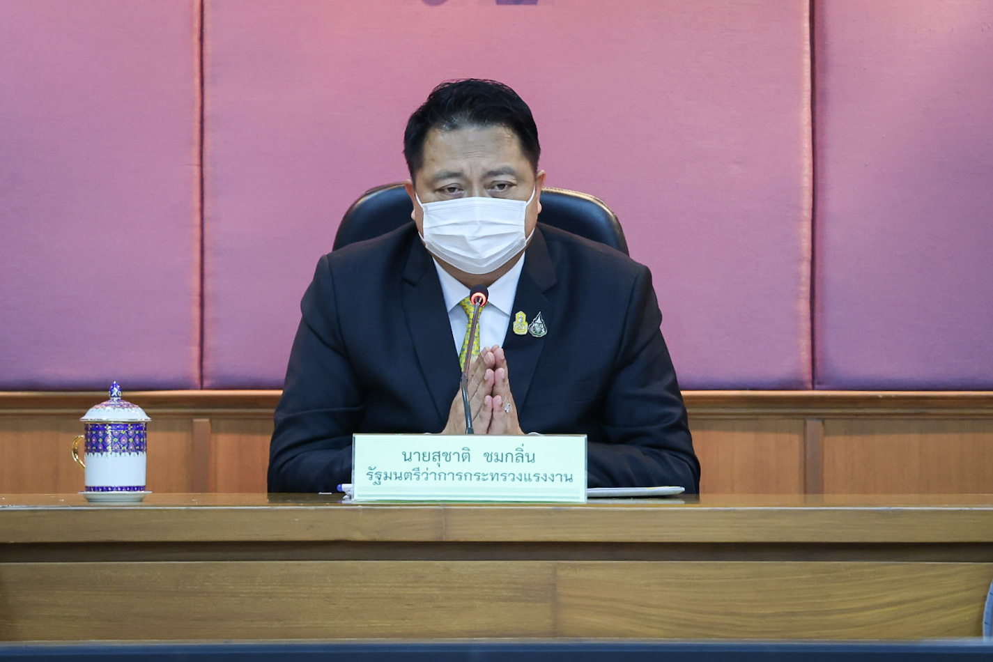 นายสุชาติ ชมกลิ่น รัฐมนตรีว่าการกระทรวงแรงงาน เป็นประธานกล่าวอวยพรเนื่องในโอกาสวาระขึ้นปีใหม่พุทธศักราช 2565 แก่ข้าราชการ และเจ้าหน้าที่ในสังกัดกระทรวงแรงงานผ่านระบบ Video Conference และ ระบบ Zoom ณ ห้องประชุม ชั้น 5 อาคารกระทรวงแรงงาน ไปยังสำนักงานแรงงานในต่างประเทศ และหน่วยงานในสังกัดกระทรวงแรงงานในส่วนภูมิภาคและส่วนกลางทั่วประเทศ โดยมี นายสุรชัย ชัยตระกูลทอง ผู้ช่วยรัฐมนตรีประจำกระทรวงแรงงาน นางธิวัลรัตน์ อังกินันทน์ ที่ปรึกษารัฐมนตรีว่าการกระทรวงแรงงาน นายสุเทพ ชิตยวงษ์เลขานุการรัฐมนตรีว่าการกระทรวงแรงงาน พล.ต.ต.นันทชาติ ศุภมงคล ประจำสำนักเลขาธิการนายกรัฐมนตรี ปฏิบัติหน้าที่ประจำกระทรวงแรงงาน นายสุทธิ สุโกศล ประจำสำนักเลขาธิการนายกรัฐมนตรี ปฏิบัติหน้าที่ประจำกระทรวงแรงงาน นางเธียรรัตน์ นะวะมะวัฒน์ โฆษกกระทรวงแรงงาน (ฝ่ายการเมือง) นายบุญชอบ สุทธมนัสวงษ์ ปลัดกระทรวงแรงงาน พร้อมด้วยผู้บริหารระดับสูงกระทรวงแรงงาน เข้าร่วมในครั้งนี้ด้วย ณ ห้องประชุม ชั้น 5 อาคารกระทรวงแรงงานโดย นายสุชาติ กล่าวว่า ผมขอขอบคุณผู้บริหารระดับสูง ข้าราชการ และเจ้าหน้าที่กระทรวงแรงงานทุกท่าน ในโอกาสปี 2564 ที่กำลังจะผ่านพ้นไป เป็นปีที่ทั่วโลกและประเทศไทยอยู่ในช่วงสถานการณ์การแพร่ระบาดของโรคโควิด-19 ซึ่งผมได้รับความร่วมมือเป็นอย่างดีจากทุกท่านในการทำงานเพื่อช่วยเหลือพี่น้องแรงงานและผู้ประกอบการ ที่ได้รับผลกระทบจากโรคโควิด-19 โดยดำเนินมาตรการด้านระบบสาธารณสุขควบคู่ไปกับการรักษาระบบเศรษฐกิจ ทำให้นานาประเทศมีความเชื่อมั่นในเสถียรภาพของรัฐบาลไทยในการรักษาการจ้างงานเพื่อให้ภาคธุรกิจการค้า การลงทุน เดินหน้าต่อไปได้ โดยเฉพาะภาคธุรกิจส่งออกของประเทศมีการเจริญเติบโตอย่างต่อเนื่อง