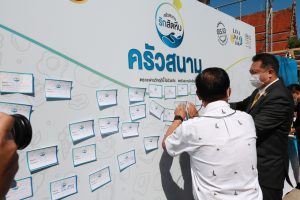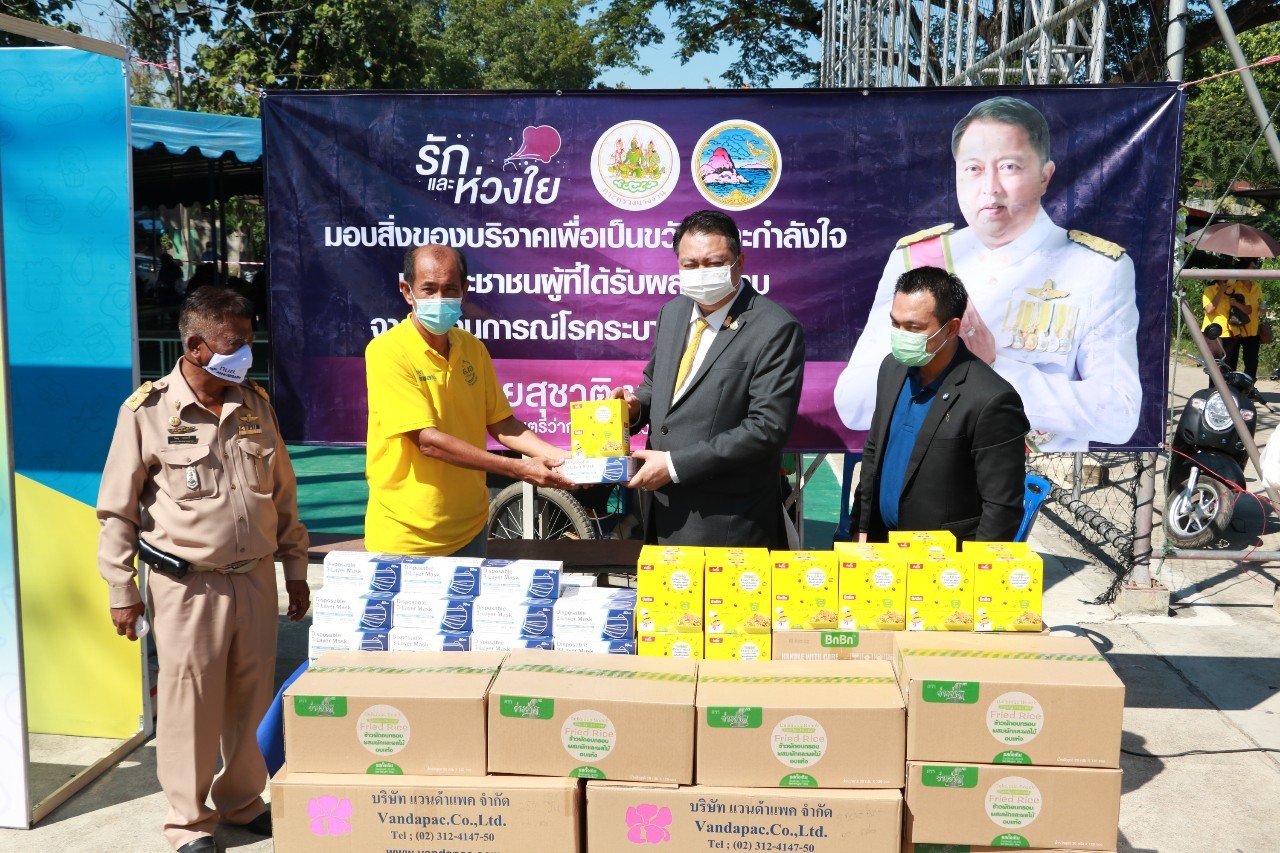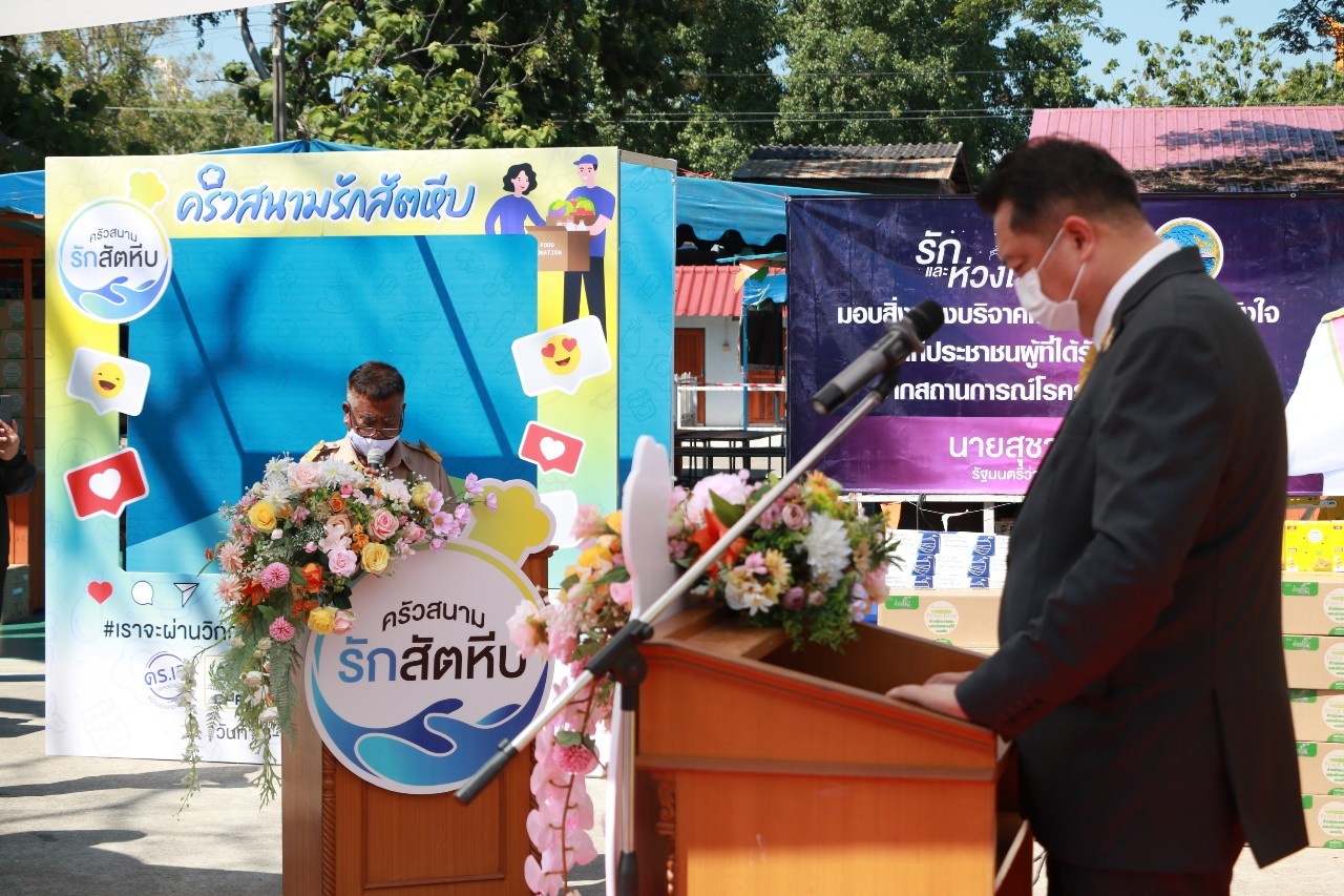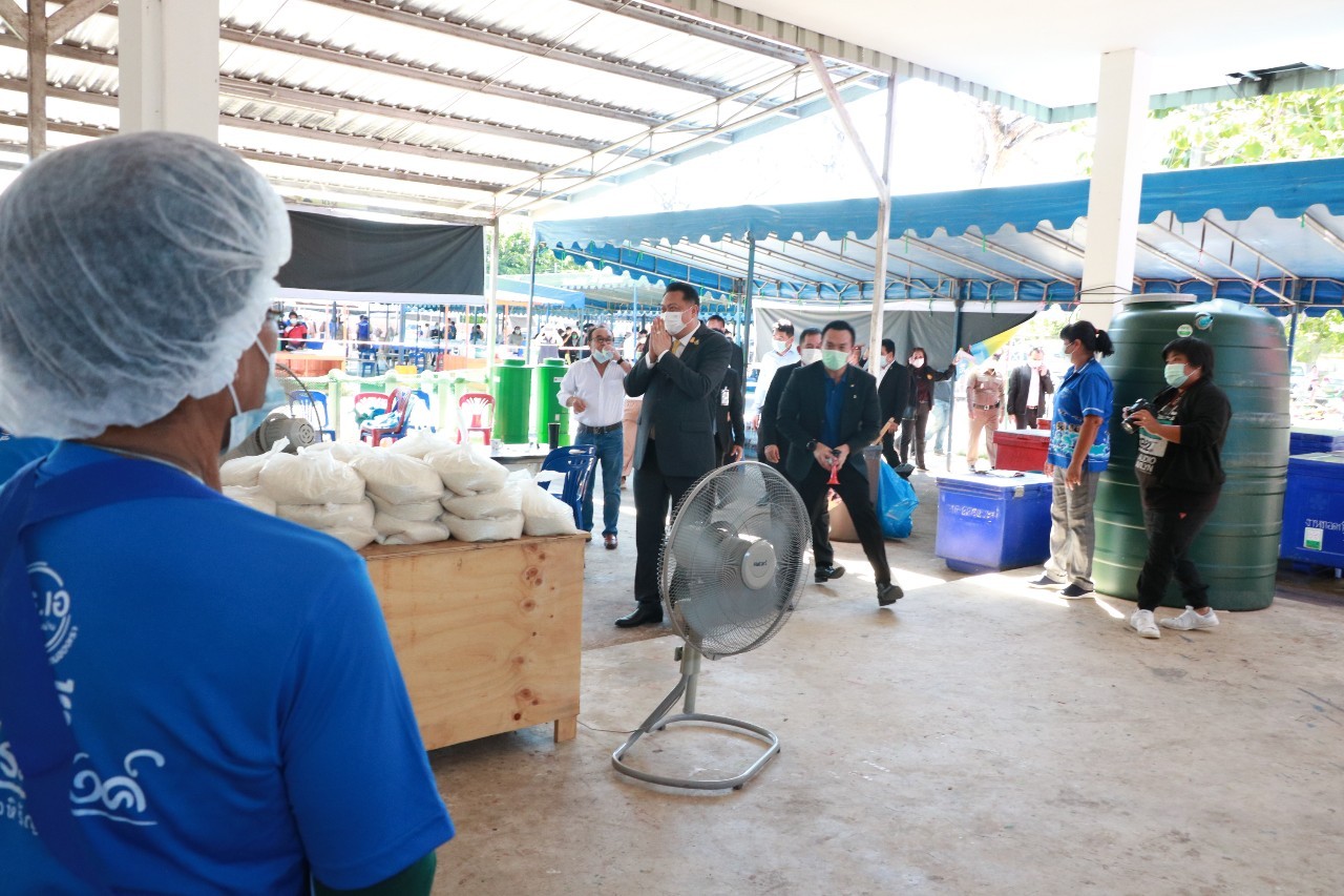นายสุชาติ ชมกลิ่น รัฐมนตรีว่าการกระทรวงแรงงาน ร่วมมือกับหน่วยงานที่เกี่ยวข้องเปิดโรงครัวสนามรักสัตหีบ จ.ชลบุรี แสดงพลังความสามัคคี น้ำใจไมตรีของทุกฝ่ายร่วมกันต่อสู้ เยียวยาช่วยเหลือผู้ที่ได้รับผลกระทบจากการแพร่ระบาดของโรคโควิด-19 สนองนโยบายรัฐบาล คนไทยไม่ทอดทิ้งกัน และจะไม่ทิ้งใครไว้ข้างหลัง