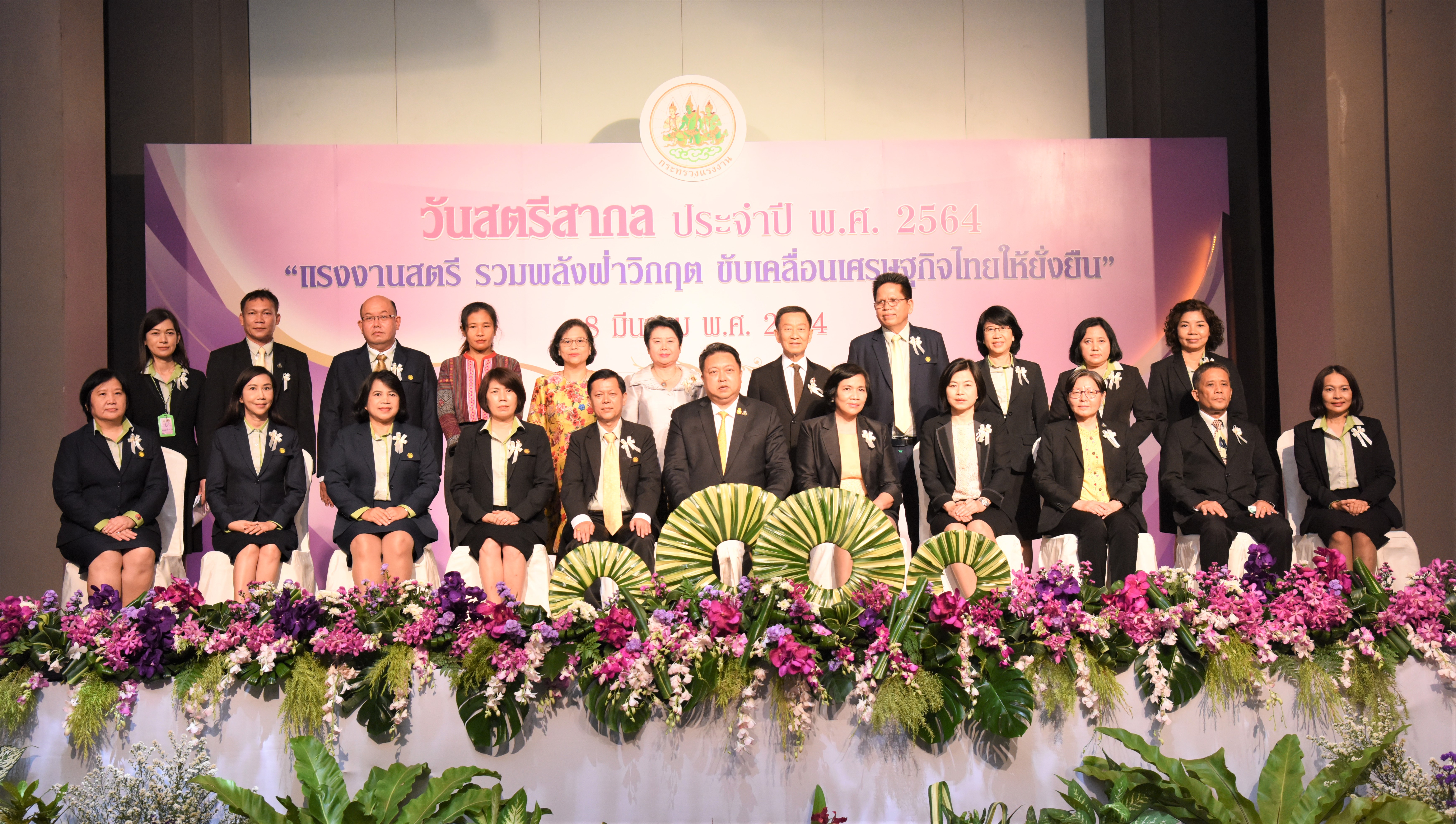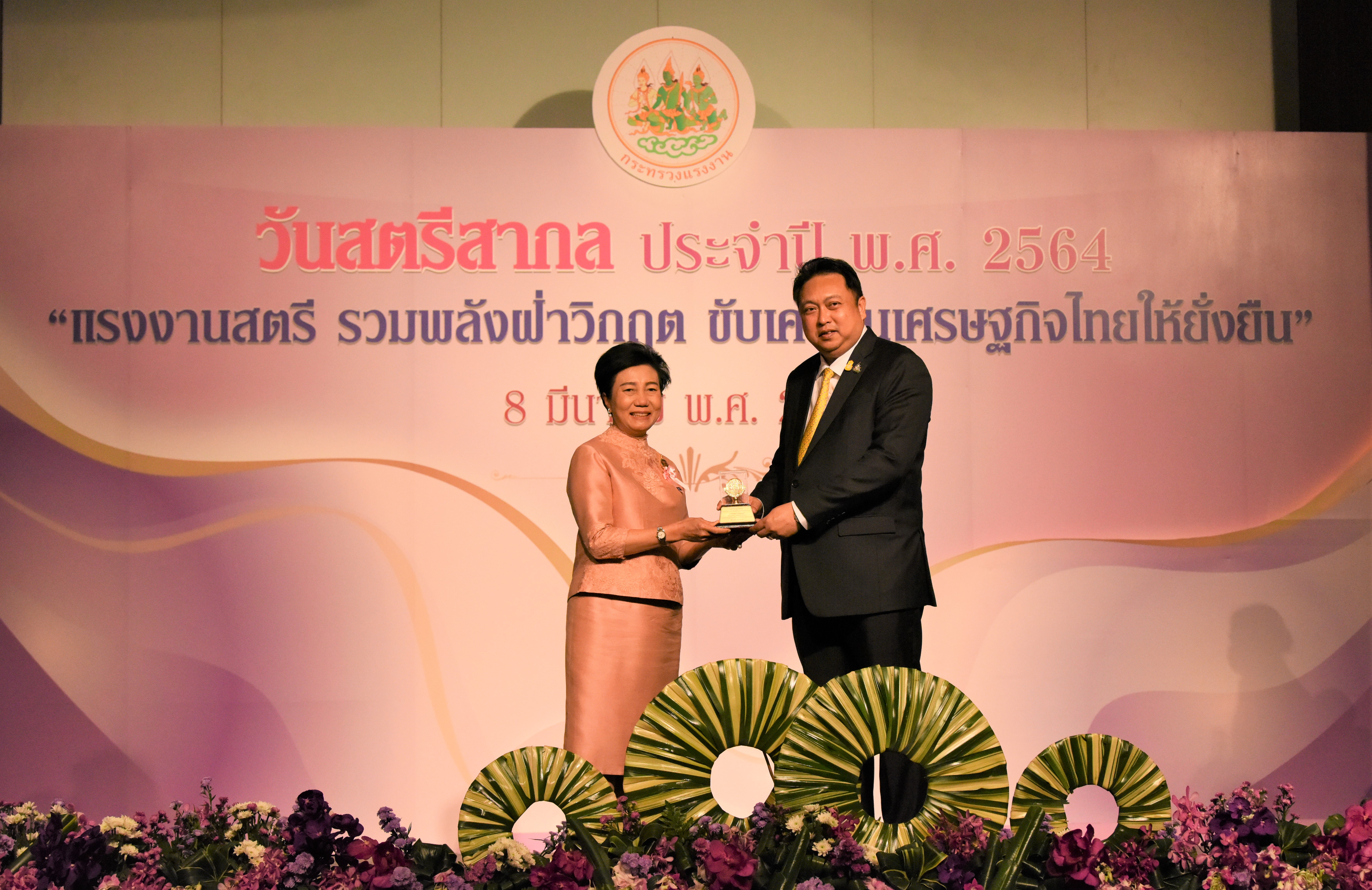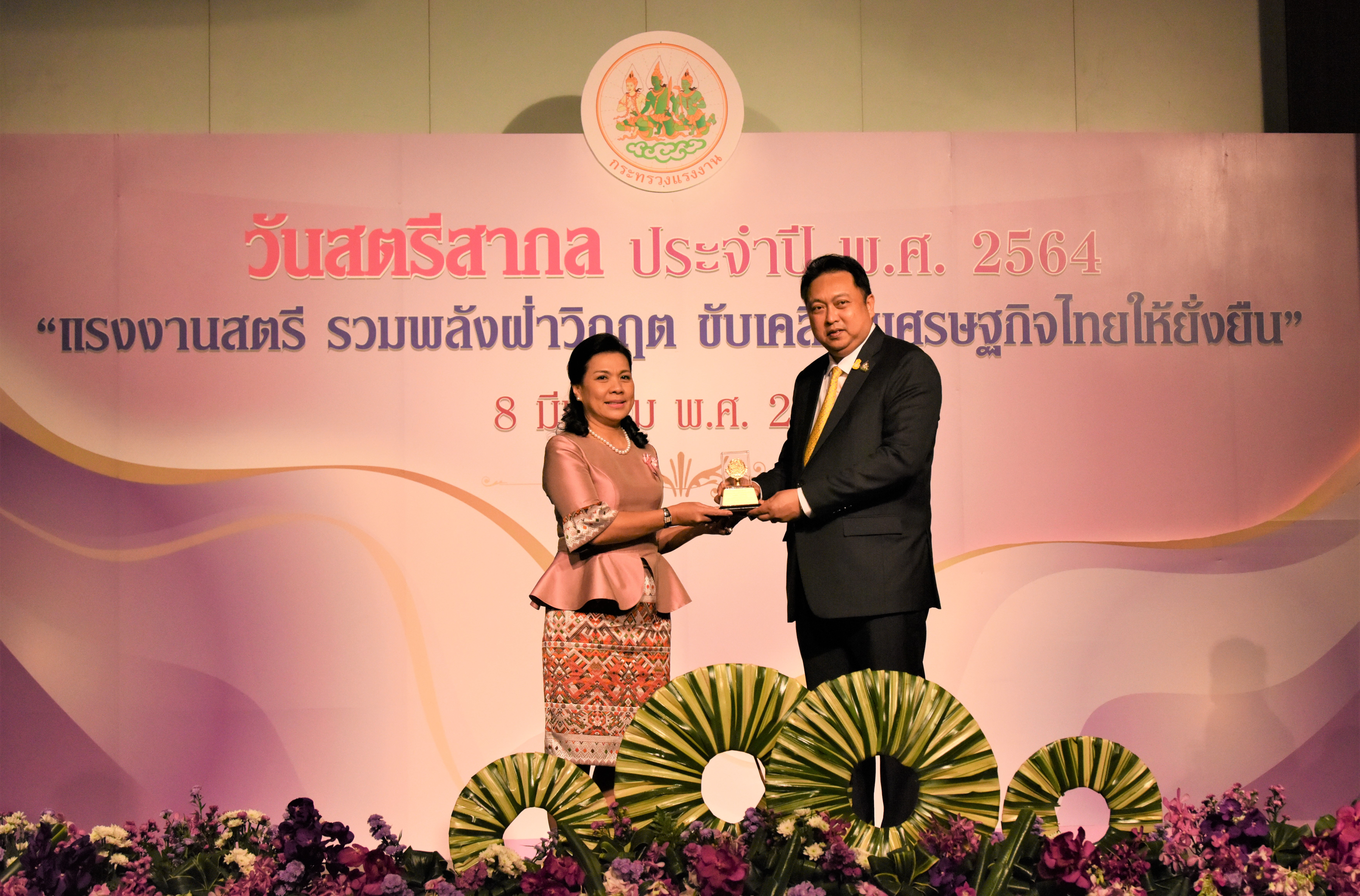 วันที่ 8 มีนาคม 2564 เวลา 13.30 น. นายสุชาติ ชมกลิ่น รัฐมนตรีว่าการกระทรวงแรงงาน เป็นประธานเปิดงานวันสตรีสากล พร้อมมอบโล่รางวัลสตรีทำงานดีเด่น ประจำปี 2564 ภายใต้แนวคิด “แรงงานสตรี รวมพลังฝ่าวิกฤต ขับเคลื่อนเศรษฐกิจไทยให้ยั่งยืน” ณ โรงแรมมิราเคิล แกรนด์ คอนเวนชั่น กรุงเทพมหานคร พร้อมด้วย นายสุรชัย ชัยตระกูลทอง ผู้ช่วยรัฐมนตรีประจำกระทรวงแรงงาน นายสุทธิ สุโกศล ปลัดกระทรวงแรงงาน พร้อมด้วยคณะผู้บริหารระดับสูงสังกัดกระทรวงแรงงาน เข้าร่วมในครั้งนี้ด้วย โดยรัฐมนตรีว่าการกระทรวงแรงงาน กล่าวว่า องค์การสหประชาชาติกำหนดให้วันที่ 8 มีนาคมของทุกปี เป็นวันสตรีสากล และเชิญชวนให้ประเทศสมาชิก จัดกิจกรรมเพื่อร่วมเฉลิมฉลองและรำลึกถึงการต่อสู้ของสตรี เพื่อให้ได้มาซึ่งความยุติธรรม ความเสมอภาค สันติภาพ และการพัฒนา รวมถึงการทบทวนความก้าวหน้าในการดำเนินงานด้านสิทธิสตรี โดยรัฐบาลภายใต้การนำของ พล.อ. ประยุทธ์ จันทร์โอชา นายกรัฐมนตรีและรัฐมนตรีว่าการกระทรวงกลาโหม และภายใต้การกำกับดูแลของ พล.อ.ประวิตร วงษ์สุวรรณ รองนายกรัฐมนตรี ได้ให้ความสำคัญต่อการคุ้มครองและพัฒนาคุณภาพชีวิตแรงงานสตรีมาโดยตลอด ซึ่งจะเห็นได้จากการกำหนดการคุ้มครองสิทธิของแรงงานสตรีไว้เป็นการเฉพาะในพระราชบัญญัติคุ้มครองแรงงาน พ.ศ.2541 และส่งเสริมการจัดสวัสดิการนอกเหนือกฎหมายเพื่อพัฒนาคุณภาพชีวิตแรงงานสตรีมาอย่างต่อเนื่อง รวมถึงสนับสนุนให้สตรีได้รับการปฏิบัติอย่างเป็นธรรมและเท่าเทียม ได้รับสิทธิประโยชน์จากการจ้างงาน มีความสุข และคุณภาพชีวิตที่ดีในการทำงาน โดยในวันสตรีสากลของทุกปี ได้คัดเลือกสตรีที่มีคุณสมบัติเหมาะสม เป็นผู้ที่มุ่งมั่นทำงานจนประสบความสำเร็จในอาชีพ โดยเฉพาะอย่างยิ่งในช่วงที่ประเทศอยู่ในภาวะวิกฤต Covid-19 จึงพิจารณามอบโล่รางวัล “สตรีทำงานดีเด่น” เพื่อยกย่องเชิดชูเกียรติให้เป็นแบบอย่างกับสตรีทำงานคนอื่น ๆ ได้ตระหนักถึงคุณค่าของตน รู้จักพัฒนาความรู้ความสามารถให้เป็นประโยชน์ต่อตนเอง ครอบครัว และสังคม รวมถึงประเทศชาติ โดยในปีนี้มีสตรีเสนอผลงานเข้ารับการพิจารณา จำนวน 261 คน และได้รับการคัดเลือกจำนวนทั้งสิ้น 32 คน จาก 8 ประเภทรางวัล นอกจากนี้ ยังมีกิจกรรมการเสวนาโดยวิทยากรที่เป็นสตรีผู้ที่เคยได้รับโล่รางวัลสตรีทำงานดีเด่นปีที่ผ่านมา การแสดงนิทรรศการสตรีทำงานดีเด่น และการแสดงผลิตภัณฑ์ของสตรีผู้ประกอบอาชีพอิสระดีเด่น อีกด้วย