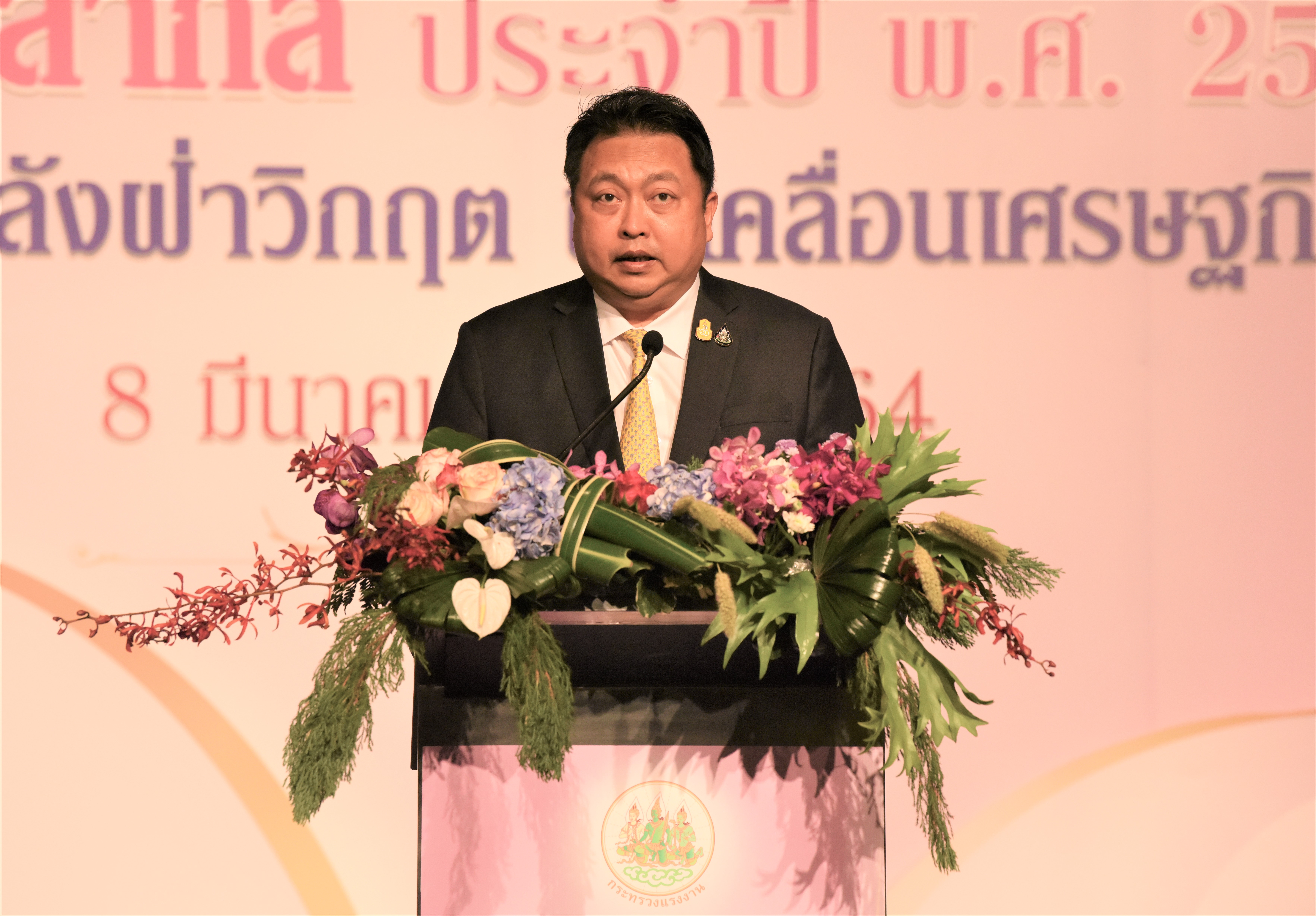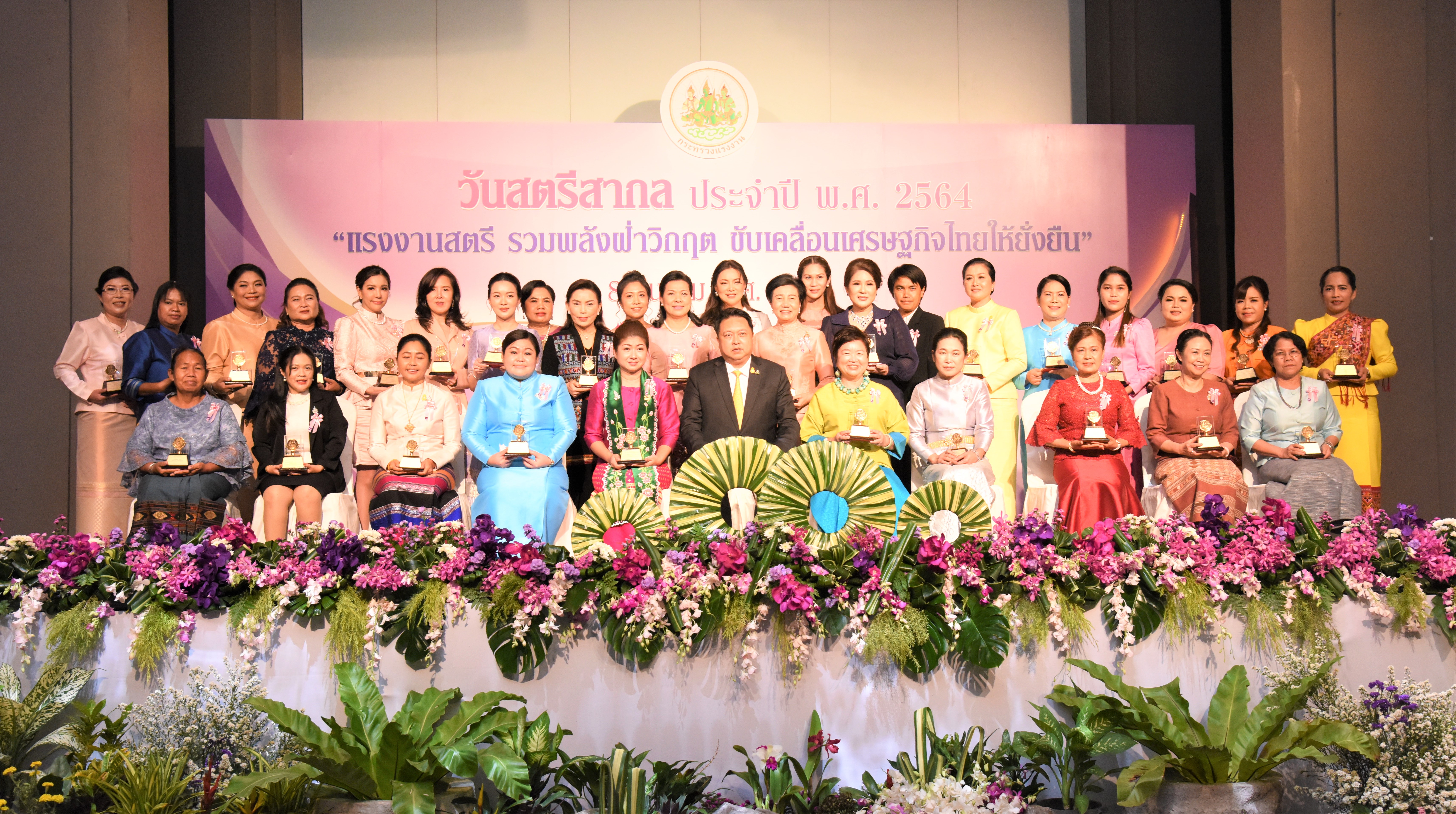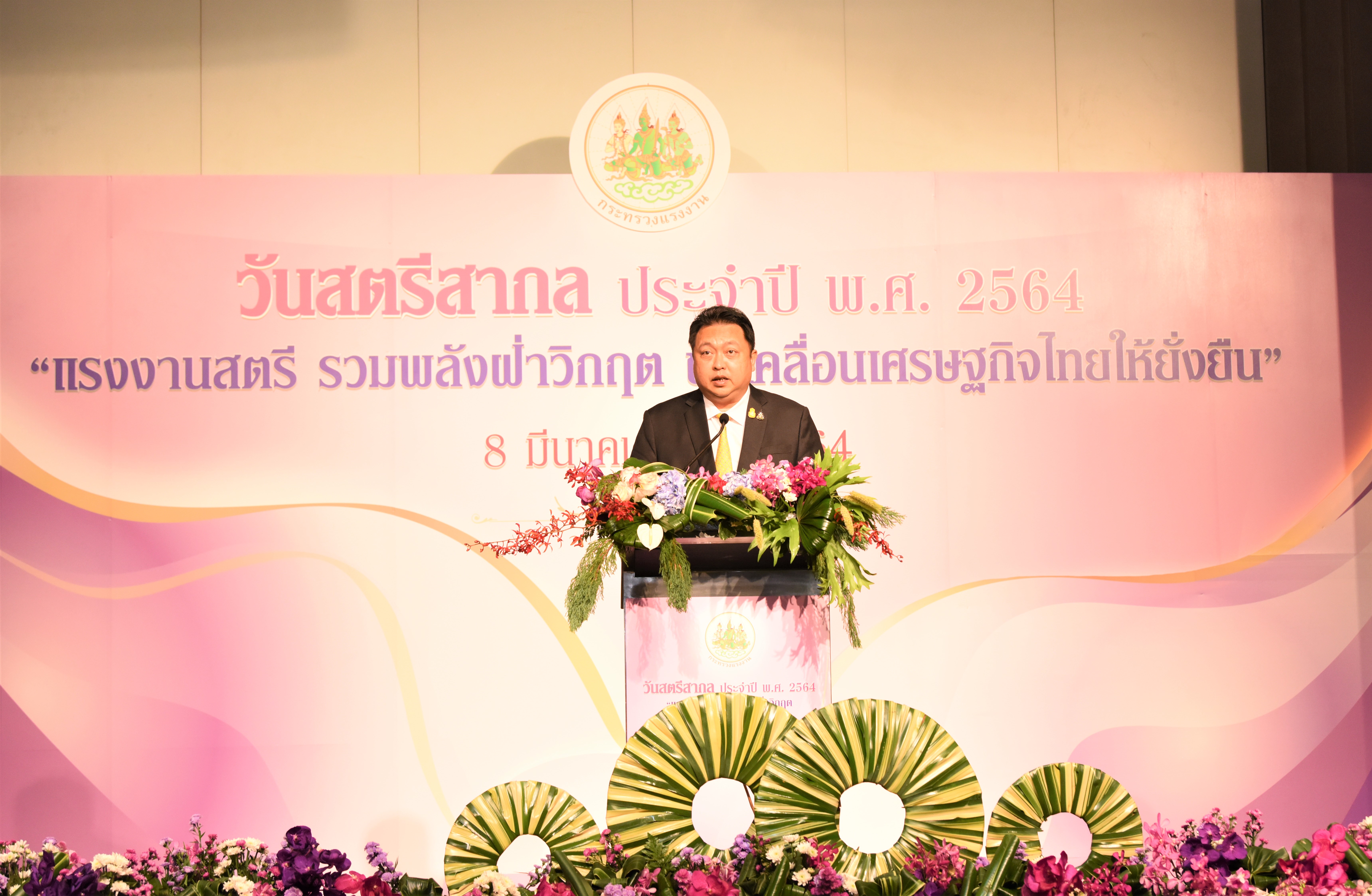 วันที่ 8 มีนาคม 2564 เวลา 13.30 น. นายสุชาติ ชมกลิ่น รัฐมนตรีว่าการกระทรวงแรงงาน เป็นประธานเปิดงานวันสตรีสากล พร้อมมอบโล่รางวัลสตรีทำงานดีเด่น ประจำปี 2564 ภายใต้แนวคิด “แรงงานสตรี รวมพลังฝ่าวิกฤต ขับเคลื่อนเศรษฐกิจไทยให้ยั่งยืน” ณ โรงแรมมิราเคิล แกรนด์ คอนเวนชั่น กรุงเทพมหานคร พร้อมด้วย นายสุรชัย ชัยตระกูลทอง ผู้ช่วยรัฐมนตรีประจำกระทรวงแรงงาน นายสุทธิ สุโกศล ปลัดกระทรวงแรงงาน พร้อมด้วยคณะผู้บริหารระดับสูงสังกัดกระทรวงแรงงาน เข้าร่วมในครั้งนี้ด้วย โดยรัฐมนตรีว่าการกระทรวงแรงงาน กล่าวว่า องค์การสหประชาชาติกำหนดให้วันที่ 8 มีนาคมของทุกปี เป็นวันสตรีสากล และเชิญชวนให้ประเทศสมาชิก จัดกิจกรรมเพื่อร่วมเฉลิมฉลองและรำลึกถึงการต่อสู้ของสตรี เพื่อให้ได้มาซึ่งความยุติธรรม ความเสมอภาค สันติภาพ และการพัฒนา รวมถึงการทบทวนความก้าวหน้าในการดำเนินงานด้านสิทธิสตรี โดยรัฐบาลภายใต้การนำของ พล.อ. ประยุทธ์ จันทร์โอชา นายกรัฐมนตรีและรัฐมนตรีว่าการกระทรวงกลาโหม และภายใต้การกำกับดูแลของ พล.อ.ประวิตร วงษ์สุวรรณ รองนายกรัฐมนตรี ได้ให้ความสำคัญต่อการคุ้มครองและพัฒนาคุณภาพชีวิตแรงงานสตรีมาโดยตลอด ซึ่งจะเห็นได้จากการกำหนดการคุ้มครองสิทธิของแรงงานสตรีไว้เป็นการเฉพาะในพระราชบัญญัติคุ้มครองแรงงาน พ.ศ.2541 และส่งเสริมการจัดสวัสดิการนอกเหนือกฎหมายเพื่อพัฒนาคุณภาพชีวิตแรงงานสตรีมาอย่างต่อเนื่อง รวมถึงสนับสนุนให้สตรีได้รับการปฏิบัติอย่างเป็นธรรมและเท่าเทียม ได้รับสิทธิประโยชน์จากการจ้างงาน มีความสุข และคุณภาพชีวิตที่ดีในการทำงาน โดยในวันสตรีสากลของทุกปี ได้คัดเลือกสตรีที่มีคุณสมบัติเหมาะสม เป็นผู้ที่มุ่งมั่นทำงานจนประสบความสำเร็จในอาชีพ โดยเฉพาะอย่างยิ่งในช่วงที่ประเทศอยู่ในภาวะวิกฤต Covid-19 จึงพิจารณามอบโล่รางวัล “สตรีทำงานดีเด่น” เพื่อยกย่องเชิดชูเกียรติให้เป็นแบบอย่างกับสตรีทำงานคนอื่น ๆ ได้ตระหนักถึงคุณค่าของตน รู้จักพัฒนาความรู้ความสามารถให้เป็นประโยชน์ต่อตนเอง ครอบครัว และสังคม รวมถึงประเทศชาติ โดยในปีนี้มีสตรีเสนอผลงานเข้ารับการพิจารณา จำนวน 261 คน และได้รับการคัดเลือกจำนวนทั้งสิ้น 32 คน จาก 8 ประเภทรางวัล นอกจากนี้ ยังมีกิจกรรมการเสวนาโดยวิทยากรที่เป็นสตรีผู้ที่เคยได้รับโล่รางวัลสตรีทำงานดีเด่นปีที่ผ่านมา การแสดงนิทรรศการสตรีทำงานดีเด่น และการแสดงผลิตภัณฑ์ของสตรีผู้ประกอบอาชีพอิสระดีเด่น อีกด้วย