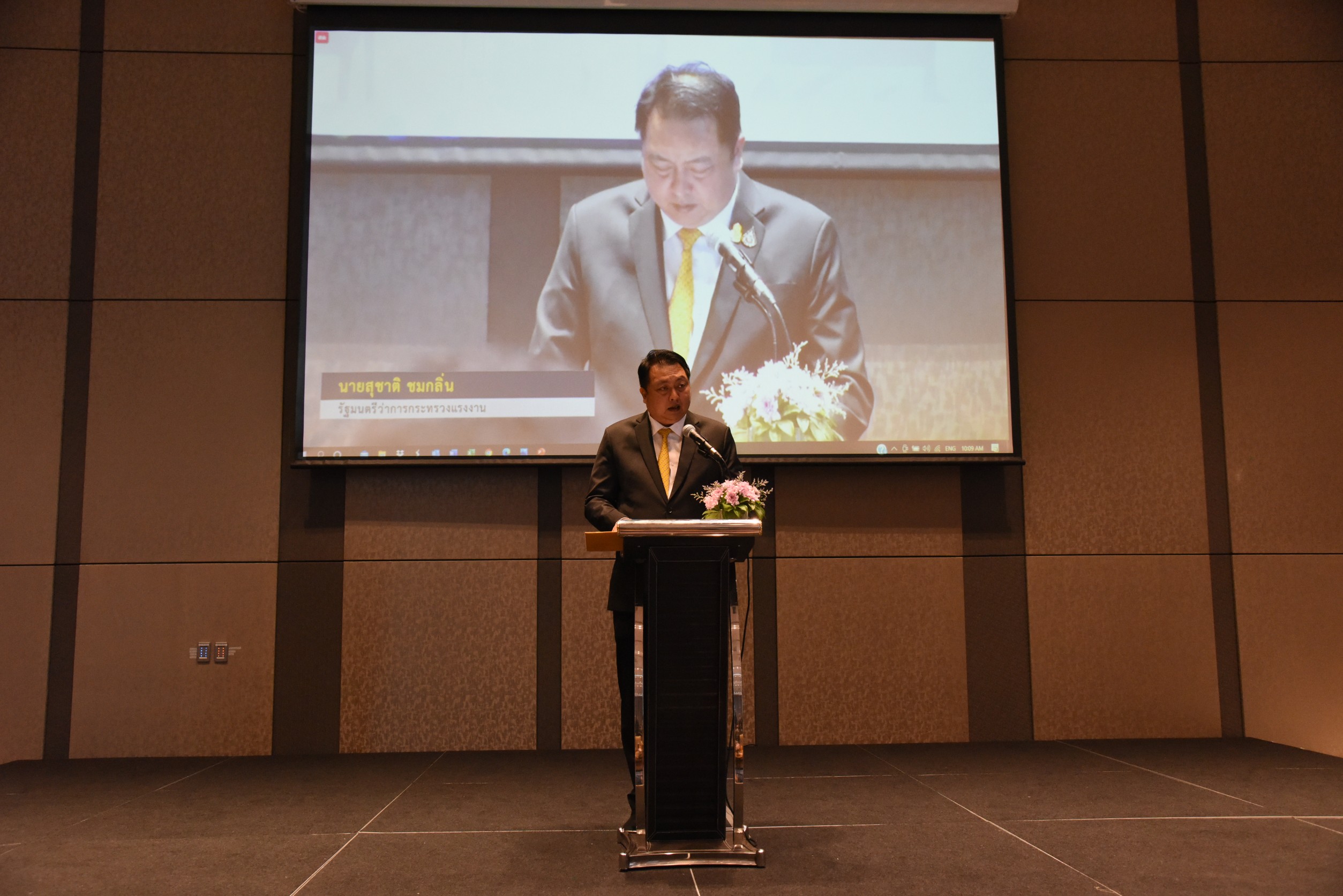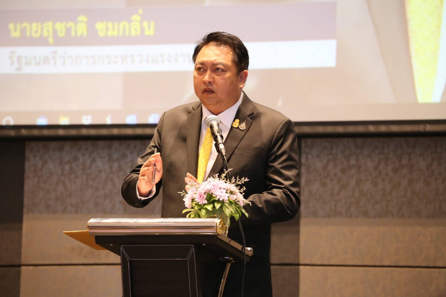 นายสุชาติ ชมกลิ่น รัฐมนตรีว่าการกระทรวงแรงงาน เปิดกิจกรรมเวทีถอดบทเรียนการดำเนินงานการยกระดับคุณภาพชีวิตแรงงานในสถานประกอบการ พร้อมปาฐกถาพิเศษ “บทบาทและความร่วมมือภาครัฐกับการยกระดับคุณภาพชีวิตในมิติการลดปัจจัยเสี่ยงต่อสุขภาพ มีความปลอดภัยในการทำงาน ลดช่องว่าง ความเหลื่อมล้ำในการเข้าถึงบริการทางสุขภาพและความเหลื่อมล้ำทางสังคม”