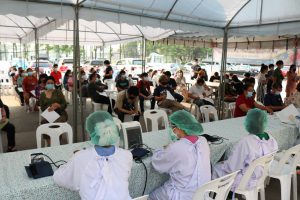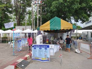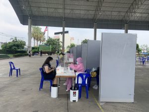 อย่างไรก็ตาม สำหรับบรรยากาศที่อาคารกีฬาเวสน์ 1 ศูนย์เยาวชนกรุงเทพมหานคร (ไทย- ญี่ปุ่น ) เขตดินแดง ซึ่งได้เปิดให้ผู้ประกันตนในพื้นที่กรุงเทพมหานครมาตรวจโควิด-19 มาตั้งแต่วันที่ 17 เมษายนที่ผ่านมา ปัจจุบันยังคงเปิดให้บริการตามปกติทุกวันไม่มีวันหยุดตั้งแต่เวลา 08.00 -16.00 น. ผู้ที่ต้องการตรวจจะต้องลงทะเบียนจองคิวตรวจก่อนผ่านระบบออนไลน์ได้ที่เว็บไซต์ https://sso.icntracking.com/icntracking/self_register.php ซึ่งขณะนี้ในแต่ละวันยังมีผู้ประกันตนที่ทราบข่าวต่างลงทะเบียนจองคิวเข้ารับการตรวจกันอย่างหนาแน่น เนื่องจากภาพรวมทั่วประเทศยังพบผู้ติดเชื้อพุ่งสูงขึ้น โดยที่ศูนย์แห่งนี้จะให้บริการไปเรื่อยๆ จนกว่าสถานการณ์การแพร่ระบาดของโควิด-19 จะคลี่คลายลง