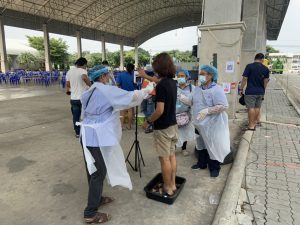 นายสุชาติ ชมกลิ่น รัฐมนตรีว่าการกระทรวงแรงงาน เผย บรรยากาศการตรวจโควิด-19 เชิงรุก เพื่อผู้ประกันตน ตามโครงการแรงงาน…เราสู้ด้วยกัน ในจังหวัดพื้นที่สีแดง 3 จังหวัด คือ ปทุมธานี ชลบุรี และเชียงใหม่ ในวันแรกราบรื่นดี ทุกขั้นตอนเป็นไปตามมาตรการที่ สธ.กำหนด หากผู้ประกันตนรายใดที่ตรวจพบเชื้อจะถูกส่งเข้ารับการรักษาทันที ซึ่งมีทีมแพทย์ดูแลตามขั้นตอนของกระทรวงสาธารณสุขเป็นอย่างดี