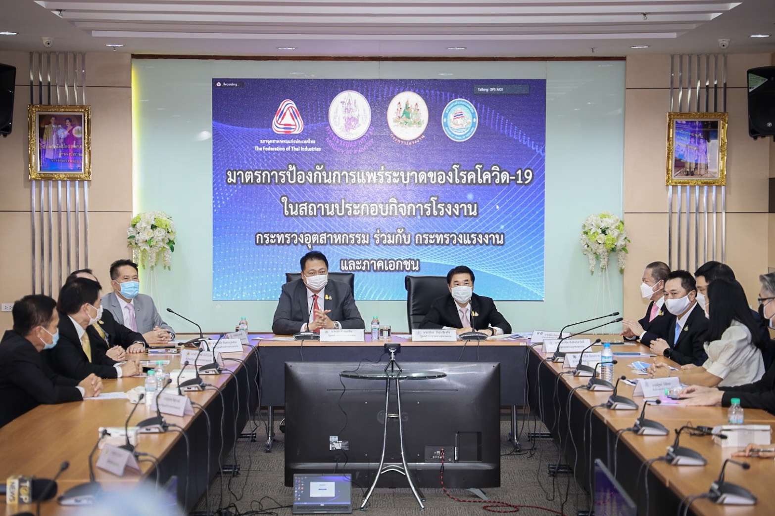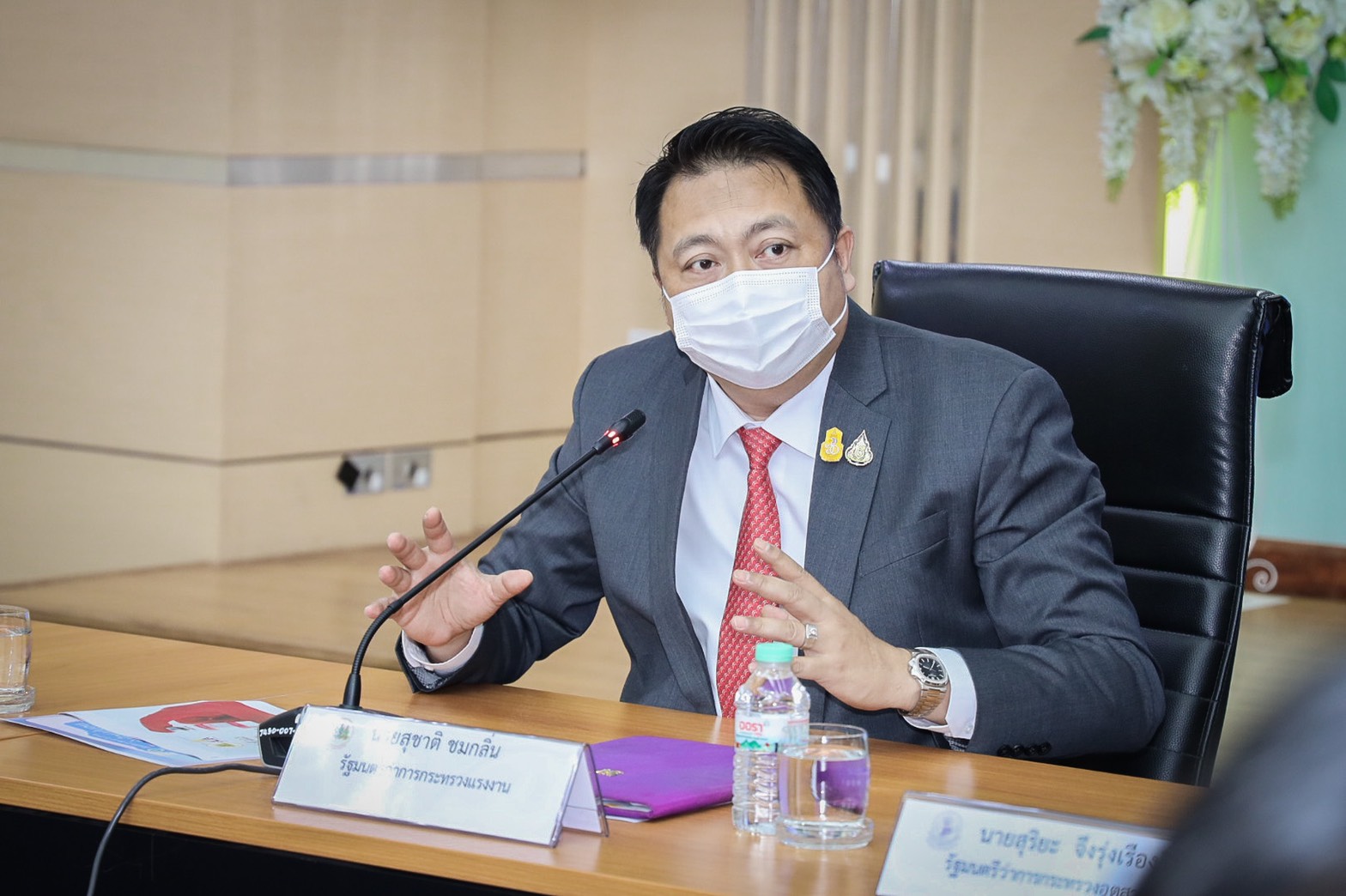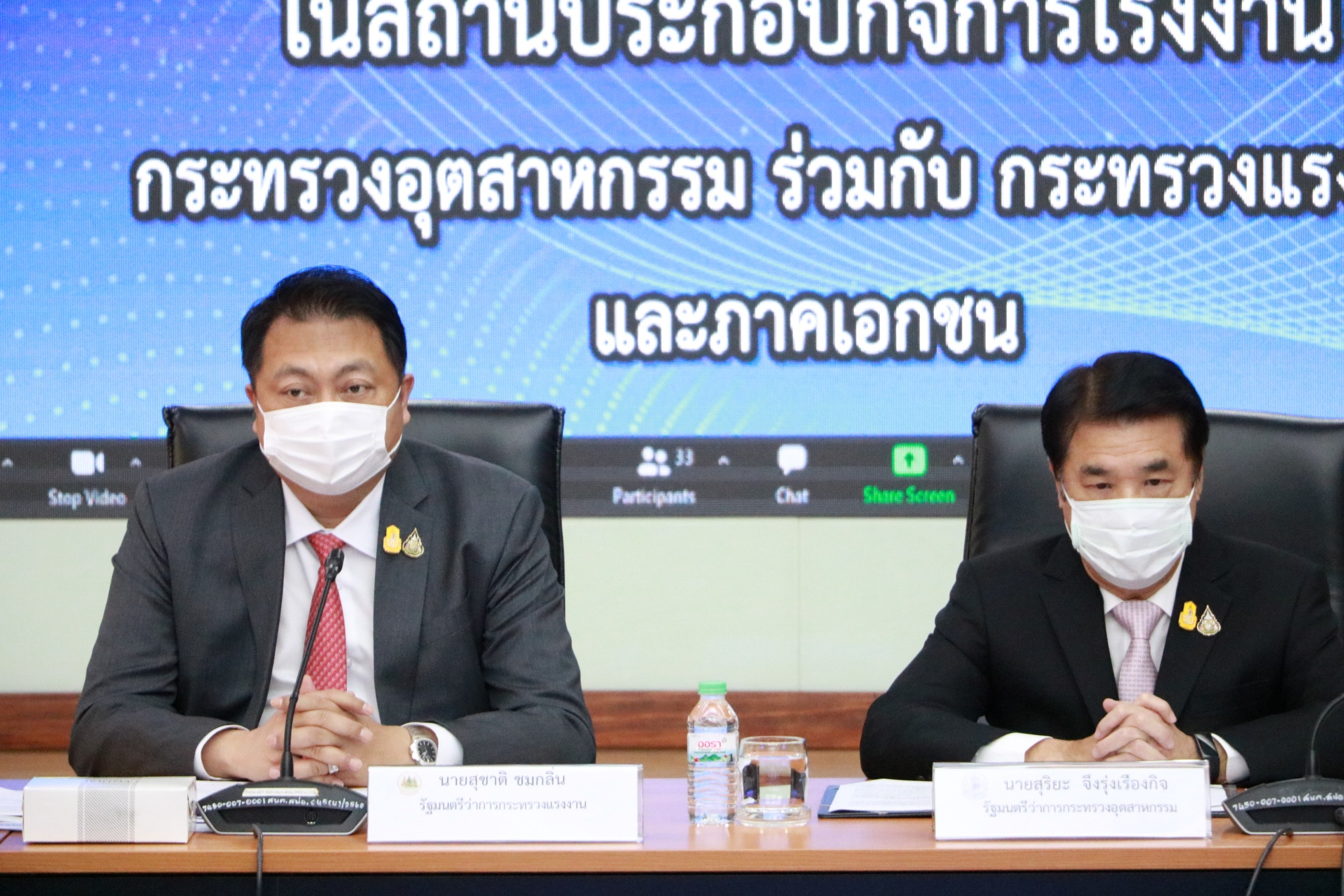 นายสุชาติ ชมกลิ่น รมว.แรงงาน ประชุมหารือร่วมกับ นายสุริยะ จึงรุ่งเรืองกิจ รมว.อุตสาหกรรม และหน่วยงานที่เกี่ยวข้อง เพื่อหารือมาตรการป้องกันควบคุมการแพร่ระบาดของโควิด-19 ในสถานประกอบกิจการโรงงาน สร้างภูมิคุ้มกันหมู่ ช่วยภาคธุรกิจขับเคลื่อนต่อไปได้โดยเร็ว