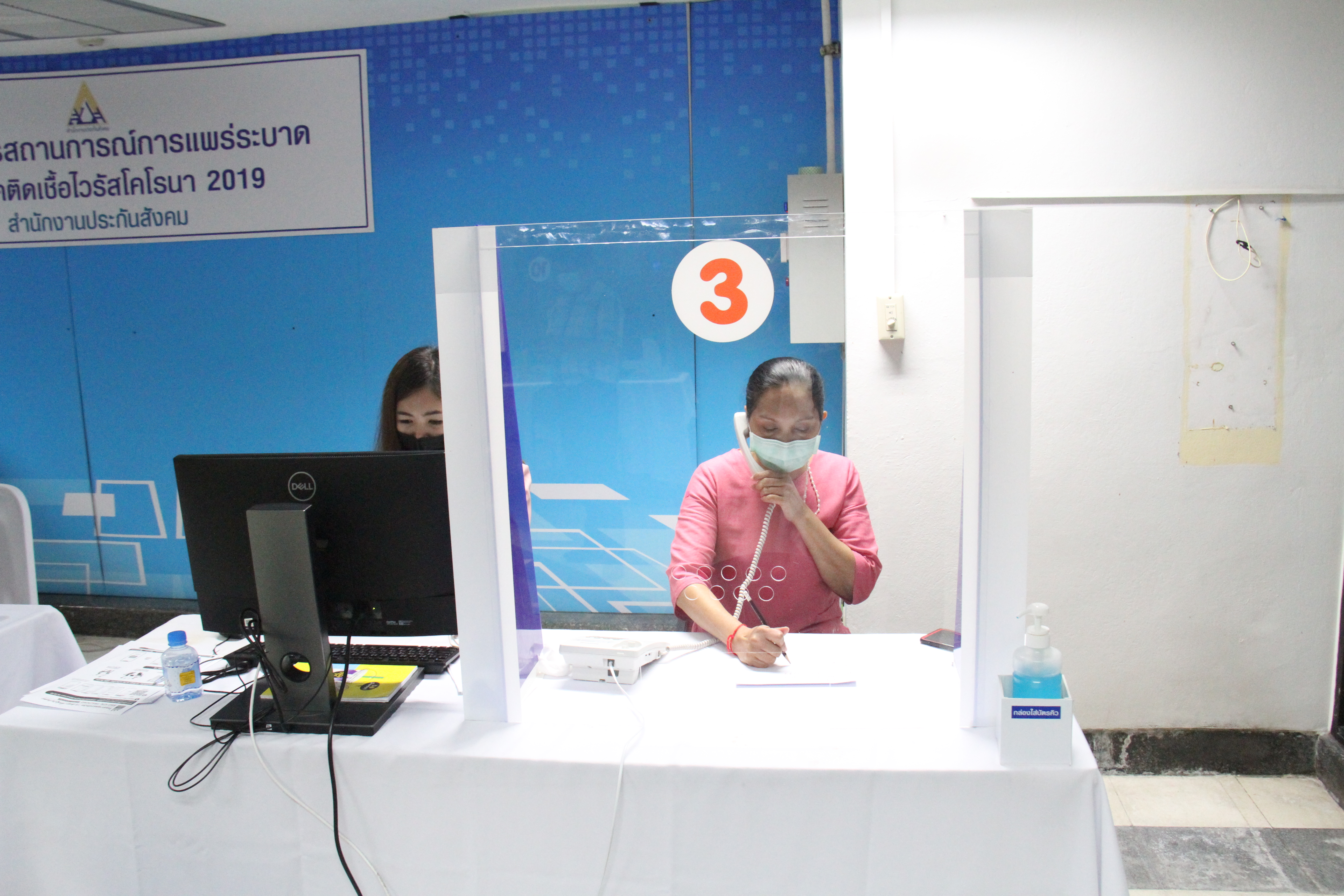 สำหรับผู้ประกันตนที่อยู่ในกลุ่มเสี่ยง ให้คำแนะนำหลักเกณฑ์การตรวจหาเชื้อโควิด-19 ณ ศูนย์กีฬาเวสน์ 1 ดินแดง ให้คำแนะนำในการดูแลตนเองหลังการตรวจหาเชื้อโควิด-19 ประสานหน่วยงานที่เกี่ยวข้อง สถานพยาบาล รวมถึงการส่งตัวผู้ประกันตนที่มีความจำเป็นต้องเข้ารับการรักษาพยาบาล และแนะนำเรื่องอาการเจ็บป่วยจากโรคโควิด-19 โดยจะให้บริการทุกวันจันทร์ – วันอาทิตย์ เวลา 08.00 – 17.00 น. มีเจ้าหน้าที่คอยให้บริการจำนวนทั้งสิ้น 10 คู่สาย ทั้งนี้ ขอให้ผู้ประกันตนมั่นใจได้ว่าจากการดำเนินการดังกล่าว รัฐบาลและกระทรวงแรงงานได้บูรณาการกับหน่วยงานที่เกี่ยวข้อง เพื่อสามารถช่วยเหลือและบรรเทาสถานการณ์การแพร่ระบาดของโควิด-19 ให้สถานการณ์คลี่คลายลงโดยเร็ววันและให้ผู้ประกันตนได้รับการดูแลอย่างดีที่สุดอีกทางหนึ่งด้วย