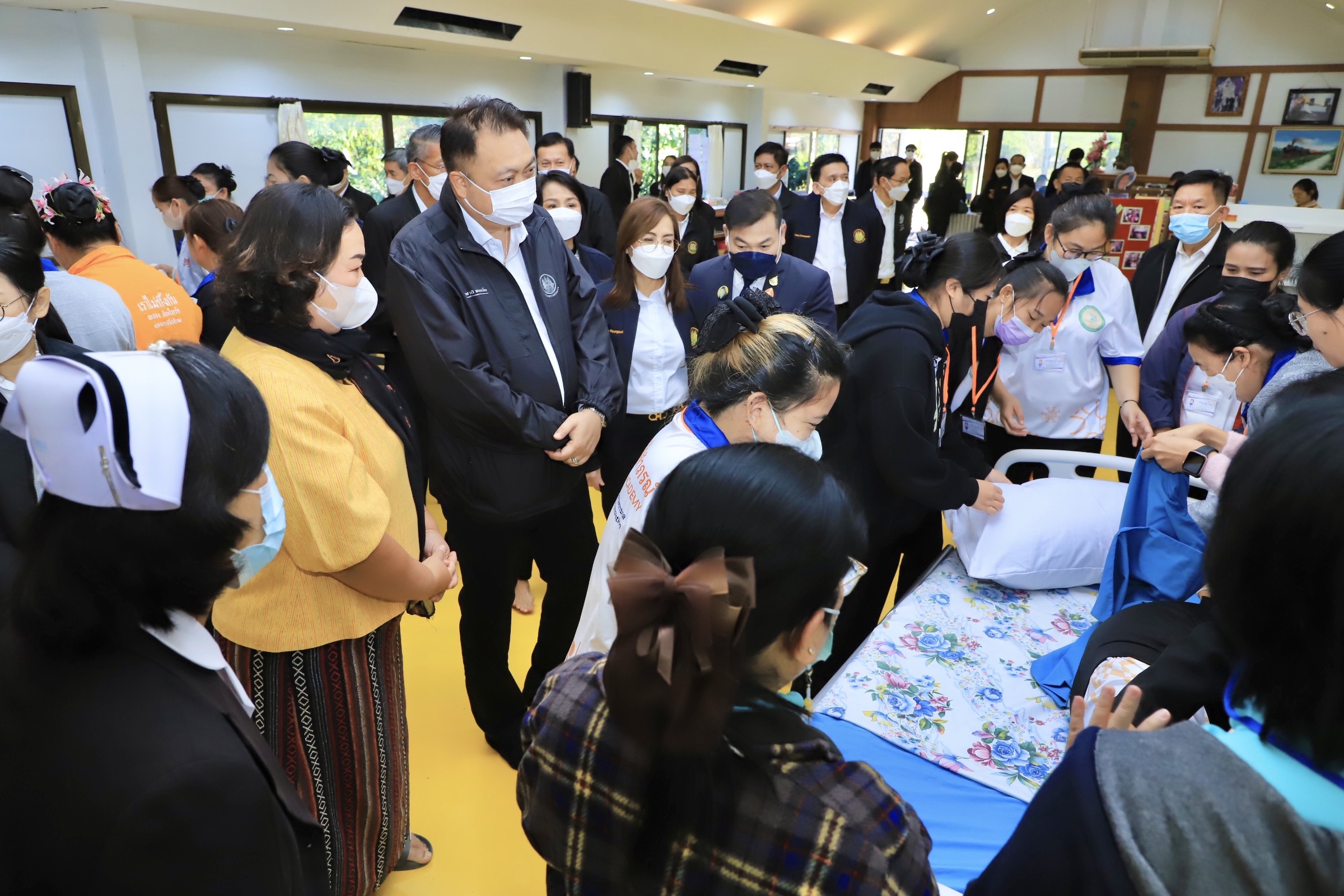 วันที่ 26 มกราคม 2566 นายสุชาติ ชมกลิ่น รัฐมนตรีว่าการกระทรวงแรงงาน ลงพื้นที่จังหวัดเชียงรายเยี่ยมชมการฝึกเตรียมเข้าทำงาน หลักสูตร การดูแลผู้สูงอายุ 420 ชั่วโมง โดยมี ดร. อุดม สุวรรณพิมพ์ ผู้ช่วยคณบดี คณะเทคโนโลยีวิทยาศาสตร์สุขภาพ วิทยาลัยวิทยาศาสตร์การแพทย์เจ้าฟ้าจุฬาภรณ์ ราชวิทยาลัยจุฬาภรณ์ นางสาวบุปผา เรืองสุด รองปลัดกระทรวงแรงงาน รักษาราชการแทน อธิบดีกรมพัฒนาฝีมือแรงงาน ผู้บริหารระดับสูงกระทรวงแรงงาน หัวหน้าส่วนราชการสังกัดกระทรวงแรงงานจังหวัดเชียงราย และผู้เข้ารับการฝึกอบรม ร่วมต้อนรับ ณ ศูนย์ฝึกอบรมวิสาหกิจชุมชนอำเภอแม่จัน (ป่าตึง) เชียงราย หลั่นล้าอีโคโนมี ต.ป่าตึง อ.แม่จัน จ.เชียงราย