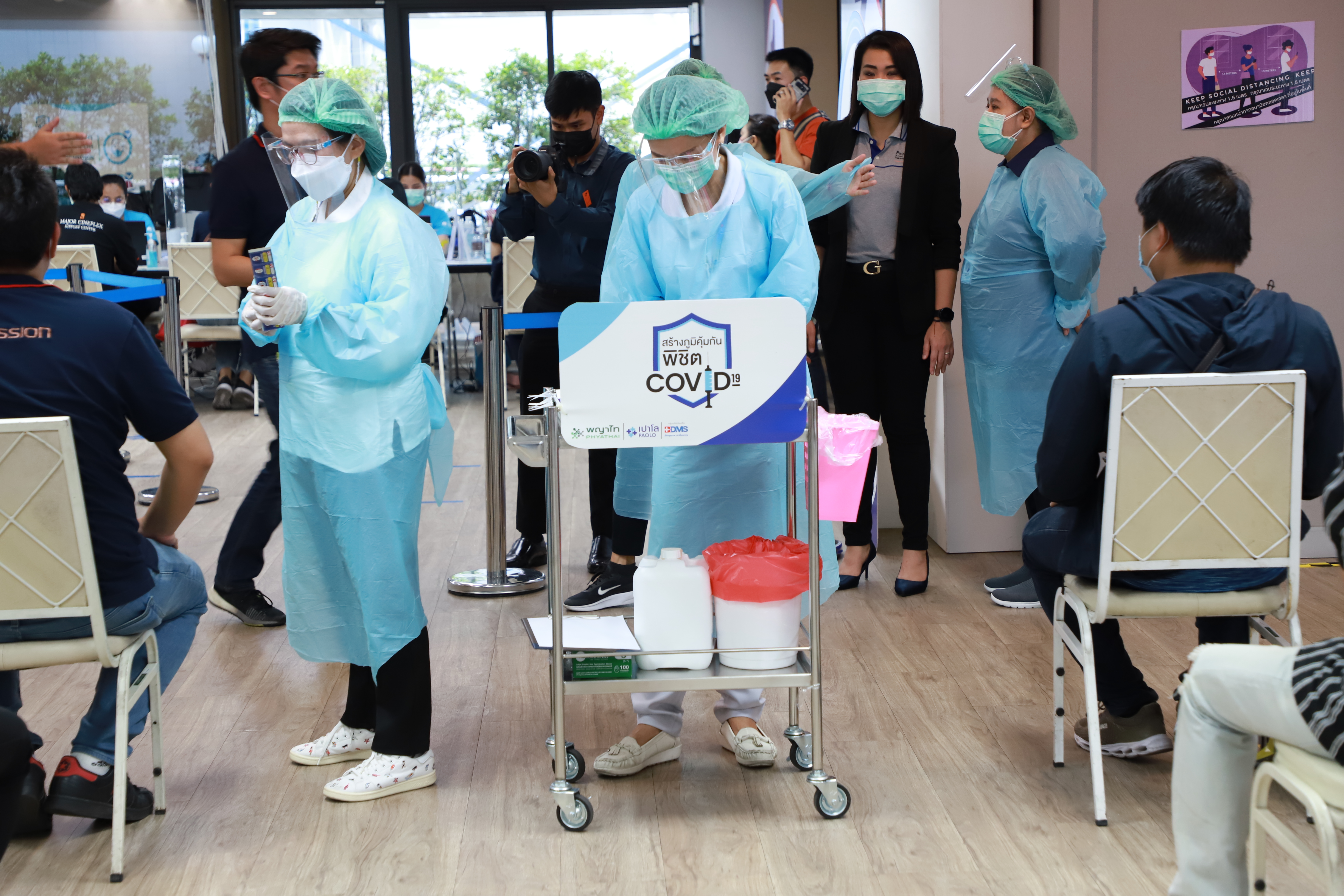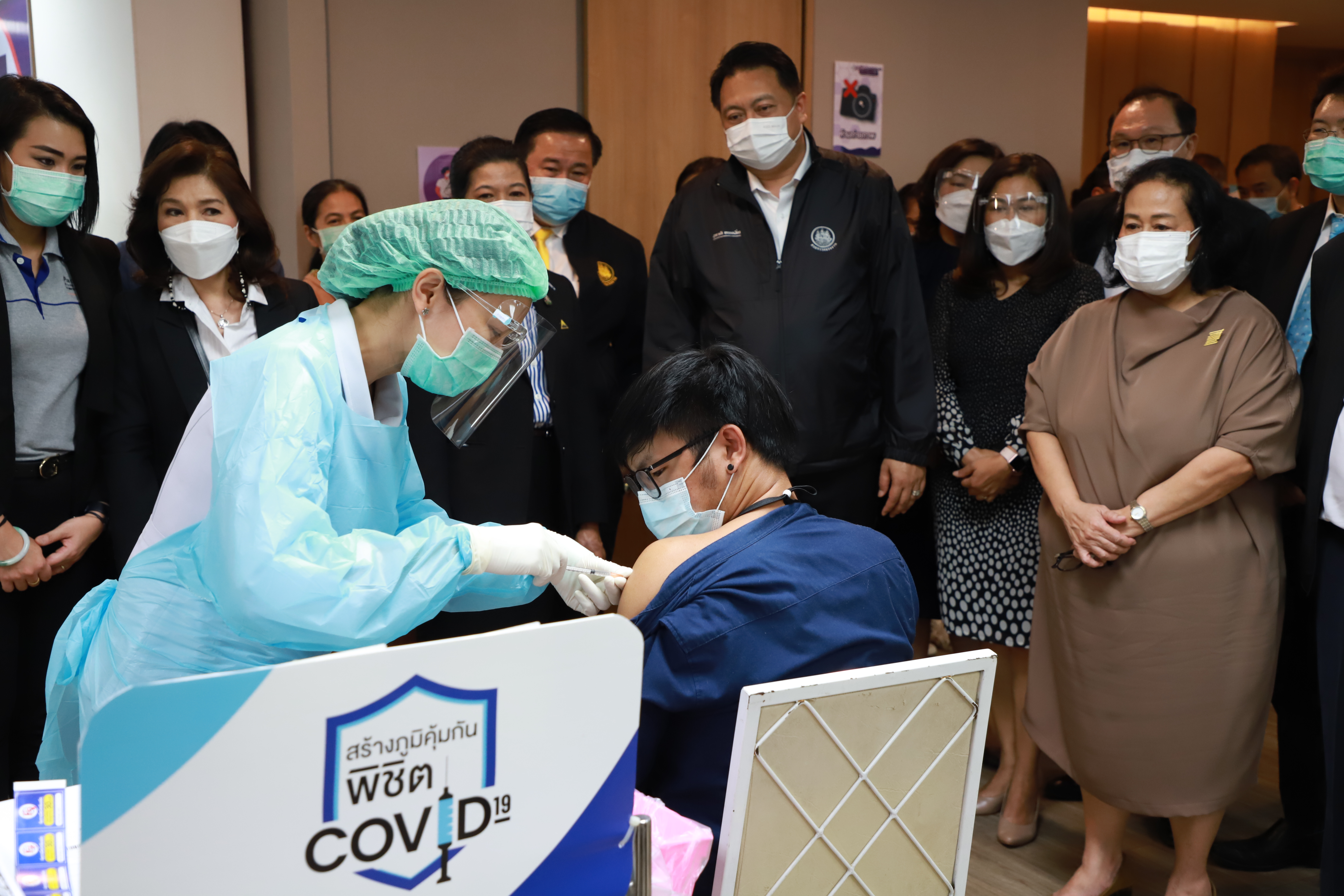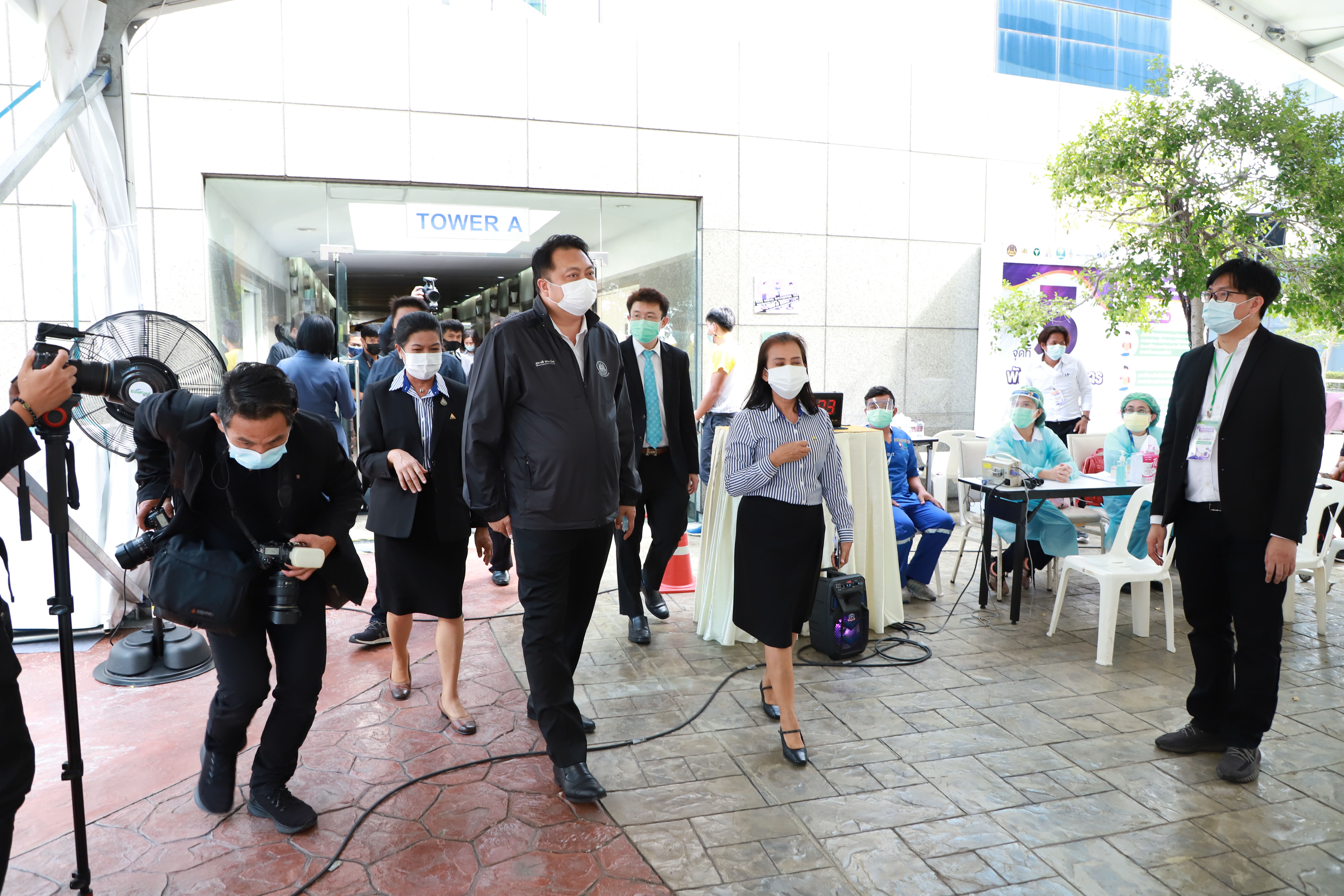 เมื่อวันที่ 7 มิถุนายน 2564 นายสุชาติ ชมกลิ่น รัฐมนตรีว่าการกระทรวงแรงงาน ลงพื้นที่ตรวจเยี่ยมศูนย์ฉีดวัคซีนผู้ประกันตนมาตรา 33 ณ อาคาร SUN TOWER ถนนวิภาวดีรังสิต กรุงเทพ โดยศูนย์ฉีดวัคซีนดังกล่าวให้บริการฉีดวัคซีนป้องกันโควิด-19 ให้กับผู้ประกันตน เพื่อควบคุมการแพร่ระบาดไม่ให้กระจายออกสู่วงกว้างทั้งในโรงงาน และสถานประกอบการ ทั้งนี้ สามารถเข้ารับการฉีดวัคซีนตามจุดที่สำนักงานประกันสังคมได้กำหนดไว้ทั้งสิ้น 45 จุดทั่วกรุงเทพมหานคร
