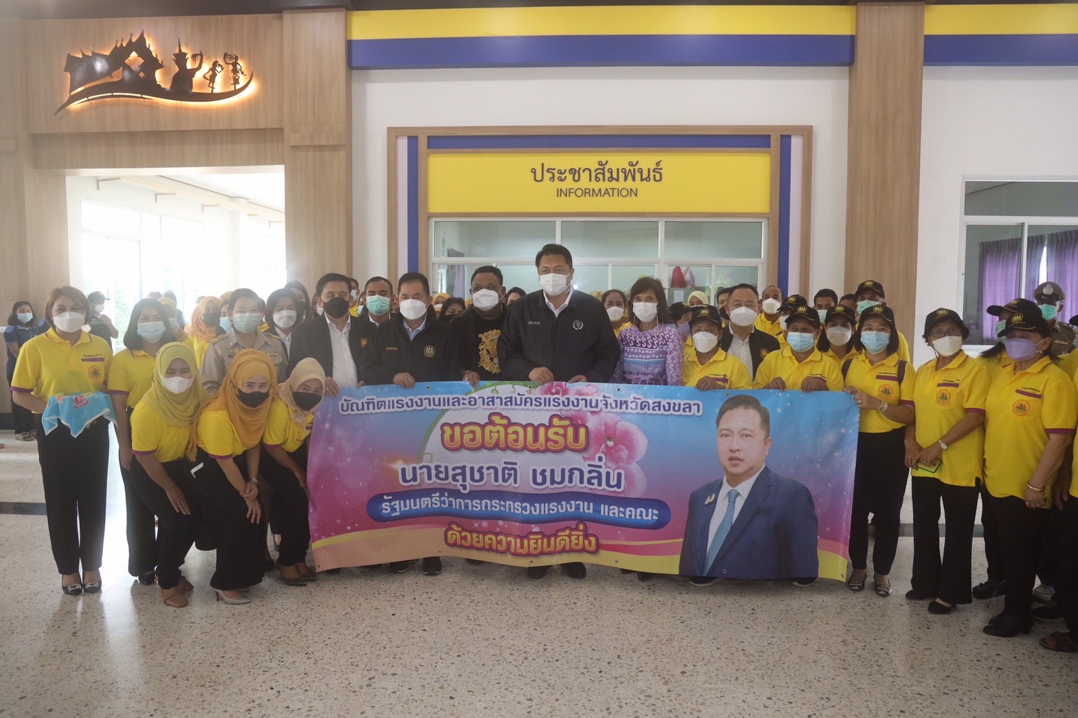 เมื่อวันที่ 5 พฤศจิกายน 2564 นายสุชาติ ชมกลิ่น รัฐมนตรีว่าการกระทรวงแรงงาน ได้เดินทางตรวจเยี่ยมติดตามการดำเนินงานของศูนย์ฟื้นฟูสมรรถภาพคนงานภาค 5 ตำบลป่าขาด อำเภอสิงหนคร จังหวัดสงขลา โดยมี พล.ต.ต.นันทชาติ ศุภมงคล ประจำสำนักเลขาธิการนายกรัฐมนตรี ปฏิบัติหน้าที่ประจำกระทรวงแรงงาน นางเธียรรัตน์ นะวะมะวัฒน์ โฆษกกระทรวงแรงงาน (ฝ่ายการเมือง) พร้อมด้วยผู้บริหารระดับสูงกระทรวงแรงงาน เข้าร่วมในครั้งนี้ด้วยนางสุรียพรรณ์ ณ สงขลา รองผู้ว่าราชการจังหวัดสงขลา ให้การต้อนรับ หัวหน้าส่วนราชการหน่วยงานในสังกัดกระทรวงแรงงาน จังหวัดสงขลา ปัตตานี ยะลา และนราธิวาส ผู้ประกอบการSMEs อาสาสมัครแรงงาน และบัณฑิตแรงงานในจังหวัดสงขลา และผู้เข้ารับการฟื้นฟูสมรรถภาพฯ ให้การต้อนรับ