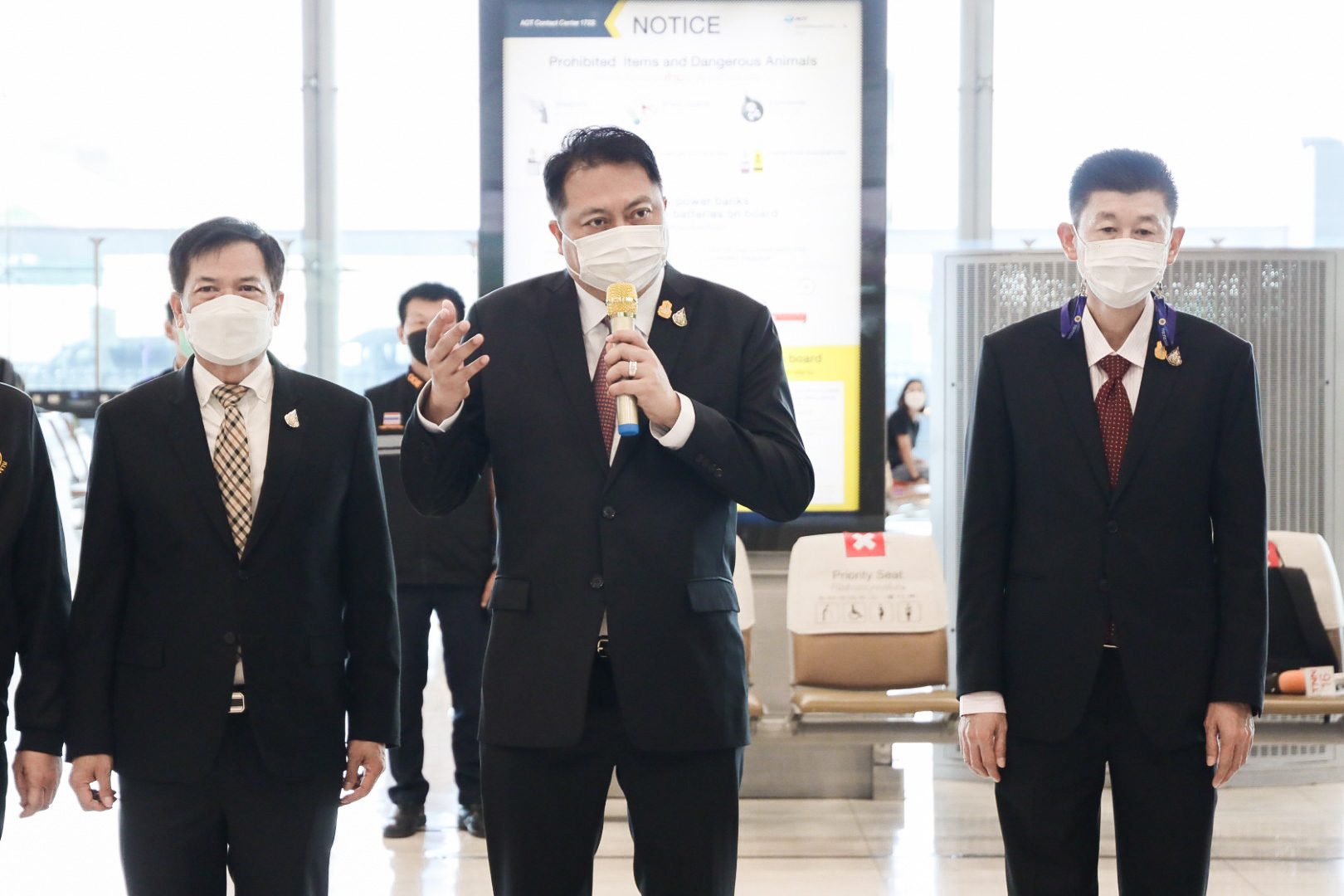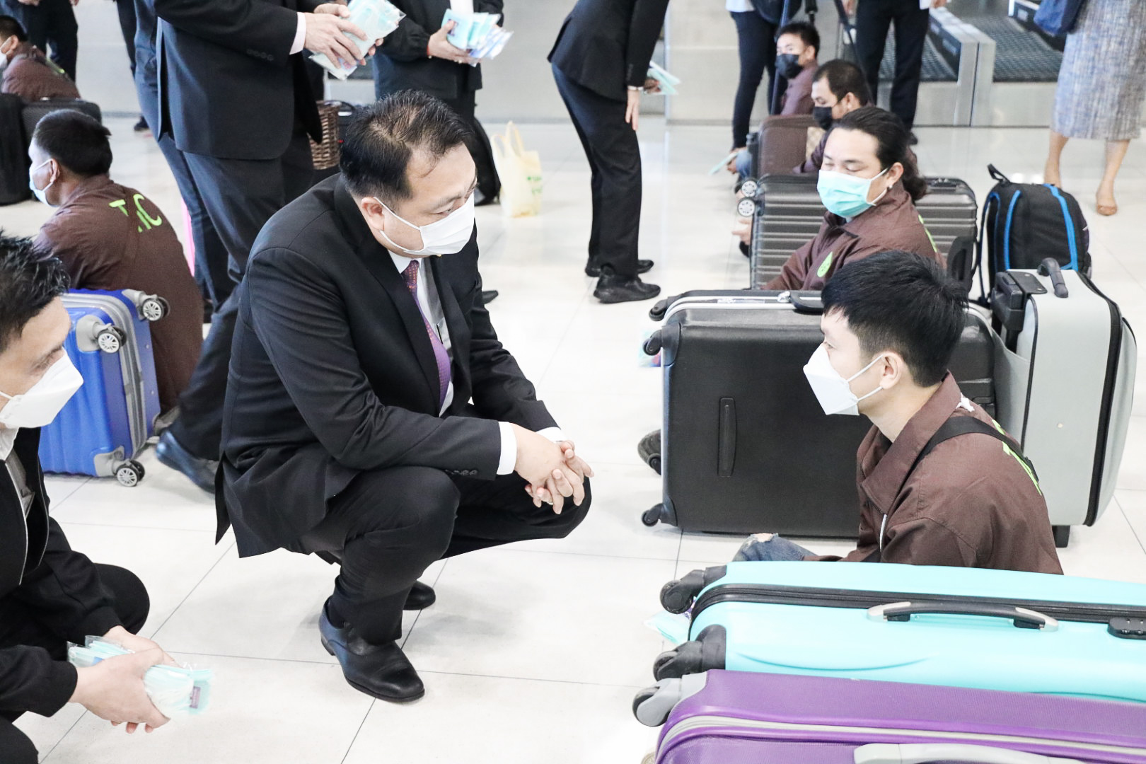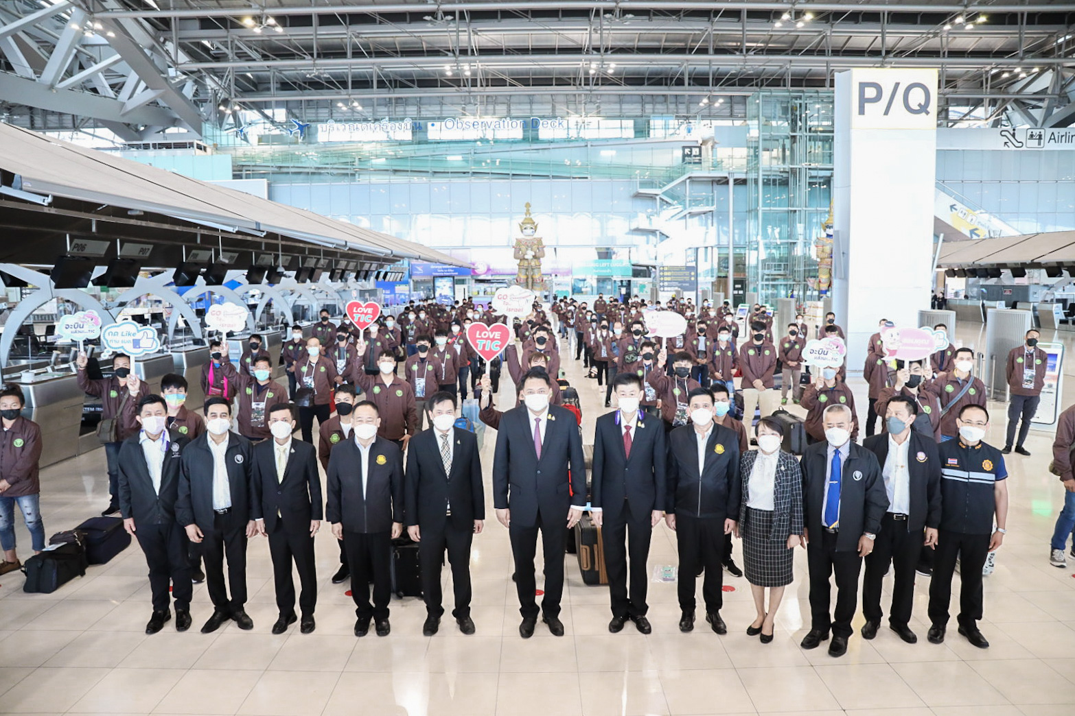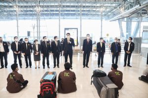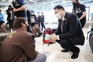 “รัฐบาลภายใต้การนำของ พลเอก ประยุทธ์ จันทร์โอชา นายกรัฐมนตรี พลเอก ประวิตร วงษ์สุวรรณ รองนายกรัฐมนตรี ซึ่งกำกับดูแลกระทรวงแรงงาน ให้ความสำคัญกับการส่งเสริมแรงงานไทยให้เดินทางไปทำงานต่างประเทศ เพื่อการมีงานทำ นำรายได้เข้าประเทศ และฝากกำลังใจผ่านผมมาถึงพี่น้องแรงงานไทย ขอให้ทุกคนปฏิบัติตนตามมาตรการป้องกันการแพร่ระบาดของโรคติดเชื้อไวรัสโคโรนา 2019 (COVID-19) อย่างเคร่งครัด มีความขยัน อดทนตั้งใจทำงาน ปฏิบัติตนตามกฎหมายของอิสราเอล ไม่ยุ่งเกี่ยวกับ ยาเสพติด สิ่งของมึนเมาและการพนัน รู้จักเก็บออมส่งเงินให้ครอบครัว และเรียนรู้ประสบการณ์ทางเกษตรที่ได้รับจากการทำงาน เพื่อกลับมาพัฒนาประเทศและประกอบอาชีพของตนเองภายหลังจากครบสัญญาต่อไป” รัฐมนตรีว่าการกระทรวงแรงงาน กล่าว