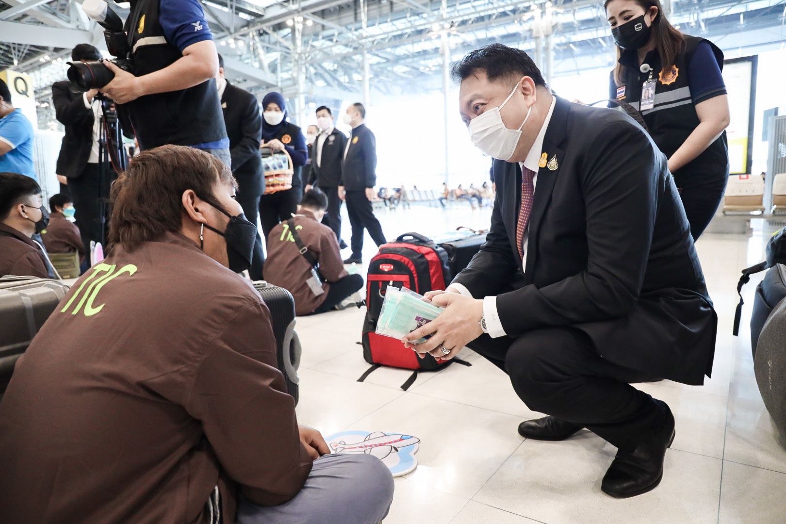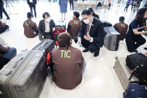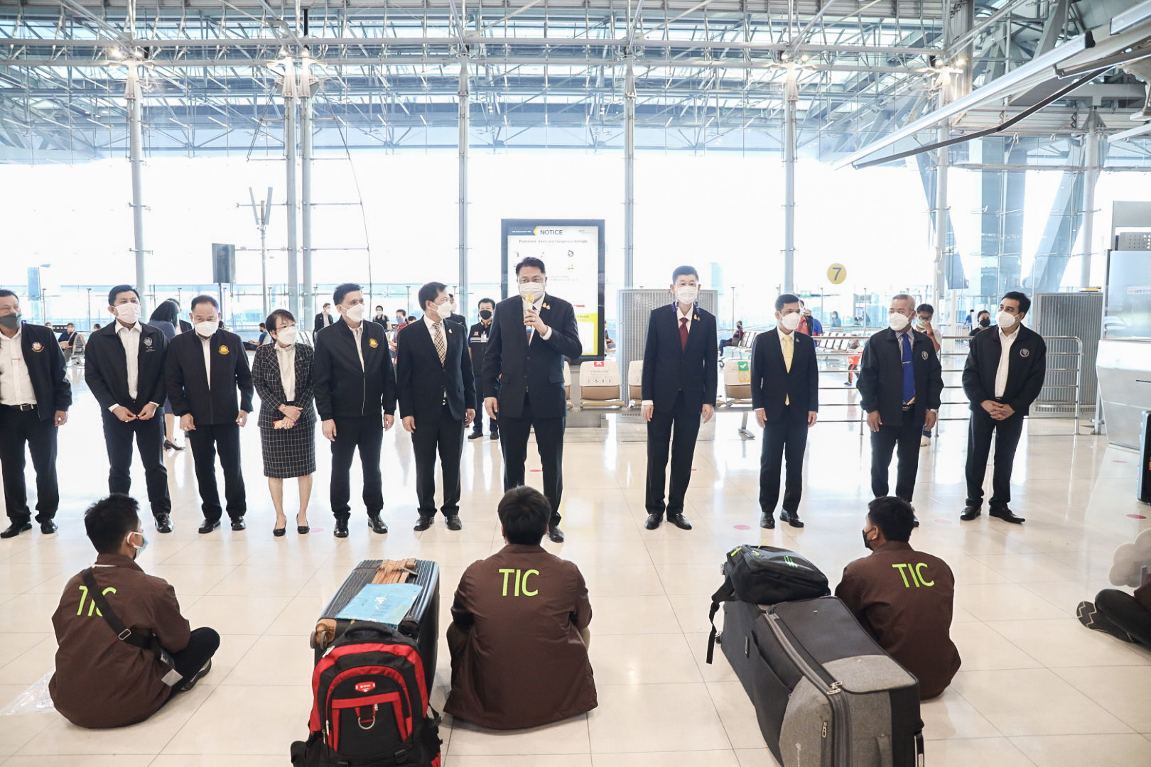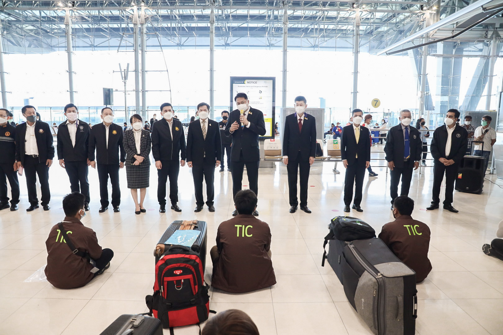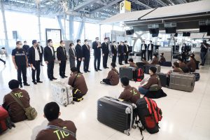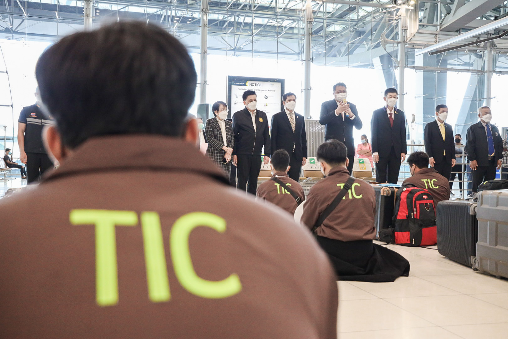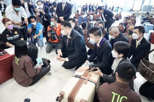 วันที่ 23 พฤศจิกายน 2564 นายสุชาติ ชมกลิ่น รัฐมนตรีว่าการกระทรวงแรงงาน กล่าวให้โอวาทและให้กำลังใจแก่แรงงานไทย 120 คน ก่อนเดินทางทำงานภาคเกษตรในรัฐอิสราเอลภายใต้โครงการ TIC ณ ด่านตรวจคนหางาน ท่าอากาศยานสุวรรณภูมิ โดยมี นายสุเทพ ชิตยวงษ์ เลขานุการรัฐมนตรีว่าการกระทรวงแรงงาน นางเธียรรัตน์ นะวะมะวัฒน์ โฆษกกระทรวงแรงงาน (ฝ่ายการเมือง) นายบุญชอบ สุทธมนัสวงษ์ ปลัดกระทรวงแรงงาน และนายไพโรจน์โชติกเสถียร อธิบดีกรมการจัดหางาน ร่วมคณะ