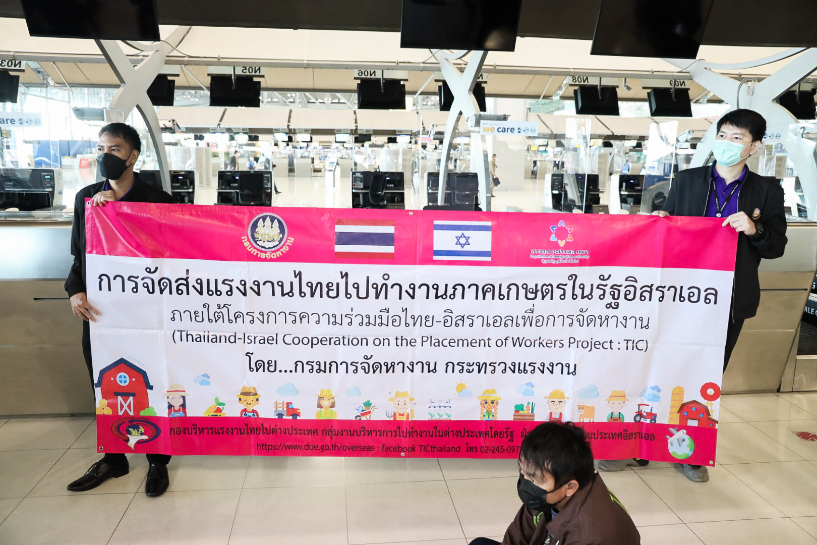 นายสุชาติ ชมกลิ่น รัฐมนตรีว่าการกระทรวงแรงงาน เปิดเผยว่า วันนี้มีกำหนดส่งแรงงานไทยจำนวน 120 คน แบ่งเป็นเพศชาย 115 คน และเพศหญิง 5 คน ทำงานภายใต้โครงการ “ความร่วมมือไทย – อิสราเอล เพื่อการจัดหางาน (Thailand-Israel Cooperation on the Placement of Workers: TIC) โดยแรงงานไทยดังกล่าวจะเดินทางไปทำงานกับนายจ้างในกิจการภาคเกษตร ได้แก่ ทำสวนดอกไม้ ปลูกกระบองเพชร ปลูกมะเขือเทศ กล้วย แตงโม และฟักทอง รวมทั้งในกิจการปศุสัตว์ ได้แก่ เลี้ยงวัว หมู ไก่ และผึ้ง มีระยะเวลาการจ้างงานครั้งแรก 2 ปีและสามารถต่อสัญญาจ้างได้อีก 3 ปี 3 เดือน รวมเป็นไม่เกิน 5 ปี 3 ทั้งหมดจะเดินทางด้วยเครื่องบินโดยสาร เที่ยวบินที่ LY 082 ของสายการบินแอล อัล อิสราเอล แอร์ไลน์ จากท่าอากาศยานสุวรรณภูมิไปยังกรุงเทลอาวีฟ รัฐอิสราเอล