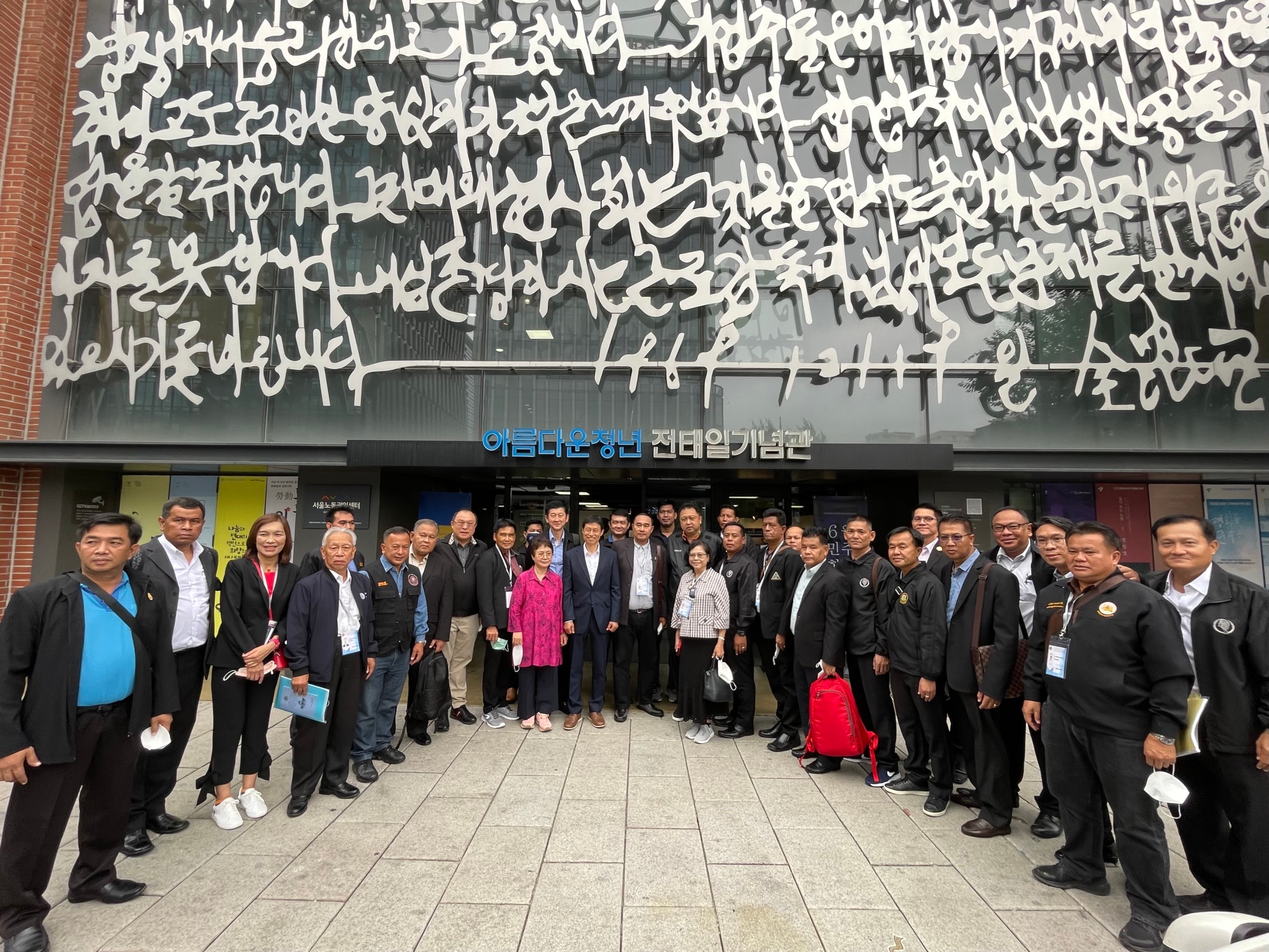 นายสุชาติ ชมกลิ่น รัฐมนตรีว่าการกระทรวงแรงงาน พร้อมด้วย นายสุรชัย ชัยตระกูลทอง ผู้ช่วยรัฐมนตรีประจำกระทรวงแรงงาน นายบุญชอบ สุทธมนัสวงษ์ ปลัดกระทรวงแรงงาน พร้อมด้วยผู้บริหารระดับสูงกระทรวงแรงงาน นำผู้แทนกลุ่มสหภาพแรงงาน ภาคเอกชน และรัฐวิสาหกิจ เยี่ยมชมพิพิธภัณฑ์แรงงานนายชอน แทอิล ณ สาธารณรัฐเกาหลี