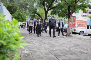 สำหรับขั้นตอนการลงทะเบียนออนไลน์เพื่อจองคิวตรวจของผู้ประกันตนและประชาชนทั่วไปสามารถเข้าเว็บไซต์กูเกิ้ล แล้วพิมพ์คำว่า “แรงงานเราสู้ด้วยกัน” หรือคลิกที่ลิงค์นี้ https://sso.icntracking.com/icntracking/self_register.php กรอกเลขประจำตัวประชาชน 13 หลัก หรือเลขพาสปอร์ต กรอกข้อมูลประเมินความเสี่ยงตามที่กรมควบคุมโรค กระทรวงสาธารณสุขกำหนด ซึ่งเป็นบุคคลที่มีกลุ่มเสี่ยงหรือมีอาการป่วย ผู้ประกันตนจะต้องพกบัตรประชาชน พร้อมสำเนา 1 ชุด เพื่อใช้เป็นหลักฐานในการตรวจ หากรายใดลงทะเบียนแล้วไม่มาตรวจตามนัดจะต้องลงทะเบียนใหม่ เมื่อเข้ารับการตรวจหาเชื้อโควิด -19 เรียบร้อยแล้วสามารถกลับบ้านได้ทันที ทางโรงพยาบาลจะแจ้งผลการตรวจคัดกรองโควิด 19 ผ่าน 3 ช่องทาง คือ QR Code ทาง SMS และทางโทรศัพท์ แต่ในกรณีที่ผู้ประกันตนที่ยังไม่ได้รับผลการตรวจคัดกรอง อาจเนื่องจากกรอกหมายเลขโทรศัพท์ไม่ถูกต้อง สามารถโทรสอบถาม 1506 กด6 การลงทะเบียนออนไลน์เริ่มเปิดให้ลงทะเบียนตั้งแต่เมื่อวานนี้ (10 ก.ค.64) เป็นต้นไป โดยแต่ละวันสามารถตรวจได้วันละ 2,000 คน แบ่งเป็นช่วงเช้า 1,000 คน ช่วงบ่าย 1,000 คน ซึ่งหากตรวจแล้วพบเชื้อแต่ไม่มีอาการจะถูกส่งเข้ารักษาตัวใน Hospitel ส่วนผู้ที่มีอาการจะถูกส่งไปรักษายังโรงพยาบาลในเครือประกันสังคม ซึ่งจะมีทีมแพทย์และพยาบาลดูแล ส่วนค่ารักษาพยาบาลผู้ประกันตนจะเบิกกับสำนักงานประกันสังคม และประชาชนทั่วไปจะเบิกกับ สปสช. ทั้งนี้ สอบถามเพิ่มเติมได้ที่ สายด่วนให้คำปรึกษาผู้ประกันตนและประชาชนทั่วไปตรวจโควิด-19 เชิงรุก โทร.1506 กด 6