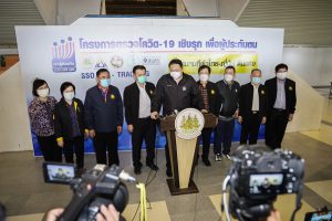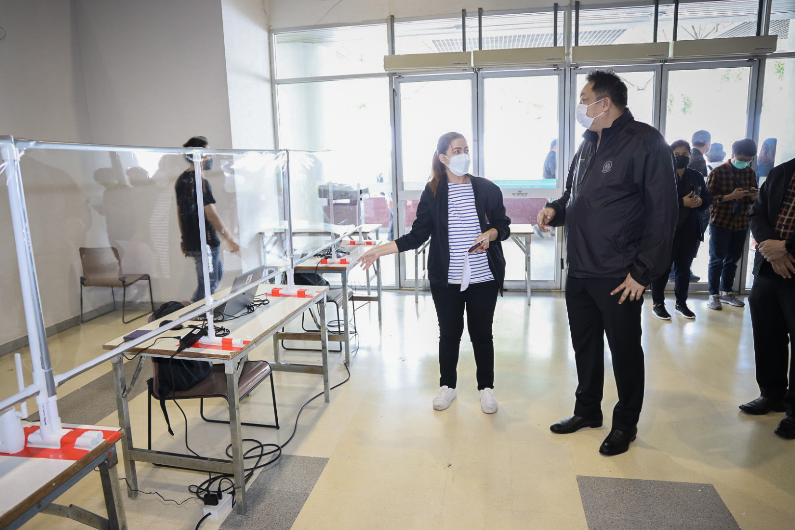 เมื่อวันที่ 11 กรกฎาคม 2564 ที่อาคารกีฬาเวสน์ 1 ศูนย์เยาวชนกรุงเทพมหานคร (ไทย – ญี่ปุ่น) เขตดินแดง กรุงเทพมหานคร นายสุชาติ ชมกลิ่น รัฐมนตรีว่าการกระทรวงแรงงาน ลงพื้นที่ตรวจความพร้อมของสถานที่เพื่อสำหรับเปิดบริการตรวจโควิด-19 เชิงรุก ตามโครงการแรงงาน…เราสู้ด้วยกัน สำหรับผู้ประกันตนและประชาชนทั่วไป ในวันจันทร์ที่ 12 ก.ค.64 โดยมี นายสุเทพ ชิตยวงษ์ เลขานุการรัฐมนตรีว่าการกระทรวงแรงงาน พล.ต.ต.นันทชาติ ศุภมงคล ประจำสำนักเลขาธิการนายกรัฐมนตรี ปฏิบัติหน้าที่ประจำกระทรวงแรงงาน นางเธียรรัตน์ นะวะมะวัฒน์ โฆษกกระทรวงแรงงาน (ฝ่ายการเมือง) นายสุทธิ สุโกศล ปลัดกระทรวงแรงงาน นายทศพล กฤตวงศ์วิมาน เลขาธิการสำนักงานประกันสังคม พร้อมด้วยผู้บริหารระดับสูงกระทรวงแรงงาน เข้าร่วมในครั้งนี้ด้วย