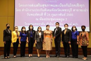 นางธิวัลรัตน์ กล่าวต่อว่า โครงการส่งเสริมสุขภาพป้องกันโรคเชิงรุกจัดขึ้นเพื่อให้ผู้ประกันตนได้รับการส่งเสริมสุขภาพป้องกันโรค ตามประกาศคณะกรรมการการแพทย์ ตามพระราชบัญญัติประกันสังคม เรื่อง หลักเกณฑ์ และอัตราค่าส่งเสริมสุขภาพและป้องกันโรคสำหรับประโยชน์ทดแทน ในกรณีประสบอันตรายหรือเจ็บป่วยอันมิใช่เนื่องจากการทำงาน พร้อมทั้งอบรมให้ความรู้เกี่ยวกับการส่งเสริมสุขภาพป้องกันโรค ให้ผู้ประกันตนได้รับความรู้และเกิดความตระหนักในการดูแลรักษาสุขภาพของตนเอง ซึ่งสำนักงานประกันสังคมได้จัดทำโครงการดังกล่าว เพื่อเป็นการสร้างนวัตกรรมการให้บริการทางการแพทย์รูปแบบใหม่ ๆ ให้แก่ผู้ประกันตน รวมทั้งมีกิจกรรมบรรยายให้ความรู้ด้านการส่งเสริมสุขภาพและป้องกันโรค การปรับเปลี่ยนพฤติกรรมตามแนวทางและนโยบายของสำนักจัดระบบบริการทางการแพทย์ เช่น การให้บริการวัคซีนไข้หวัดใหญ่ในระบบประกันสังคม โรคติดต่อตามฤดูกาลและโรคติดต่ออย่างโควิด-19 การลดความเสี่ยงต่อโรค NCDs โครงการสนับสนุนการเลิกบุหรี่ของผู้ประกันตน เป็นต้น