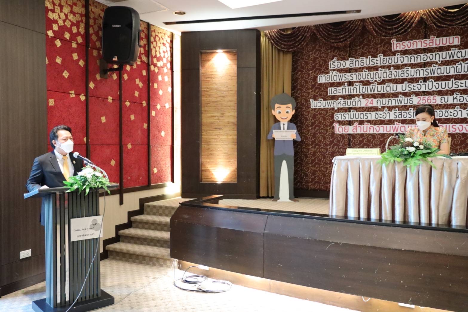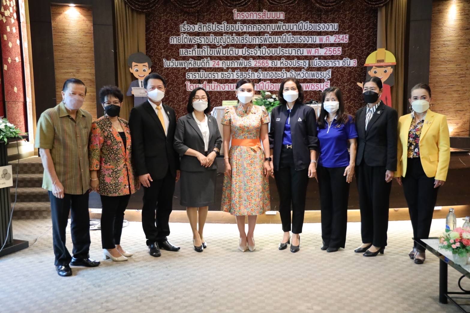 เมื่อวันที่ 24 กุมภาพันธ์ 2565 นายสุชาติ ชมกลิ่น รัฐมนตรีว่าการกระทรวงแรงงาน มอบหมายให้ นางธิวัลรัตน์ อังกินันทน์ ที่ปรึกษารัฐมนตรีว่าการกระทรวงแรงงาน เป็นประธานในพิธีเปิดโครงการสัมมนา เรื่อง สิทธิประโยชน์จากกองทุนพัฒนาฝีมือแรงงานภายใต้พระราชบัญญัติส่งเสริมการพัฒนาฝีมือแรงงาน พ.ศ.2545 และที่แก้ไขเพิ่มเติม ประจำปีงบประมาณ พ.ศ.2565 ณ ห้องประชุมเมืองธารา ชั้น 3 โรงแรมธารามันตรา อำเภอชะอำ จังหวัดเพชรบุรี โดยมี นางสาวไพลิน จินดามณีพร รองอธิบดีกรมพัฒนาฝีมือแรงงาน พร้อมด้วยหัวหน้าส่วนราชการหน่วยงานในสังกัดกระทรวงแรงงานจังหวัดเพชรบุรี ให้การต้อนรับ นางธิวัลรัตน์ กล่าวว่า รัฐบาลภายใต้การนำของ พล.อ.ประยุทธ์ จันทร์โอชา นายกรัฐมนตรี และรัฐมนตรีว่าการกระทรวงกลาโหม กระทรวงแรงงาน ภายใต้การกำกับดูแลของพล.อ.ประวิตร วงษ์สุวรรณ รองนายกรัฐมนตรี และท่านสุชาติ ชมกลิ่น รัฐมนตรีว่าการกระทรวงแรงงาน มีความห่วงใยสถานประกอบกิจการ โดยเฉพาะสถานประกอบกิจการที่อยู่ในข่ายบังคับตามพระราชบัญญัติส่งเสริมการพัฒนาฝีมือแรงงาน พ.ศ.2545 ซึ่งได้รับผลกระทบจากสถานการณ์การแพร่ระบาดของโควิด-19 จึงมีนโยบายสำคัญให้กรมพัฒนาฝีมือแรงงาน ช่วยเหลือสถานประกอบกิจการในปี 2564 โดยปรับลดจำนวนลูกจ้างที่ต้องพัฒนาทักษะฝีมือจากเดิมไม่น้อยกว่าร้อยละ 50 เป็นไม่น้อยกว่าร้อยละ 20 ไม่ต้องส่งเงินสมทบเข้ากองทุนพัฒนาฝีมือแรงงาน ขยายระยะเวลาการยื่นขอรับรองหลักสูตร จากเดิมภายใน 60 วัน เป็น 90 วัน และลดอัตราการส่งเงินสมทบเข้ากองทุนพัฒนาฝีมือแรงงานสำหรับ จากเดิมอัตราร้อยละ 1 เหลือร้อยละ 0.1 เป็นต้น