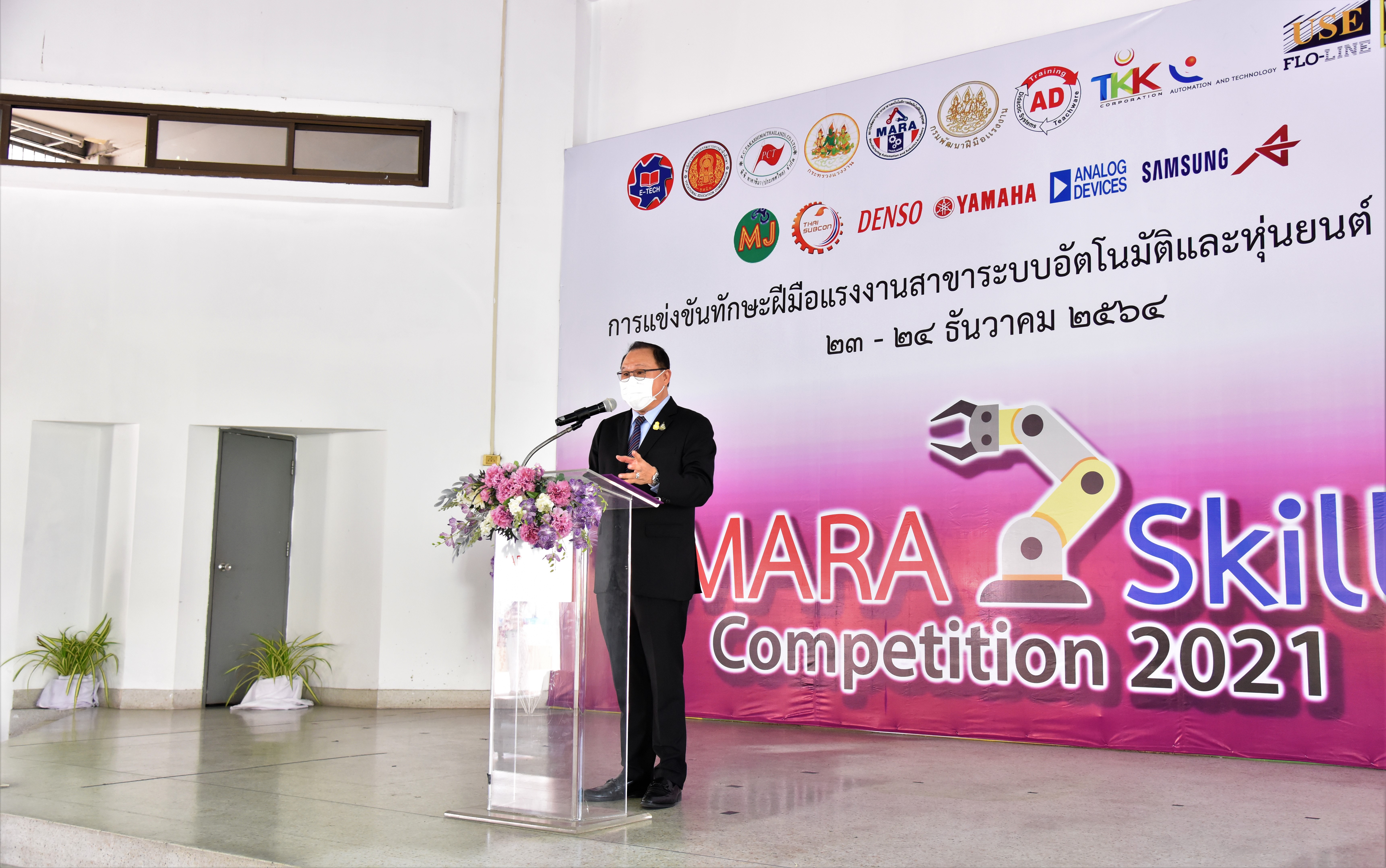 วันที่ 24 ธันวาคม 2564 เวลา 10.00 น. นายสุชาติ ชมกลิ่น รัฐมนตรีว่าการกระทรวงแรงงาน มอบหมายให้นายสุรชัย ชัยตระกูลทอง ผู้ช่วยรัฐมนตรีประจำกระทรวงแรงงาน เป็นประธานกล่าวปิดการแข่งขันทักษะฝีมือแรงงาน สาขาระบบอัตโนมัติ และหุ่นยนต์ ครั้งที่ 2 “MARA Skill Competition 2021” ระหว่างวันที่ 23-24 ธันวาคม 2564 แข่งขัน 6 สาขา แบ่งเป็น 3 สาขาแข่งขันแบบทีมๆ ละ 2 คน ได้แก่ สาขาเมคคาทรอนิกส์ สาขาพีแอลซี สาขาซ่อมบำรุงหุ่นยนต์ และแบบบุคคล 3 สาขา ได้แก่ สาขาหุ่นยนต์ สาขาเขียนแบบเครื่องกลด้วยคอมพิวเตอร์ (CAD) สาขาปัญญาประดิษฐ์ ซีลาร์ คอร์ (CiRA CORE) ผู้เข้าแข่งขันเป็นนักศึกษาอยู่ในวิทยาลัยอาชีวศึกษาเขต EEC อาทิ วิทยาลัยเทคโนโลยีภาคตะวันออก อี.เทค วิทยาลัยเทคนิคชลบุรี วิทยาลัยเทคนิคระยอง วิทยาลัยเทคนิคฉะเชิงเทรา วิทยาลัยเทคโนโลยีไออาร์พีซีเป็นต้น ณ สถาบันพัฒนาบุคลากรสาขาเทคโนโลยีการผลิตอัตโนมัติและหุ่นยนต์ อำเภอเมือง จังหวัดชลบุรี