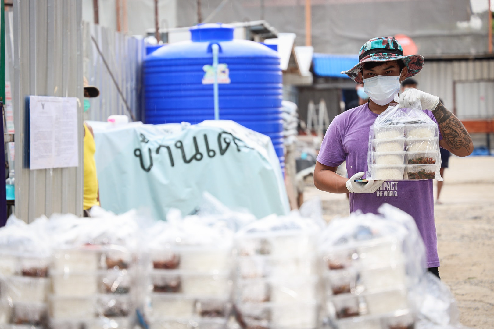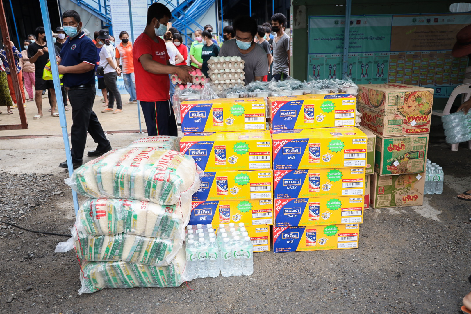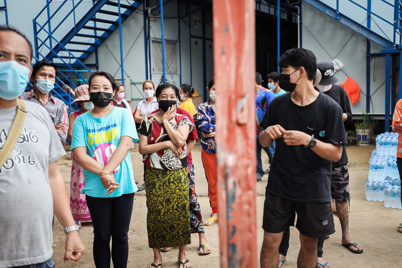 เมื่อวันที่ 9 กรกฎาคม 2564 นายสุชาติ ชมกลิ่น รัฐมนตรีว่าการกระทรวงแรงงาน มอบหมายให้ นางสาวบุปผา เรืองสุด ผู้ตรวจราชการกระทรวงแรงงาน ลงพื้นที่มอบอาหารเครื่องอุปโภคบริโภคแก่คนงานในแคมป์ก่อสร้างของบริษัท ดวงจันทร์ บิวดิ้ง จำกัด บริเวณซอยอินทามระ 1 หน้าชุมชนลับแล และมอบข้าวกล่อง 200 กล่องจากสมาคมเจ้าหน้าที่ความปลอดภัยในการทำงาน (จป.) แก่คนงานแคมป์ก่อสร้างบริเวณซอยวิภาวดี 20 โดยมี นายวรรณรัตน์ ศรีสุขใส รองอธิบดีกรมสวัสดิการและคุ้มครองแรงงาน นำทีมสมาคมเจ้าหน้าที่ความปลอดภัยในการทำงาน (จป.) เข้าร่วมในครั้งนี้ด้วย โดย นางสาวบุปผา กล่าวว่า ตามที่สื่อมวลชนนำเสนอข่าวว่าเปิดชีวิตสุดระทมแคมป์คนงาน นอนเต็นท์ปูนร้อนจัด – ฝนตกก็ท่วม ไร้เงิน – ท้องหิว ข้าว 3 มื้อไม่จริง ซึ่งอยู่บริเวณซอยวิภาวดี 20 นั้น ในเรื่องนี้ ท่านนายกรัฐมนตรี และรมว.กลาโหม พล.อ.ประยุทธ์ จันทร์โอชา ได้ฝากความห่วงใยมายังพี่น้องคนงานในแคมป์ก่อสร้างทุกคน ซึ่งกระทรวงแรงงาน ได้มีมาตรการเยียวยาช่วยเหลือลูกจ้างในแคมป์คนงานตามที่ ศบค.ได้มีมติให้ปิดแคมป์คนงานก่อสร้าง งดการเดินทางและเคลื่อนย้ายแรงงานในพื้นที่จังหวัดสีแดงเข้มจำนวน 6 จังหวัด ได้แก่ กรุงเทพมหานคร ปทุมธานี นนทบุรี สมุทรสาคร สมุทรปราการนครปฐม เป็นเวลา 1 เดือน เพื่อควบคุมการแพร่ระบาดของโควิด-19 ในคลัสเตอร์แคมป์คนงานโดยการจ่ายค่าชดเชย 50 เปอร์เซ็นต์ของค่าจ้างเป็นเวลา 1 เดือน ขอความร่วมมือนายจ้างสถานประกอบการดูแลเรื่องอาหารแก่คนงานทั้ง 3 มื้อ โดยกระทรวงแรงงานจะสนับสนุนเครื่องอุปโภคบริโภค อาทิ ข้าวสาร น้ำดื่ม ไข่ไก่ ปลากระป๋อง ที่ได้รับบริจาคจากภาคเอกชนรายใหญ่และนำไปมอบให้สมาคมอุตสาหกรรมก่อสร้างไทย ในพระบรมราชูปถัมภ์ เป็นศูนย์กลางในการกระจายอาหารไปยังคนงานตามแคมป์ต่างๆ โดยให้นายจ้างดูแลอาหารของลูกจ้างทั้ง 3 มื้อ