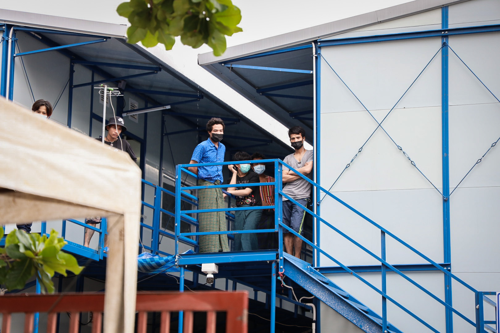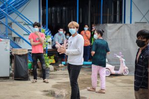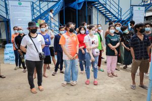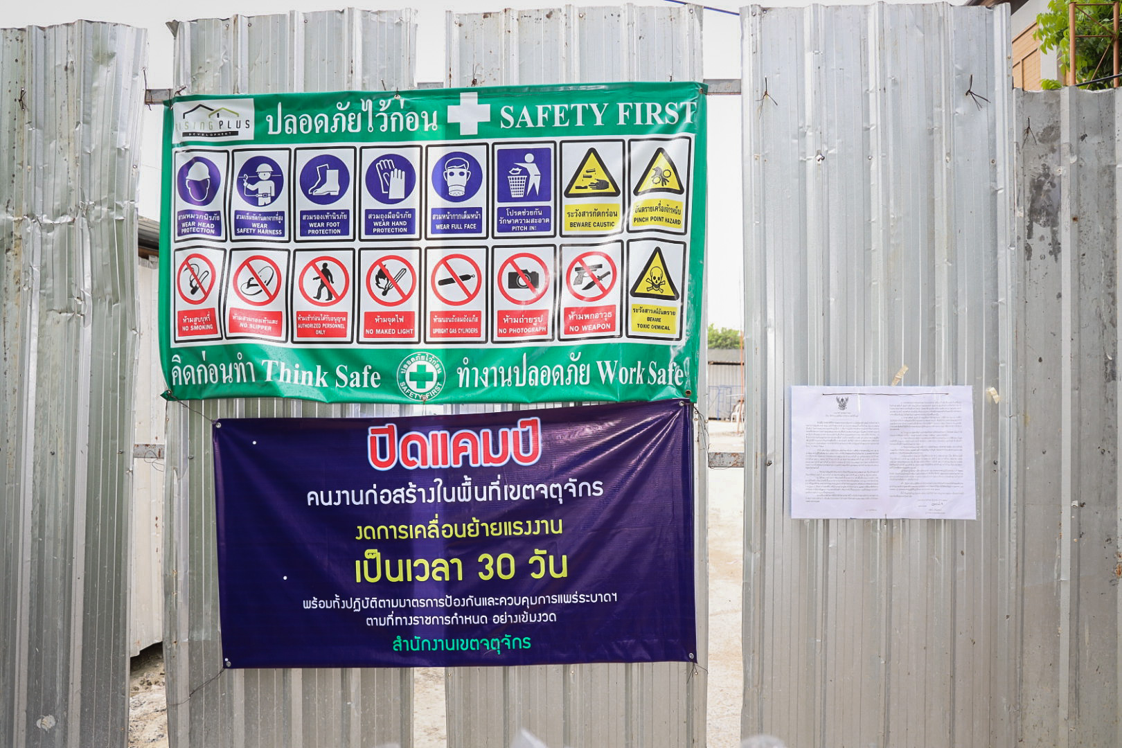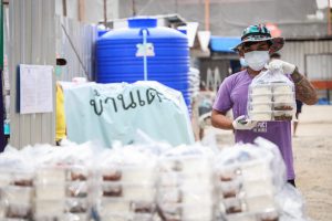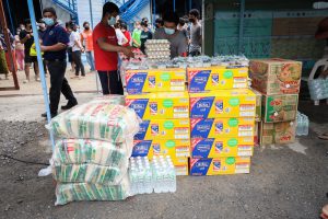 เมื่อวันที่ 9 กรกฎาคม 2564 นายสุชาติ ชมกลิ่น รัฐมนตรีว่าการกระทรวงแรงงาน มอบหมายให้ นางสาวบุปผา เรืองสุด ผู้ตรวจราชการกระทรวงแรงงาน ลงพื้นที่มอบอาหารเครื่องอุปโภคบริโภคแก่คนงานในแคมป์ก่อสร้างของบริษัท ดวงจันทร์ บิวดิ้ง จำกัด บริเวณซอยอินทามระ 1 หน้าชุมชนลับแล และมอบข้าวกล่อง 200 กล่องจากสมาคมเจ้าหน้าที่ความปลอดภัยในการทำงาน (จป.) แก่คนงานแคมป์ก่อสร้างบริเวณซอยวิภาวดี 20 โดยมี นายวรรณรัตน์ ศรีสุขใส รองอธิบดีกรมสวัสดิการและคุ้มครองแรงงาน นำทีมสมาคมเจ้าหน้าที่ความปลอดภัยในการทำงาน (จป.) เข้าร่วมในครั้งนี้ด้วย โดย นางสาวบุปผา กล่าวว่า ตามที่สื่อมวลชนนำเสนอข่าวว่าเปิดชีวิตสุดระทมแคมป์คนงาน นอนเต็นท์ปูนร้อนจัด – ฝนตกก็ท่วม ไร้เงิน – ท้องหิว ข้าว 3 มื้อไม่จริง ซึ่งอยู่บริเวณซอยวิภาวดี 20 นั้น ในเรื่องนี้ ท่านนายกรัฐมนตรี และรมว.กลาโหม พล.อ.ประยุทธ์ จันทร์โอชา ได้ฝากความห่วงใยมายังพี่น้องคนงานในแคมป์ก่อสร้างทุกคน ซึ่งกระทรวงแรงงาน ได้มีมาตรการเยียวยาช่วยเหลือลูกจ้างในแคมป์คนงานตามที่ ศบค.ได้มีมติให้ปิดแคมป์คนงานก่อสร้าง งดการเดินทางและเคลื่อนย้ายแรงงานในพื้นที่จังหวัดสีแดงเข้มจำนวน 6 จังหวัด ได้แก่ กรุงเทพมหานคร ปทุมธานี นนทบุรี สมุทรสาคร สมุทรปราการนครปฐม เป็นเวลา 1 เดือน เพื่อควบคุมการแพร่ระบาดของโควิด-19 ในคลัสเตอร์แคมป์คนงานโดยการจ่ายค่าชดเชย 50 เปอร์เซ็นต์ของค่าจ้างเป็นเวลา 1 เดือน ขอความร่วมมือนายจ้างสถานประกอบการดูแลเรื่องอาหารแก่คนงานทั้ง 3 มื้อ โดยกระทรวงแรงงานจะสนับสนุนเครื่องอุปโภคบริโภค อาทิ ข้าวสาร น้ำดื่ม ไข่ไก่ ปลากระป๋อง ที่ได้รับบริจาคจากภาคเอกชนรายใหญ่และนำไปมอบให้สมาคมอุตสาหกรรมก่อสร้างไทย ในพระบรมราชูปถัมภ์ เป็นศูนย์กลางในการกระจายอาหารไปยังคนงานตามแคมป์ต่างๆ โดยให้นายจ้างดูแลอาหารของลูกจ้างทั้ง 3 มื้อ